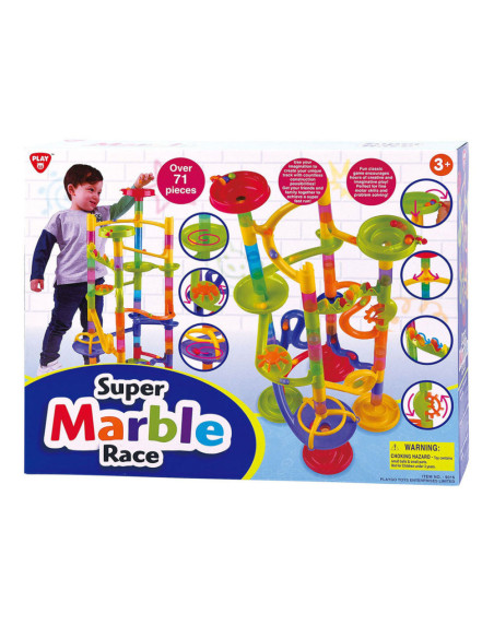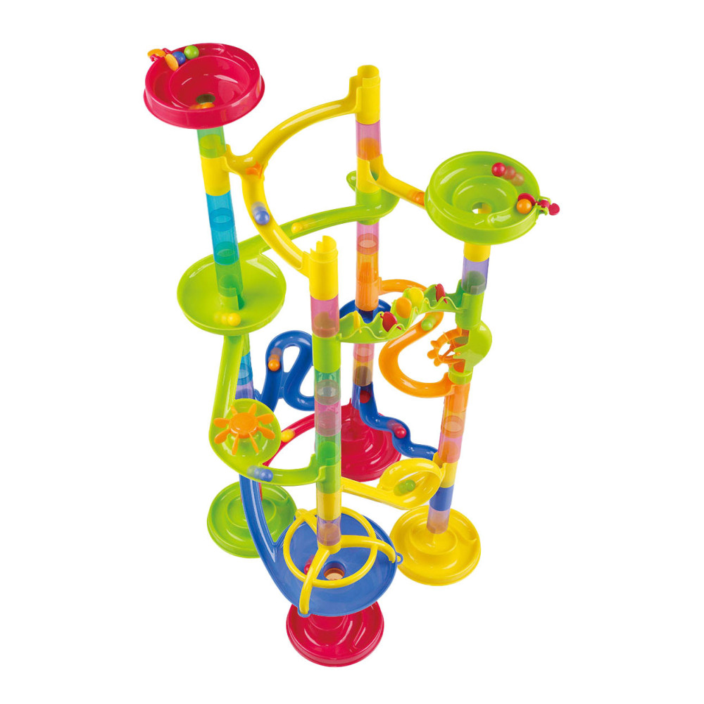 Bouw je eigen knikkerbaan met deze kleurrijke set. De set bestaat uit 71 onderdelen waarmee je zelf een spectaculaire baan kunt maken. Geschikt voor kinderen vanaf 3 jaar.