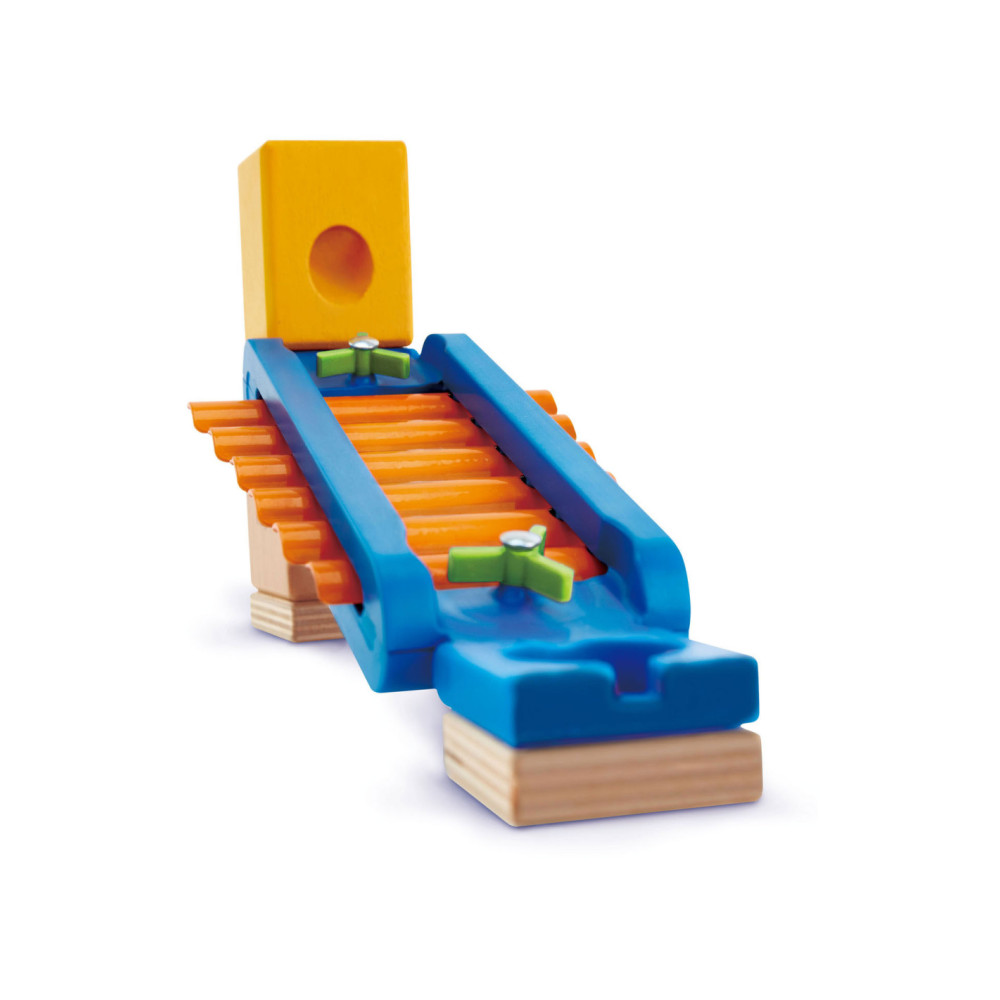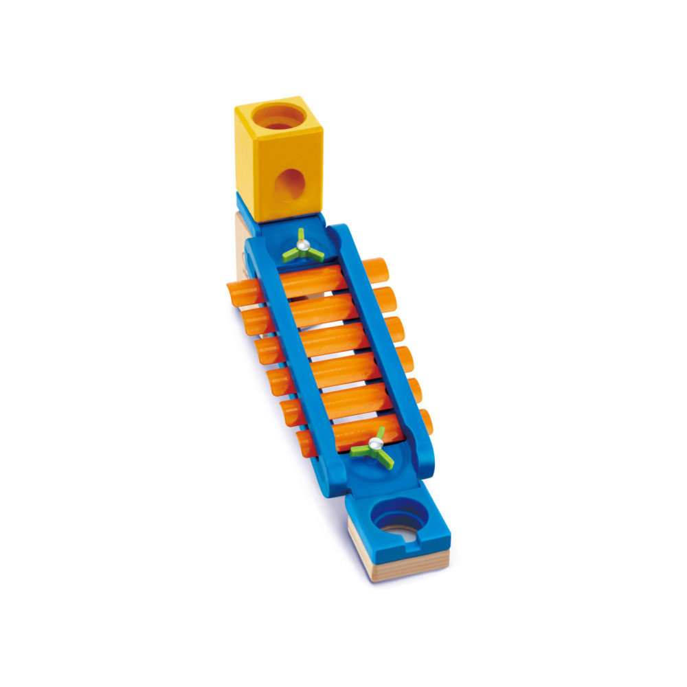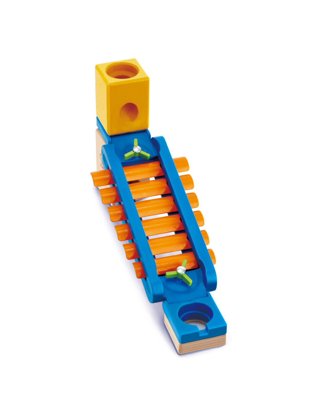 Voeg geluid toe aan je Quadrilla-banen met xylofoonrails die een toonladder afspeelt wanneer de knikkers eroverheen racen.