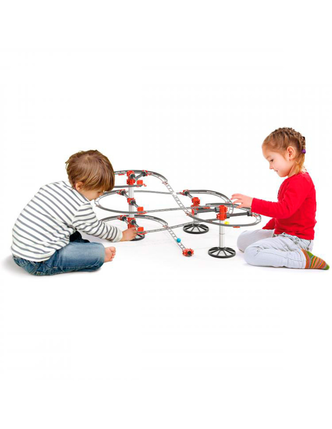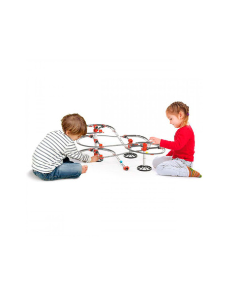 Je knikkers gaan door een ware achtbaan met deze knikkerbaan! Bouw je eigen baan zoals jij dat wilt met deze set en laat je knikkers door de baan rollen! Gemaakt van hoogwaardige kwaliteit kunststof.