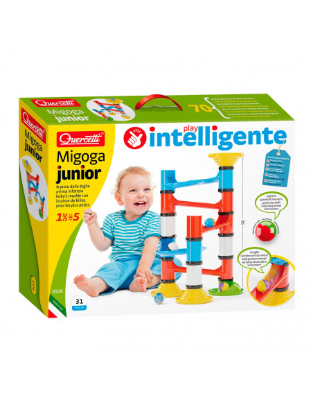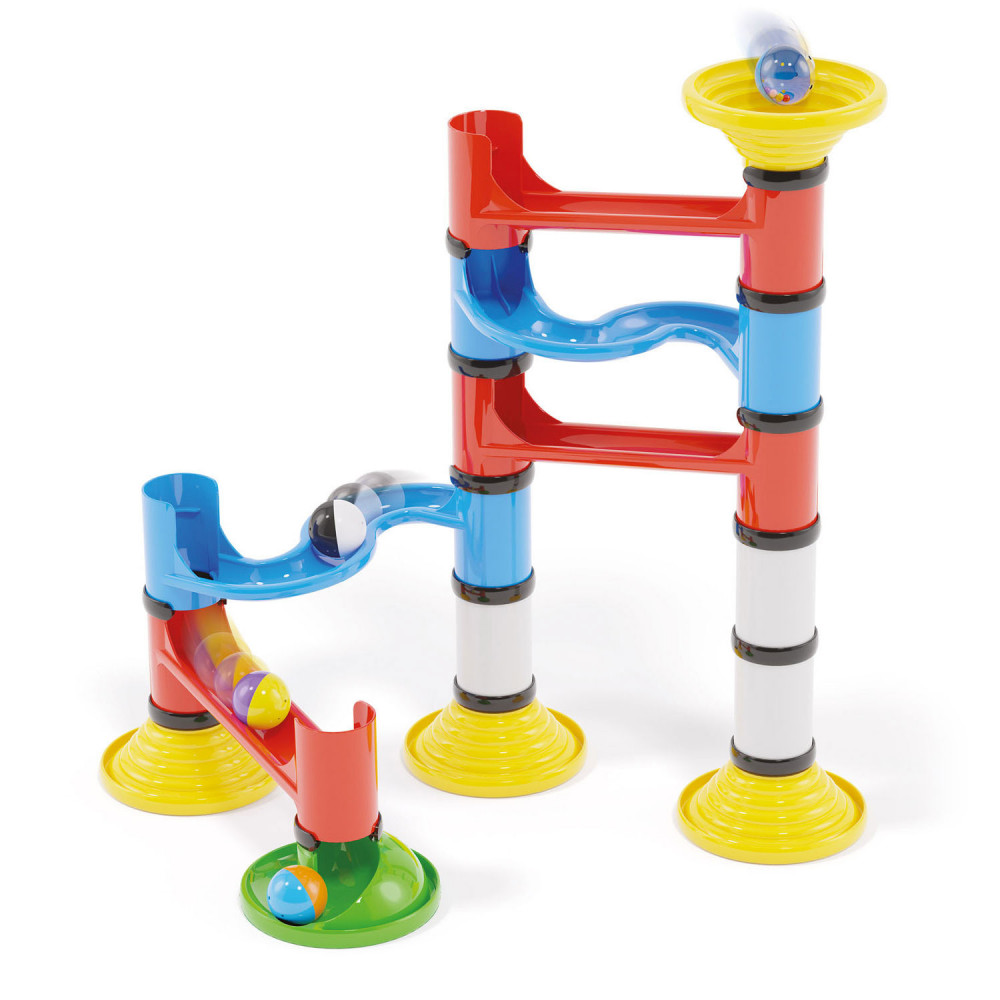 Deze knikkerbaan van Quercetti is speciaal ontworpen voor kleine kinderen.