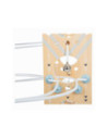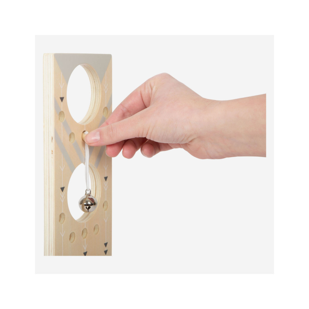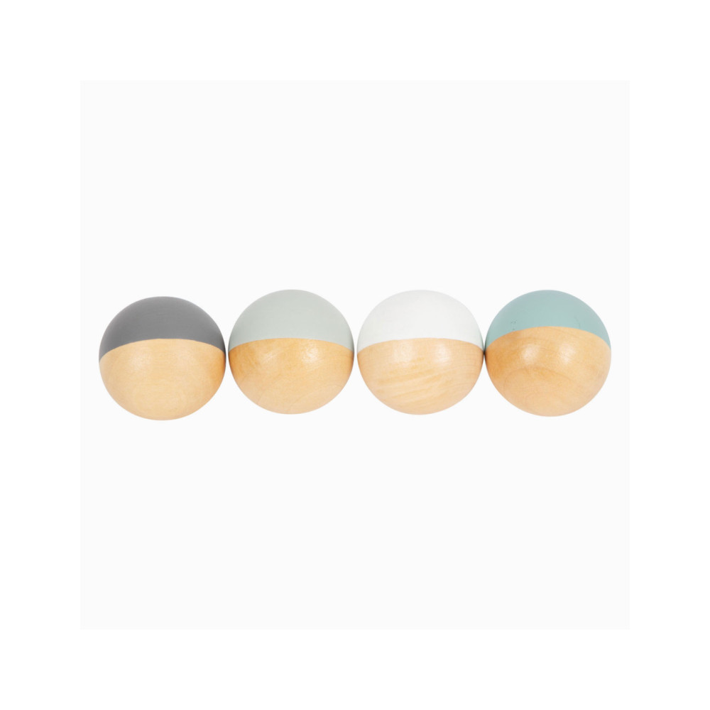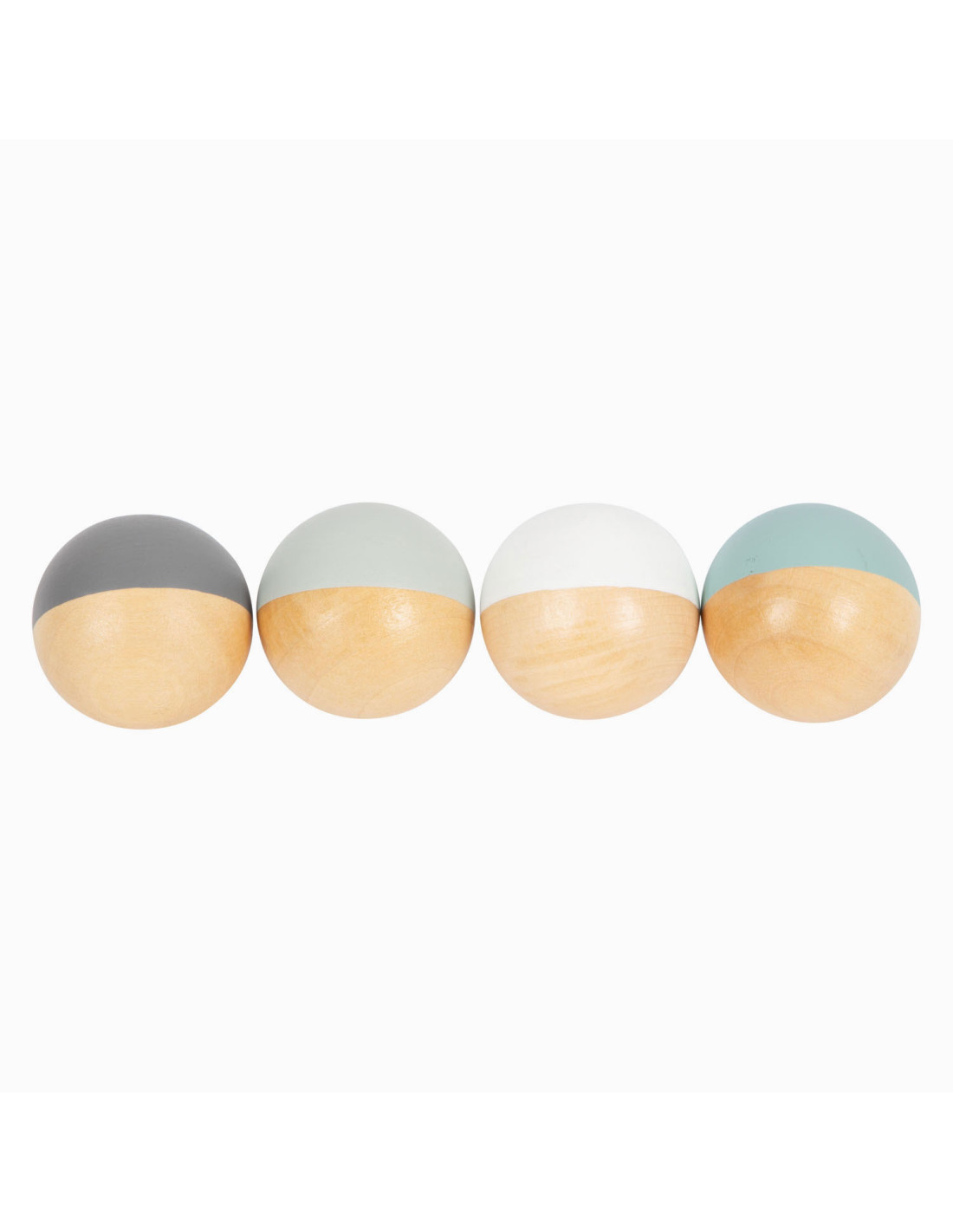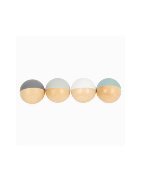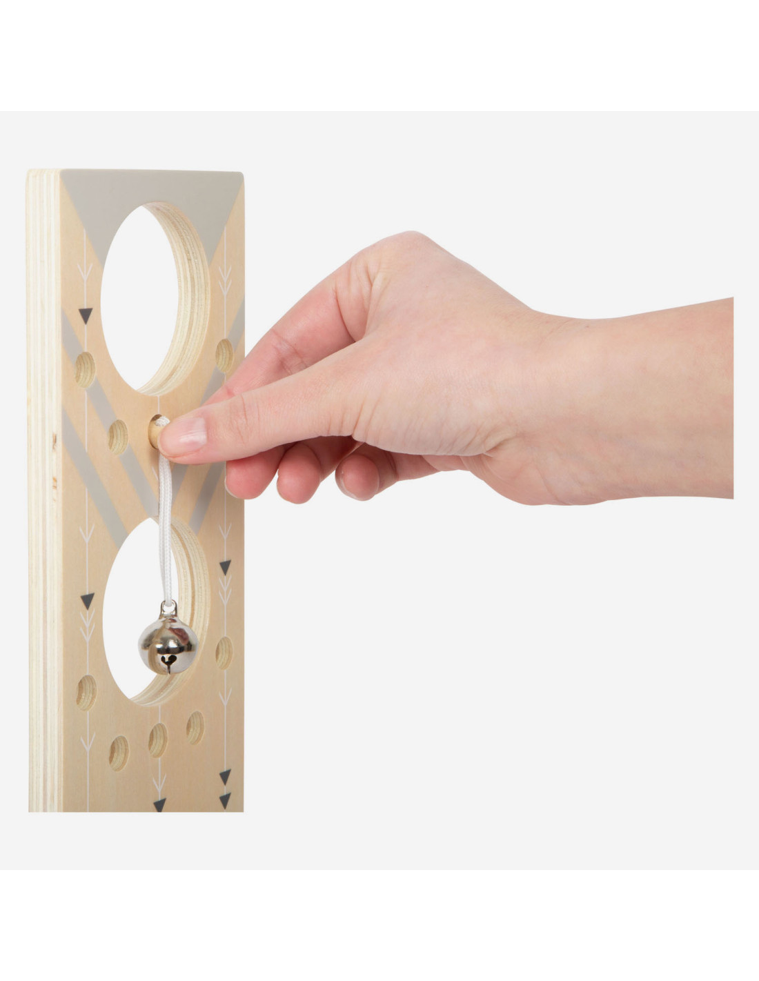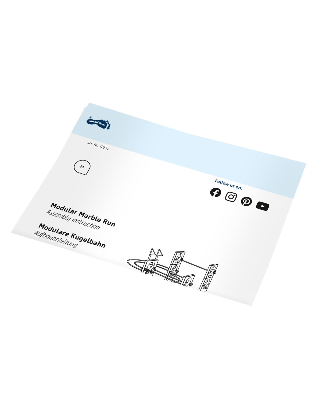 Bouwspeelgoed en knikkerbaan in één! Deze modulaire knikkerbaan in minimalistisch Scandinavisch design trekt jonge, ambitieuze bouwers aan als magie! Dankzij het flexibele systeem van verschillende metalen palen en speciale verbindingselementen biedt deze knikkerbaan volop montage- en constructiemogelijkheden. Met de vier grote ballen van massief hout, stoppers, belletjes en een finishvlag is langdurig speelplezier gegarandeerd! Wordt geleverd met instructies met montagesuggesties. Het modulaire montageprincipe maakt nieuwe, unieke tracks mogelijk en inspireert tot experimenteel en fantasierijk spel. De stoppers en belletjes helpen de ballen te vertragen tijdens hun snelle run door de bochten en de steile hellingen, terwijl de witte en blauwe vlaggen het begin en einde van de run aangeven. Door de verschillende onderdelen in elkaar te zetten, wordt op een speelse manier de fijne motoriek getraind, terwijl de bellen akoestische hoogtepunten bieden. Met zijn subtiele dessin met trendy rookblauw en veel natuurlijk, onbehandeld hout, past deze knikkerbaan prachtig in elke woonkamer of kinderkamer! En dat is bijzonder praktisch: na de speeltijd kan de knikkerbaan weer worden gedemonteerd en ruimtebesparend worden opgeborgen.