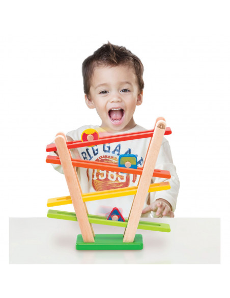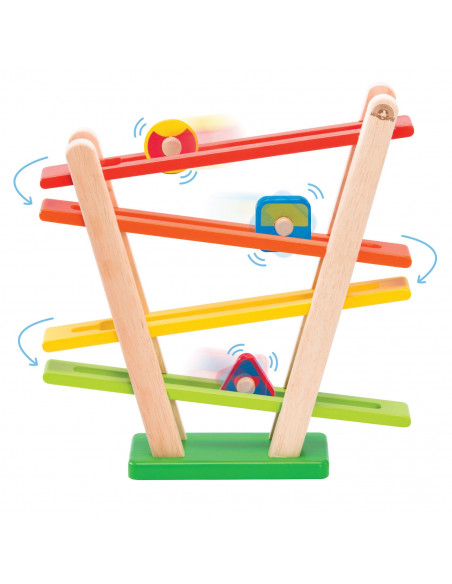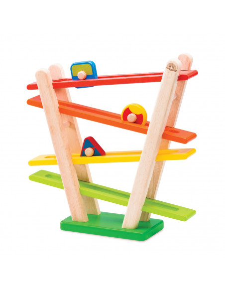 Rol het avontuur tegemoet met deze regenboog autobaan van Wonderworld. Plaats de rollende figuren bovenin de baan en zie hoe ze via de gekleurde banen naar beneden racen. De autobaan is gemaakt van stevig hout en afgewerkt met vrolijk gekleurde details. Inclusief 3 rollende figuren. Spelen met de set geeft inzicht in oorzaak en gevolg en stimuleert de ontwikkeling van concentratie.