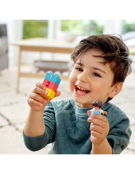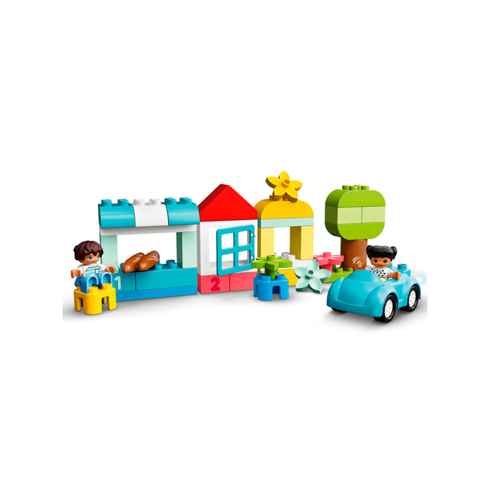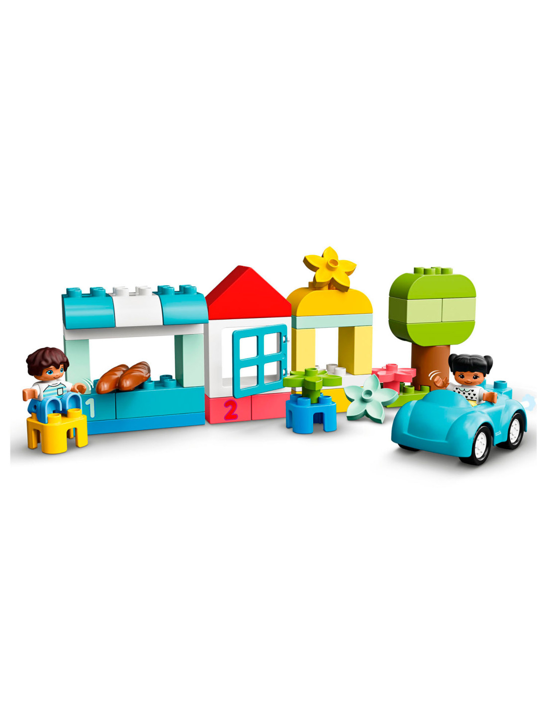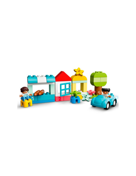 Wanneer je de doos met dit kleurrijke assortiment LEGO DUPLO® stenen opent, opent zich een wereld vol creatief spel dat het ontwikkelingsproces stimuleert. Deze veelzijdige speelset zit boordevol ideeën en inspiratie voor peuters. Er is een auto met bewegende wielen, een dak, een raam, bloemen, een brood... die allemaal kunnen worden gecombineerd met de vele stenen en onderdelen voor eindeloos fantasierijk speelplezier. Je kunt je kind zelfs laten kennismaken met de cijfers 1, 2 en 3 dankzij de vrolijke stenen.