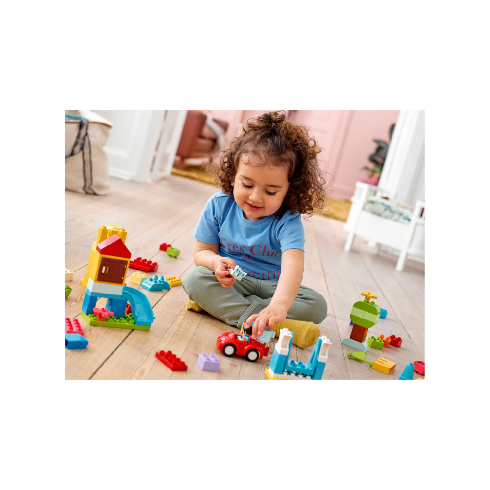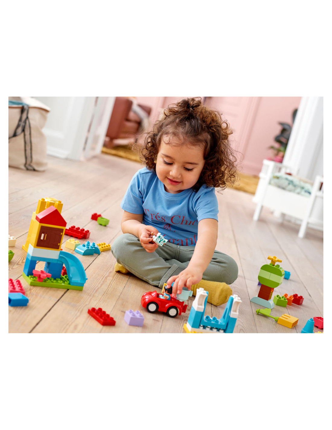 Geef de nieuwsgierigheid van peuters de ruimte en laat ze spelenderwijs leren. Bevat leuke vormen en LEGO stenen in diverse coole kleuren. Inclusief een auto, ramen, bloemen, cadeaus en een taart om de fantasie te prikkelen – plus stenen met de cijfers 1 tot en met 5. Je peuter laten kennismaken met creatief bouwen en de bijbehorende ontwikkelingsvoordelen is heel eenvoudig. Pak een steen en de rest gaat vanzelf!