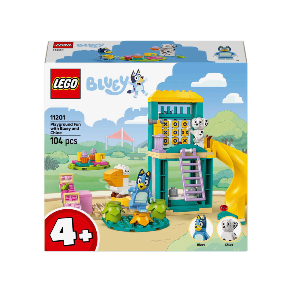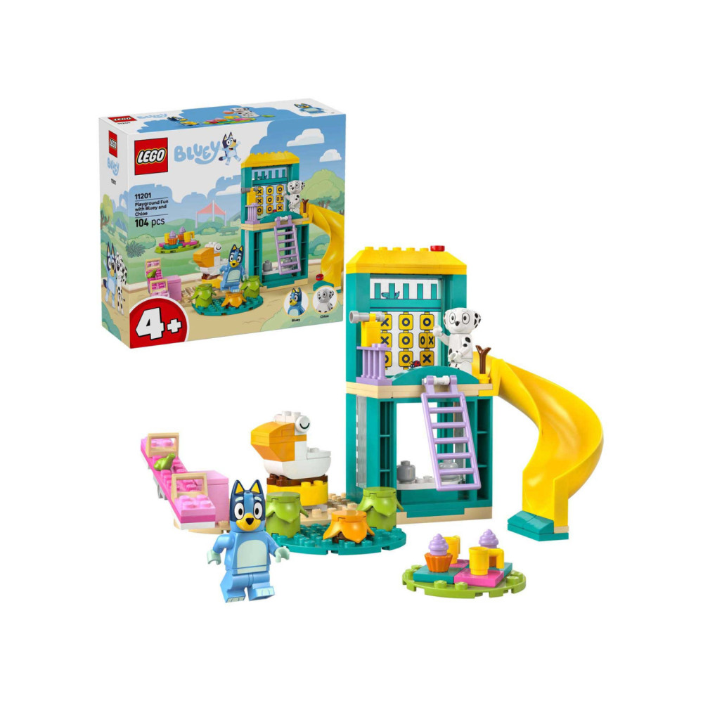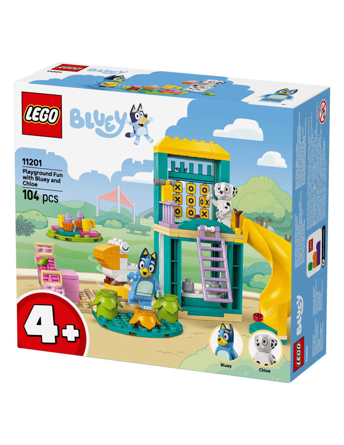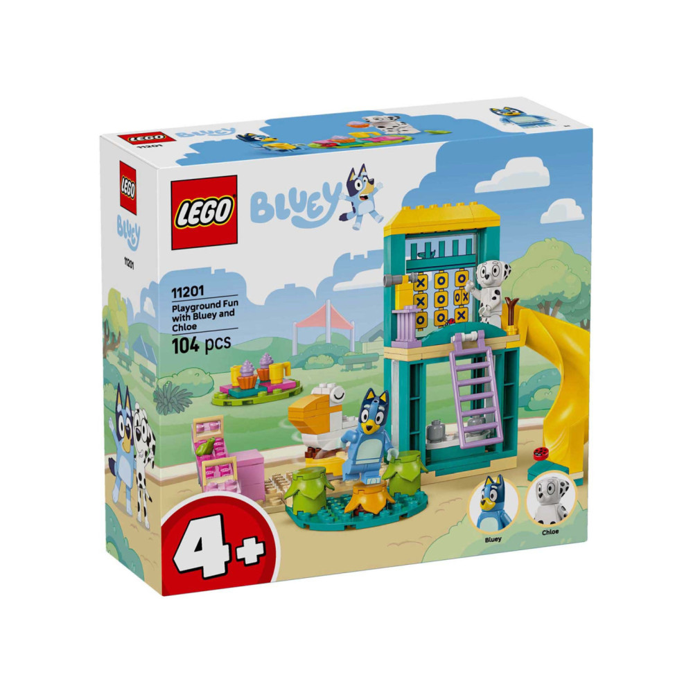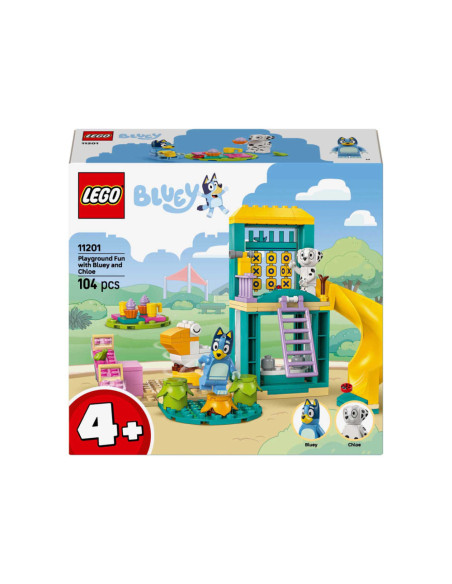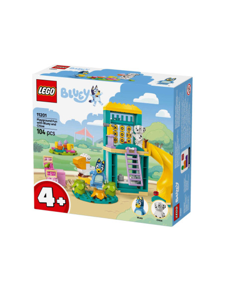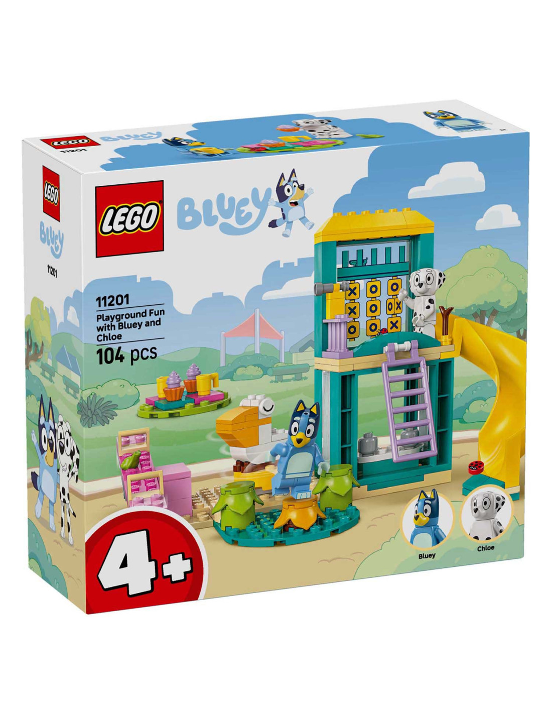 Bluey en Chloé in de speeltuin (11201) is kleuterspeelgoed voor fans van de tv-serie Bluey en is ontworpen om eindeloze creatieve speelmogelijkheden te bieden die het zelfvertrouwen en het probleemoplossend vermogen van kinderen vanaf 4 jaar versterken.