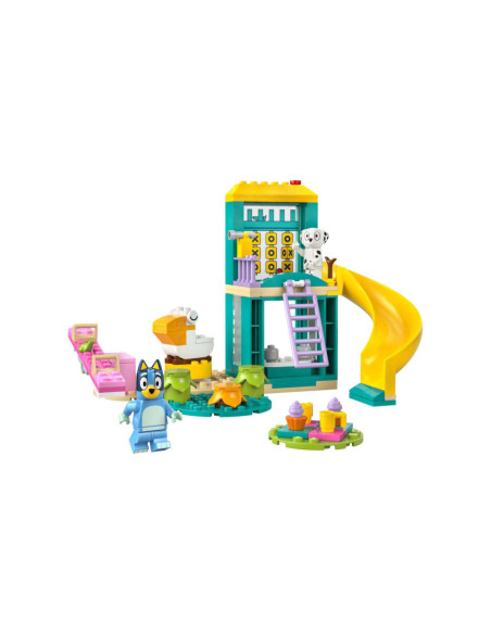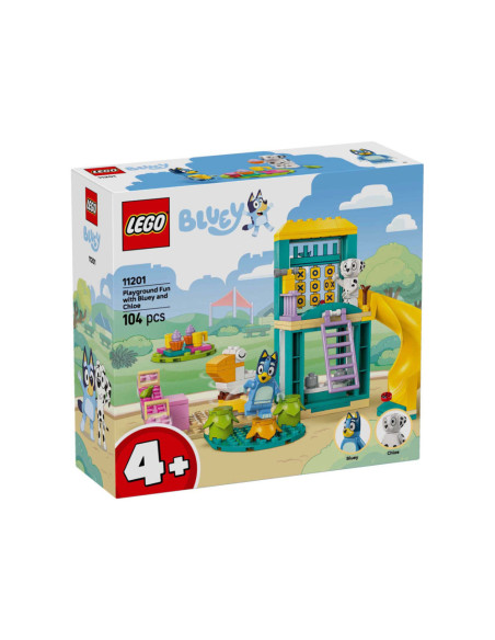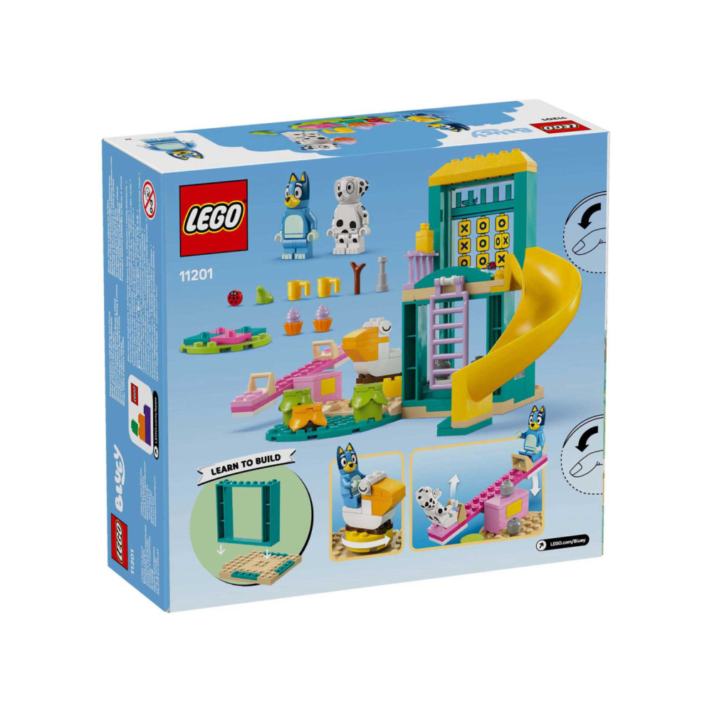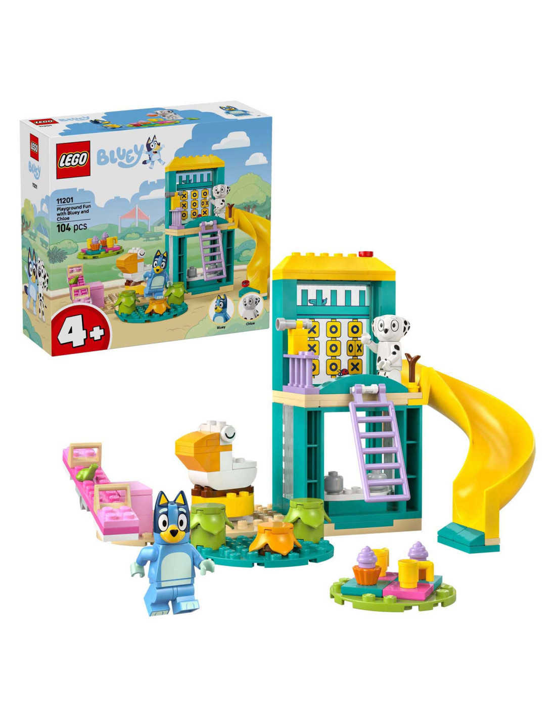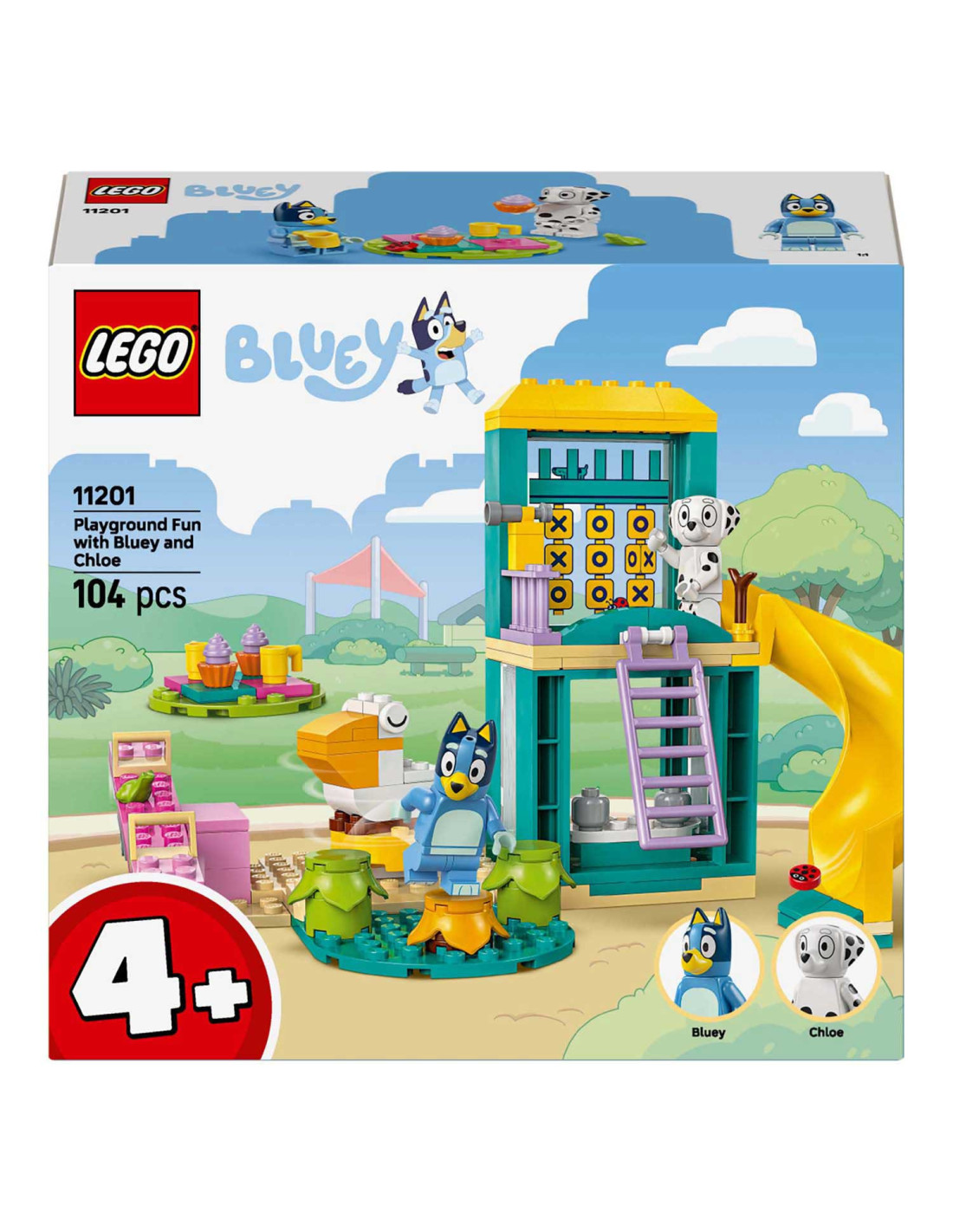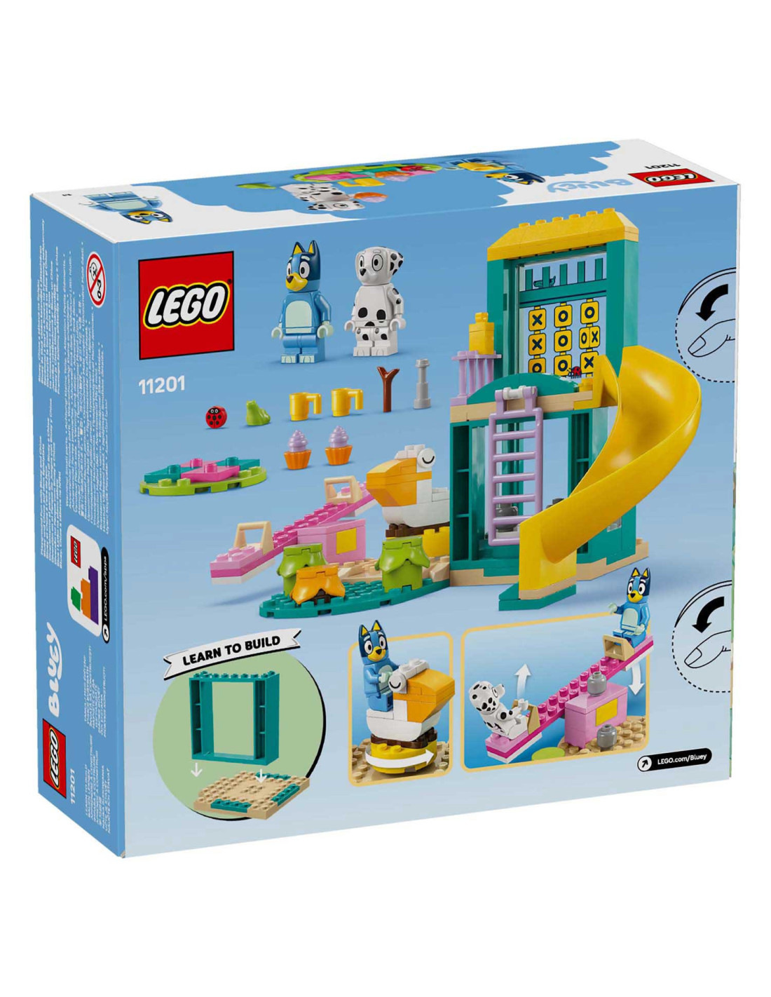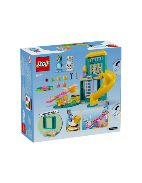 Bluey en Chloé in de speeltuin (11201) is kleuterspeelgoed voor fans van de tv-serie Bluey en is ontworpen om eindeloze creatieve speelmogelijkheden te bieden die het zelfvertrouwen en het probleemoplossend vermogen van kinderen vanaf 4 jaar versterken.