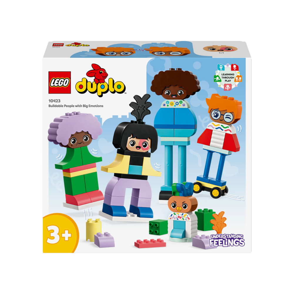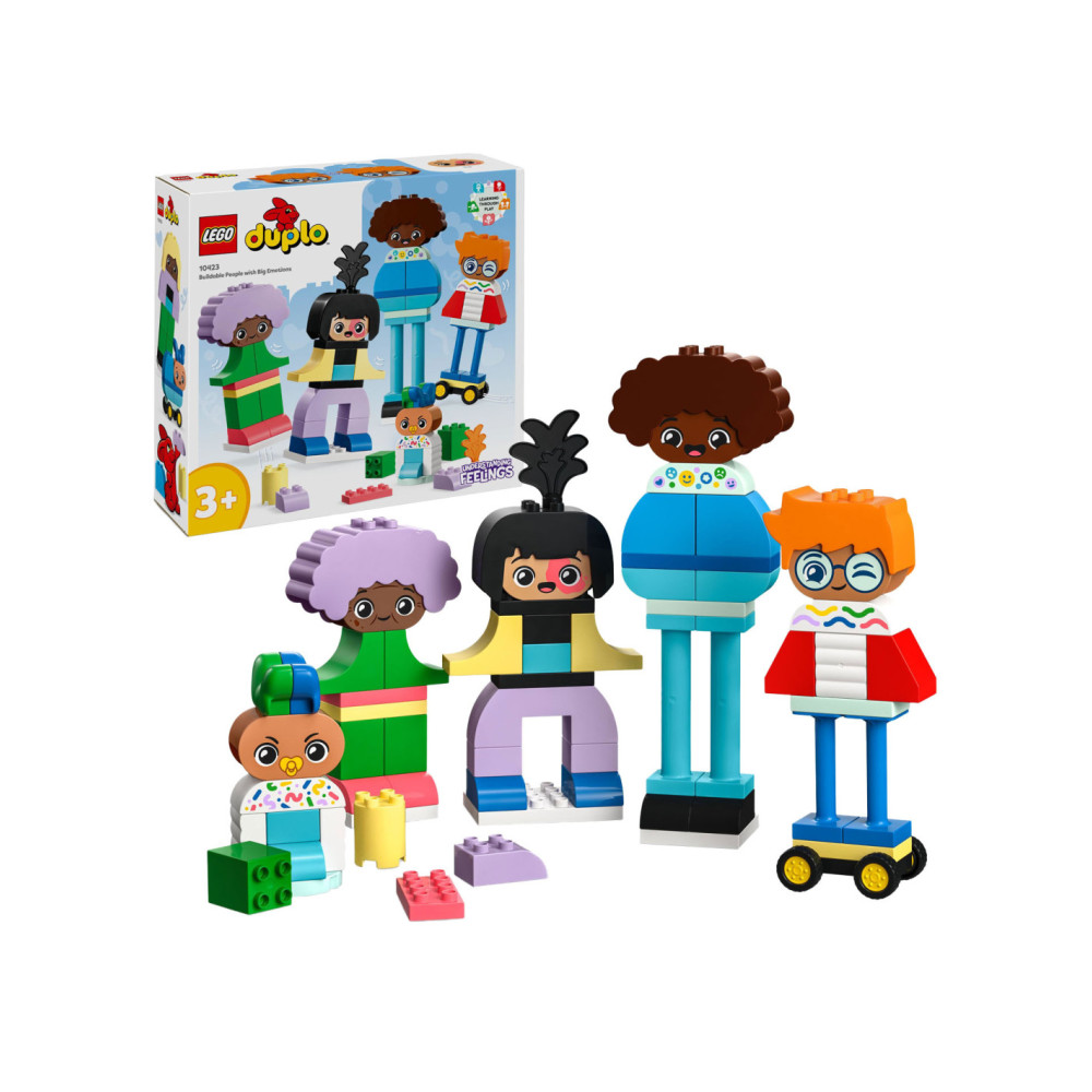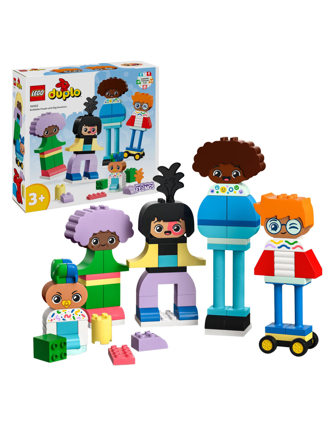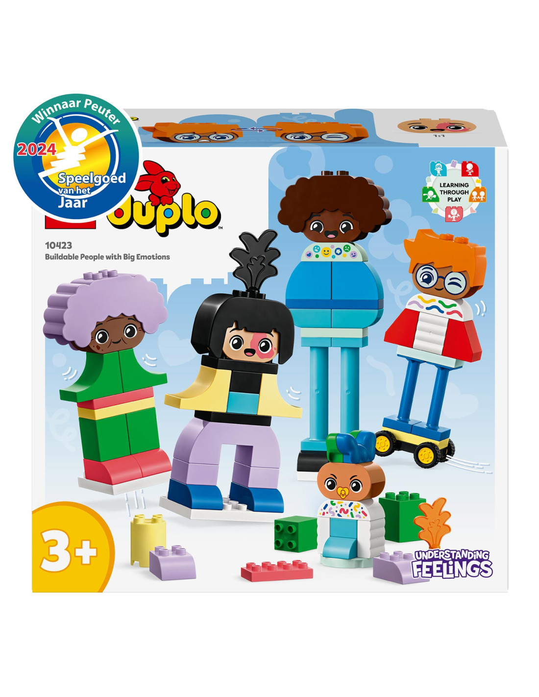 Vul de speeltijd van peuters vanaf 3 jaar met plezier en creativiteit met LEGO DUPLO Stad Mensen en hun emoties (10423). Nieuwsgierige peuters ontdekken dat mensen in alle soorten en maten bestaan en dit educatieve speelgoed helpt ze te begrijpen dat we er misschien heel verschillend uitzien, maar toch allemaal vrienden kunnen zijn.Deze set bevat 71 stenen en onderdelen om 5 bouwbare personages te maken, waaronder 5 pruikstenen en 1 wielbasis. De verbeelding van peuters groeit terwijl ze lichamen, benen, gezichten en kapsels combineren om een eindeloze reeks vriendelijke personages te maken. Met 10 verschillende gezichtsstenen kunnen peuters uitdrukken hoe hun poppetjes zich voelen en beschrijven wat die uitdrukkingen betekenen. De leuke LEGO set met DUPLO figuren is ook een ideale manier om gesprekken te beginnen over hoe anders iedereen is!Dit constructie speelgoed bevat kleurrijke DUPLO bouwstenen in interessante vormen die voor kleine vingertjes aantrekkelijk zijn om te verkennen, waardoor peuters onbeperkt creatief kunnen spelen.Afmetingen �?? deze set bevat 5 figuren die ca. 13 cm tot ca. 26 cm hoog zijn.Bevat 71 onderdelen.