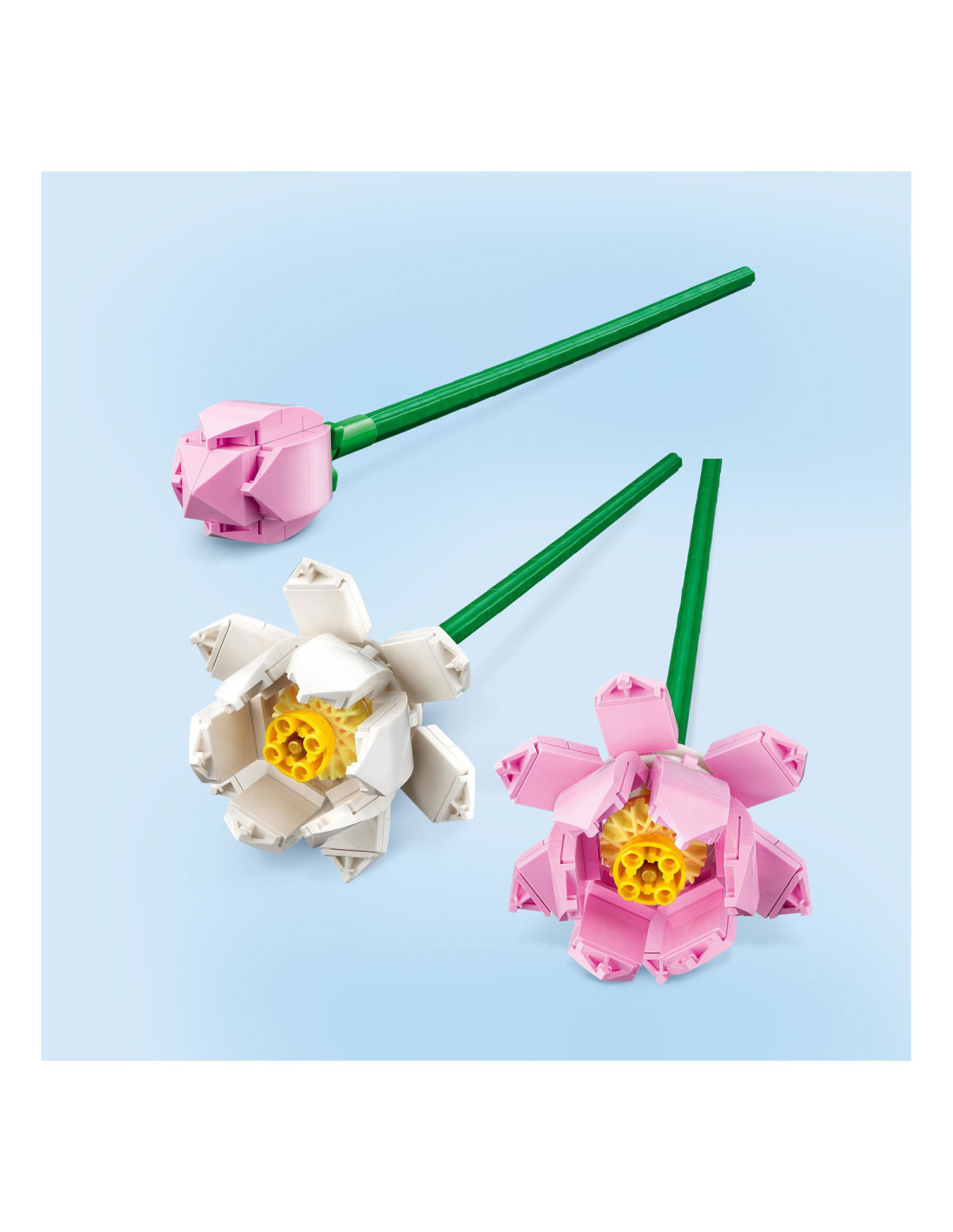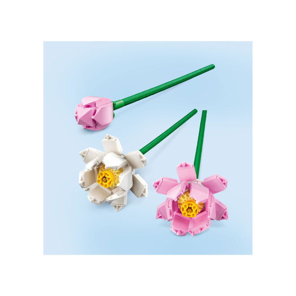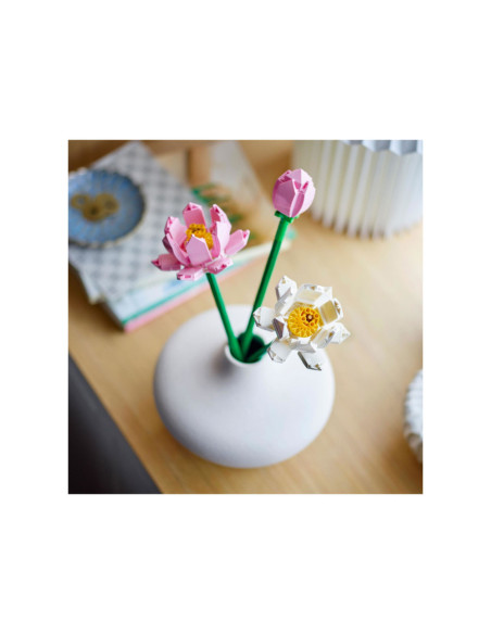 Haal een natuurwonder in huis met het LEGO Lotusbloemen (40647) boeket bouwpakket voor meisjes en jongens. Deze LEGO versie van de wereldwijd bekende bloem toont 2 lotusbloemen in volle bloei, plus een knop, allemaal in zachtroze en wit met lange groene stelen om op de vaas te zetten. Dit prachtige LEGO boeket met kunstbloemen is een geweldig cadeau voor meisjes, jongens, mannen en vrouwen om te geven met een verjaardag, de feestdagen, Valentijnsdag of een andere gelegenheid en kan worden gecombineerd met andere bouwbare LEGO bloemen sets uit de Botanical Collection (apart verkrijgbaar).Na het bouwen vormt deze LEGO Lotus set een prachtige woonaccessoire of bureau accessoire om lang te bewonderen! Afmetingen: elke lotusbloem, met steel, is ca. 30 cm hoog.Bevat 220 onderdelen.