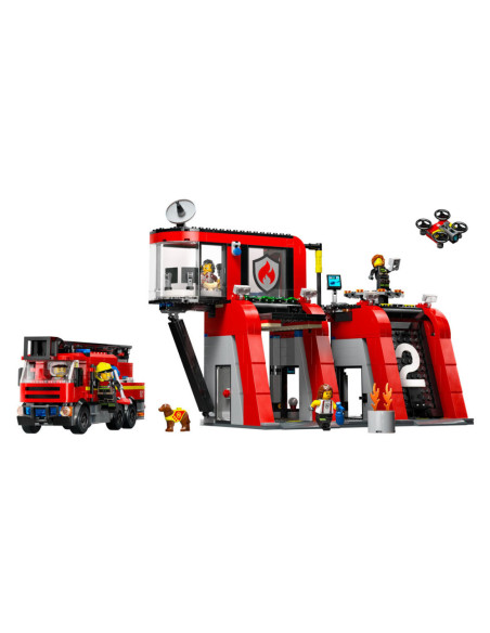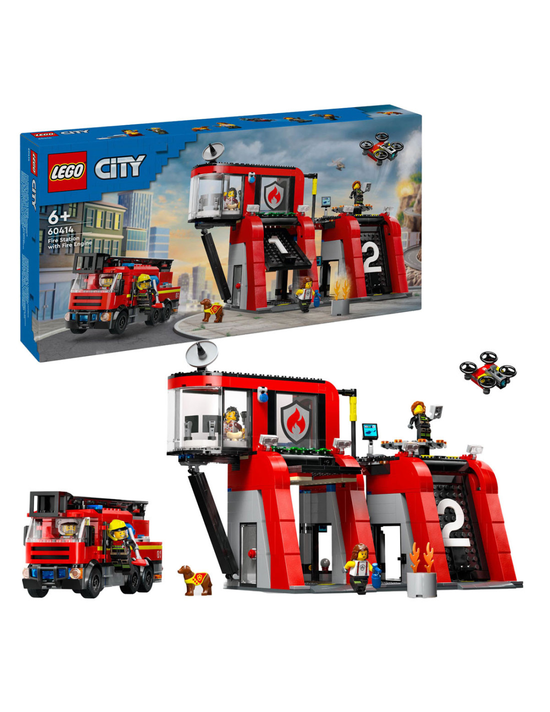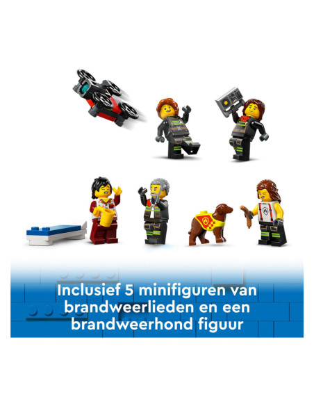 Geef de fantasie een boost met de LEGO City Brandweerkazerne en brandweerauto (60414) speelset voor kinderen vanaf 6 jaar. De speelgoed brandweerkazerne heeft een modern controlecentrum, een keukentje, slaapvertrekken boven een uitrustingsruimte en 2 garages met kanteldeuren. Er is ook een drone en een coole speelgoed brandweerauto met modulaire ladder- en blusaccessoires. Mobiliseer de 5 LEGO minifiguren van brandweerlieden en brandweerhond voor urenlange actie. Kinderen kunnen deze set uitbreiden met andere LEGO City sets uit het assortiment (apart verkrijgbaar) voor nog grotere avonturen!Dit LEGO brandweer speelgoed voor noodsituaties is inclusief een eenvoudig te volgen bouwhandleiding op papier en stapsgewijze 3D-instructies in de LEGO Builder app. Hiermee kunnen kinderen inzoomen en de modellen draaien om ze tijdens het bouwen vanuit alle hoeken te bekijken.LEGO City sets bieden uitgebreide speelmogelijkheden op het land, in de lucht en op het water voor fantasierijk speelplezier zonder grenzen. De speelgoed brandweerwagen set is een leuk cadeau voor jongens en meisjes die van rollenspellen en speelgoed voertuigen houdenAfmetingen: de brandweerkazerne in deze bouwset is ca. 22 cm hoog, 32 cm breed en 14 cm diep.Bevat 843 onderdelen.