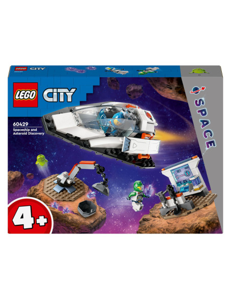 Ga samen met je kleine astronaut op buitenaardse avonturen met deze 4+ LEGO City Ruimteschip en ontdekking van asteroïde (60429) speelset met een speelgoed ruimteschip en 2 asteroïdegedeelten: een laboratorium en een opgravingsgebied met een kraan. Voeg de 2 speelgoed astronaut minifiguren, de speelgoed alien en de kristalrijke meteoriet toe voor fantasierijke verhalen.Dit eenvoudig te bouwen ruimte speelgoed is een leuk cadeau voor kinderen die graag doen alsof. De set bevat een LEGO startsteen, instructies met afbeeldingen en 3D-instructies in de LEGO Builder app �?? een digitale bouwpartner met intuïtieve functies waarmee kinderen kunnen inzoomen, modellen kunnen draaien en ze van alle kanten kunnen bekijken tijdens het bouwen.LEGO City ruimte sets bevatten realistische voertuigen, gedetailleerde gebouwen en inspirerende personages die fantasie en werkelijkheid combineren. Kinderen kunnen deze leuke set uitbreiden met andere sets (apart verkrijgbaar) uit het LEGO City ruimteassortiment voor nog meer avonturen.Afmetingen: het ruimteschip in deze set is ca. 4 cm hoog, 14 cm lang en 9 cm breed.Bevat 126 onderdelen.
