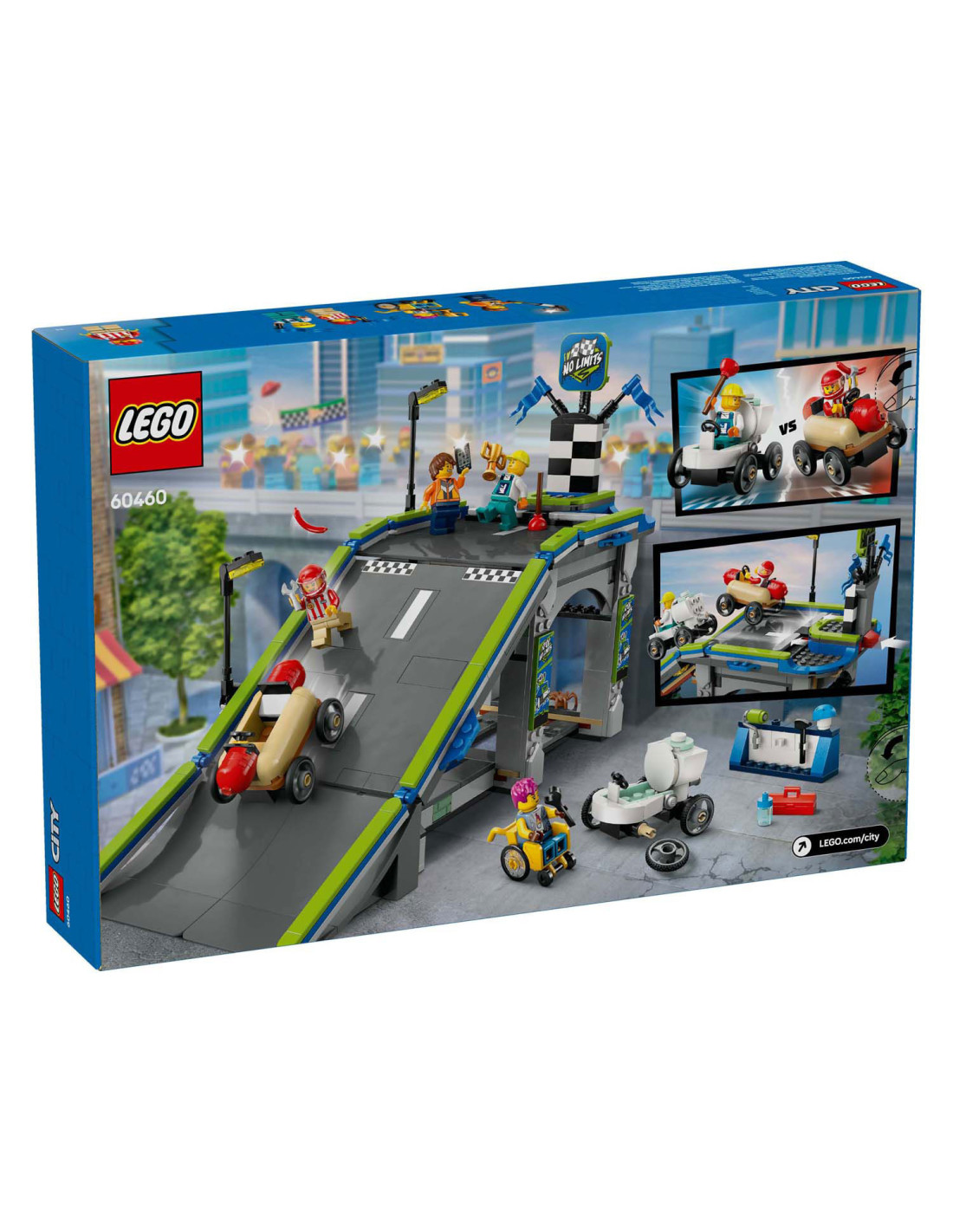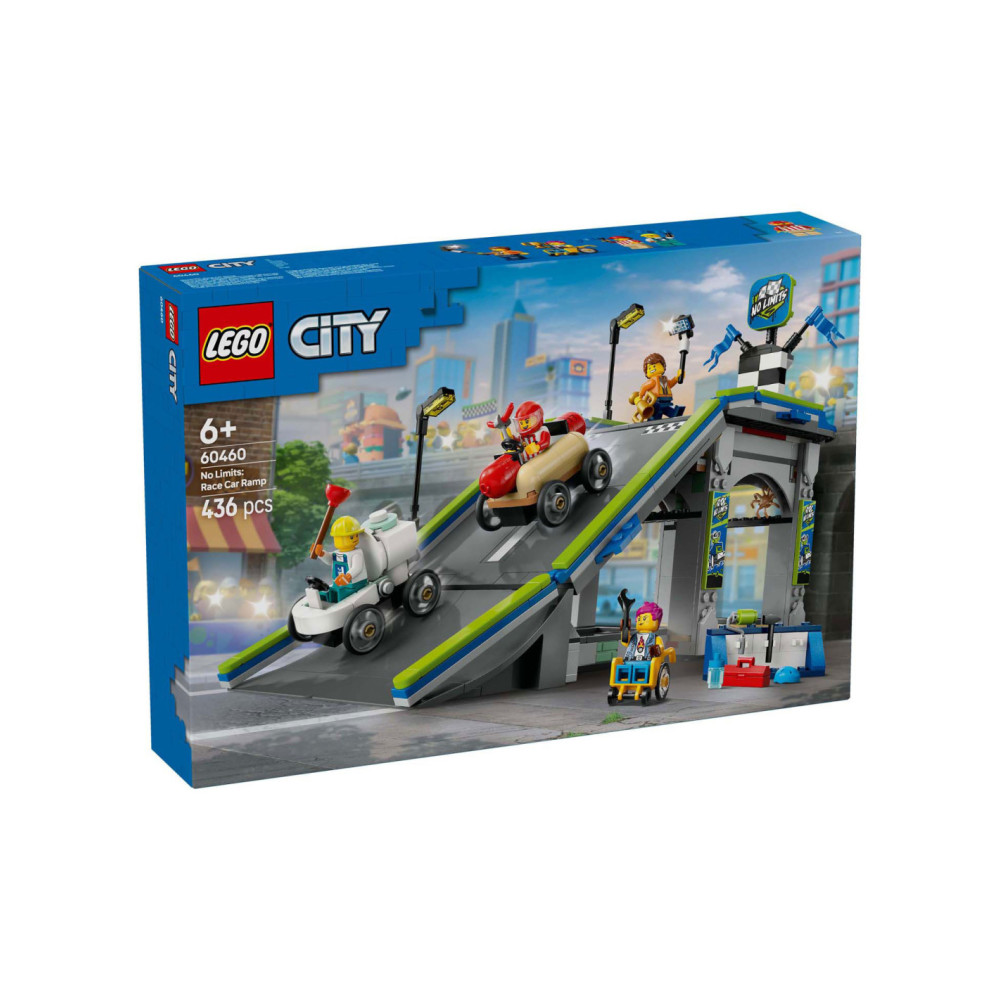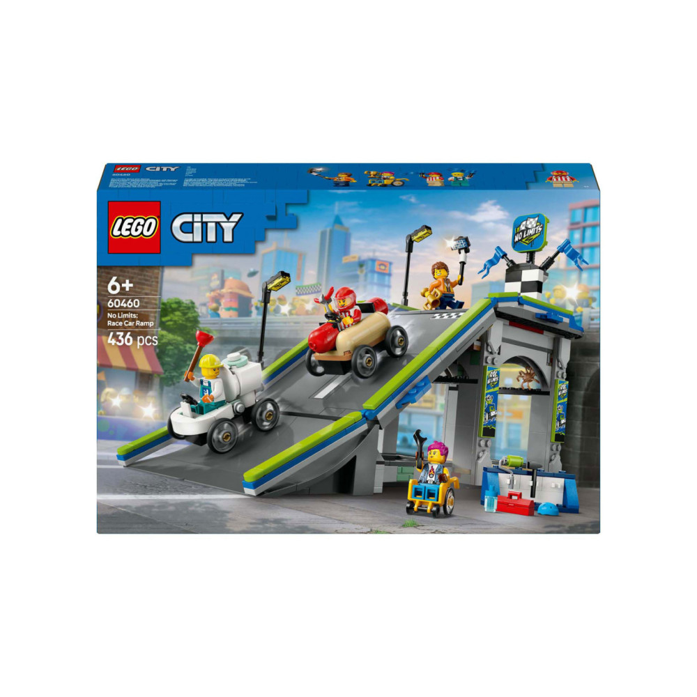 Til het speelplezier van je kind naar een hoger niveau met het LEGO® City Snelle schans voor raceauto's (60460) speelgoed voor kinderen vanaf 6 jaar. Deze dynamische zeepkistenraceset bevat een hoge autoschans en 2 unieke zeepkistvoertuigen. Kijk hoe kinderen de hotdog- en toiletauto's boven aan de helling plaatsen en op een hendel drukken om ze vanaf de startlijn weg te laten razen. Met 4 minifiguren, waaronder een hotdogverkoper en een loodgieter als coureurs.Deze LEGO set voor zeepkistenraces is inclusief een gedrukte bouwgids. Kinderen kunnen ook genieten van een leuk bouwavontuur in de LEGO Builder app. Hier kunnen ze inzoomen en modellen in 3D draaien, hun voortgang bijhouden tijdens het bouwen en andere speelsets verkennen en opslaan.LEGO City speelsets bevatten coole voertuigen, realistische gebouwen en leuke personages. Kinderen kunnen deze zeepkistenraceset combineren met andere sets (apart verkrijgbaar) uit het LEGO City assortiment voor nog meer speelmogelijkheden.