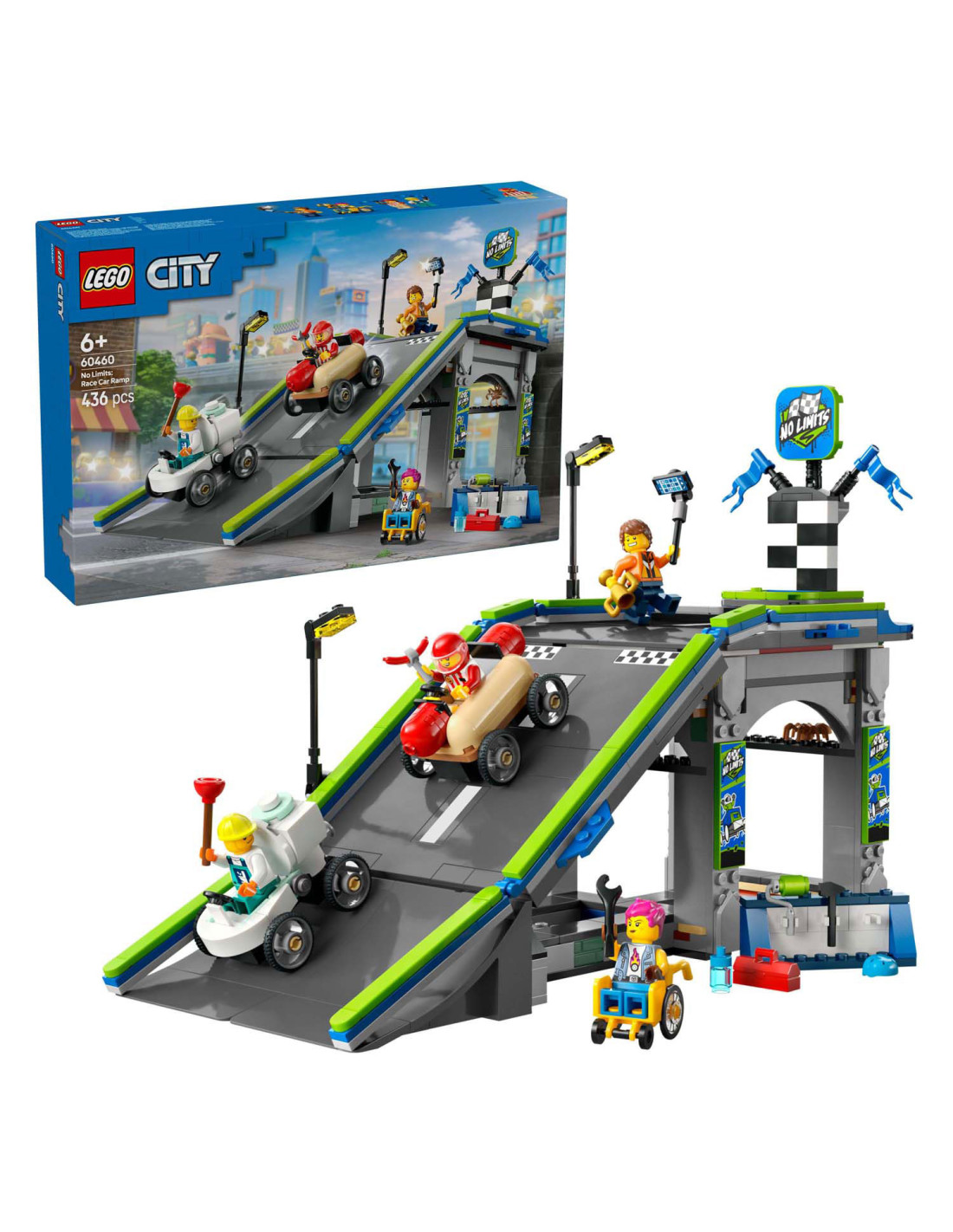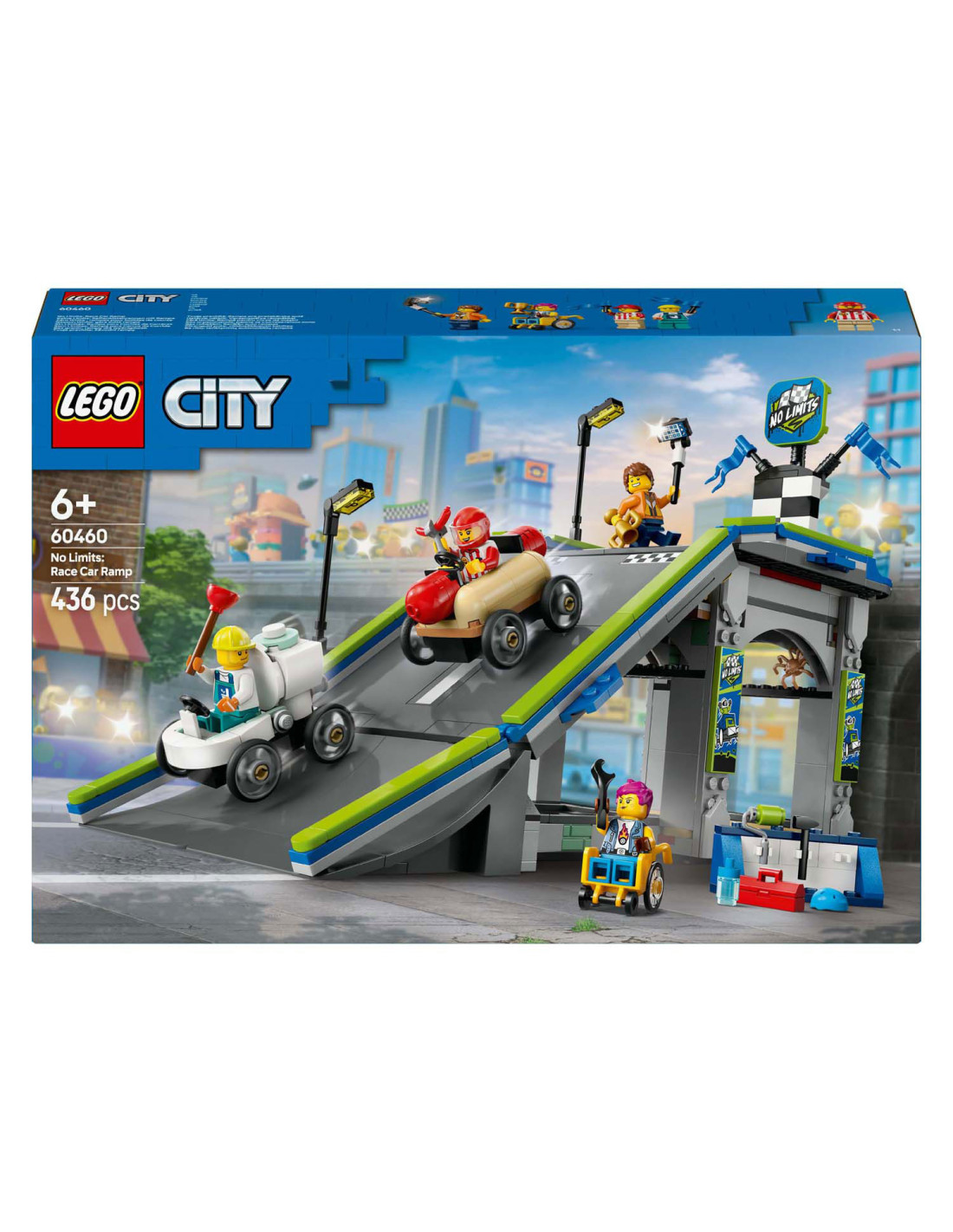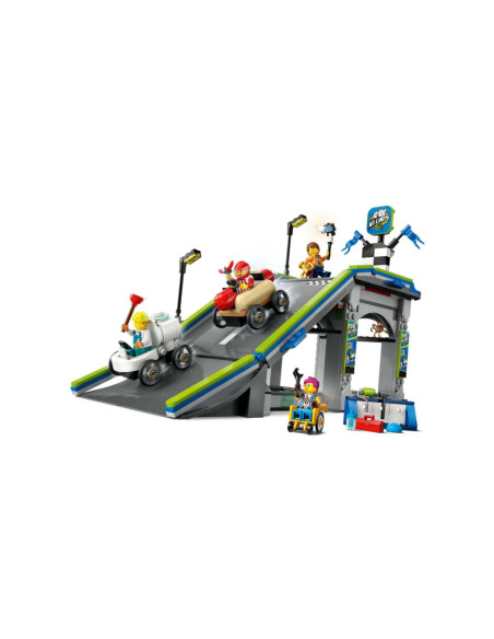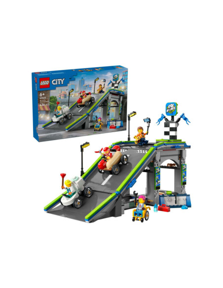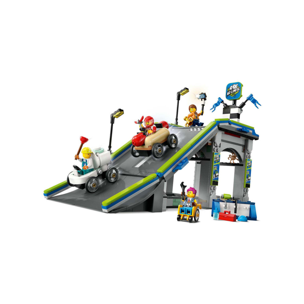 Til het speelplezier van je kind naar een hoger niveau met het LEGO® City Snelle schans voor raceauto's (60460) speelgoed voor kinderen vanaf 6 jaar. Deze dynamische zeepkistenraceset bevat een hoge autoschans en 2 unieke zeepkistvoertuigen. Kijk hoe kinderen de hotdog- en toiletauto's boven aan de helling plaatsen en op een hendel drukken om ze vanaf de startlijn weg te laten razen. Met 4 minifiguren, waaronder een hotdogverkoper en een loodgieter als coureurs.Deze LEGO set voor zeepkistenraces is inclusief een gedrukte bouwgids. Kinderen kunnen ook genieten van een leuk bouwavontuur in de LEGO Builder app. Hier kunnen ze inzoomen en modellen in 3D draaien, hun voortgang bijhouden tijdens het bouwen en andere speelsets verkennen en opslaan.LEGO City speelsets bevatten coole voertuigen, realistische gebouwen en leuke personages. Kinderen kunnen deze zeepkistenraceset combineren met andere sets (apart verkrijgbaar) uit het LEGO City assortiment voor nog meer speelmogelijkheden.