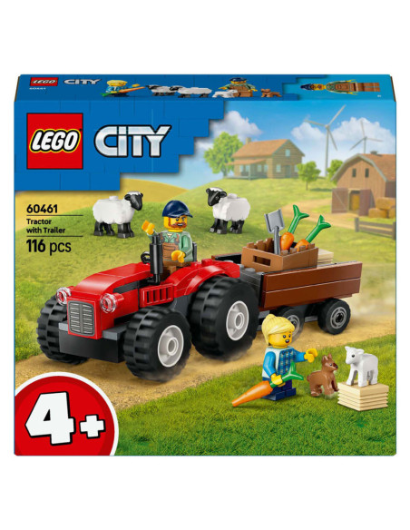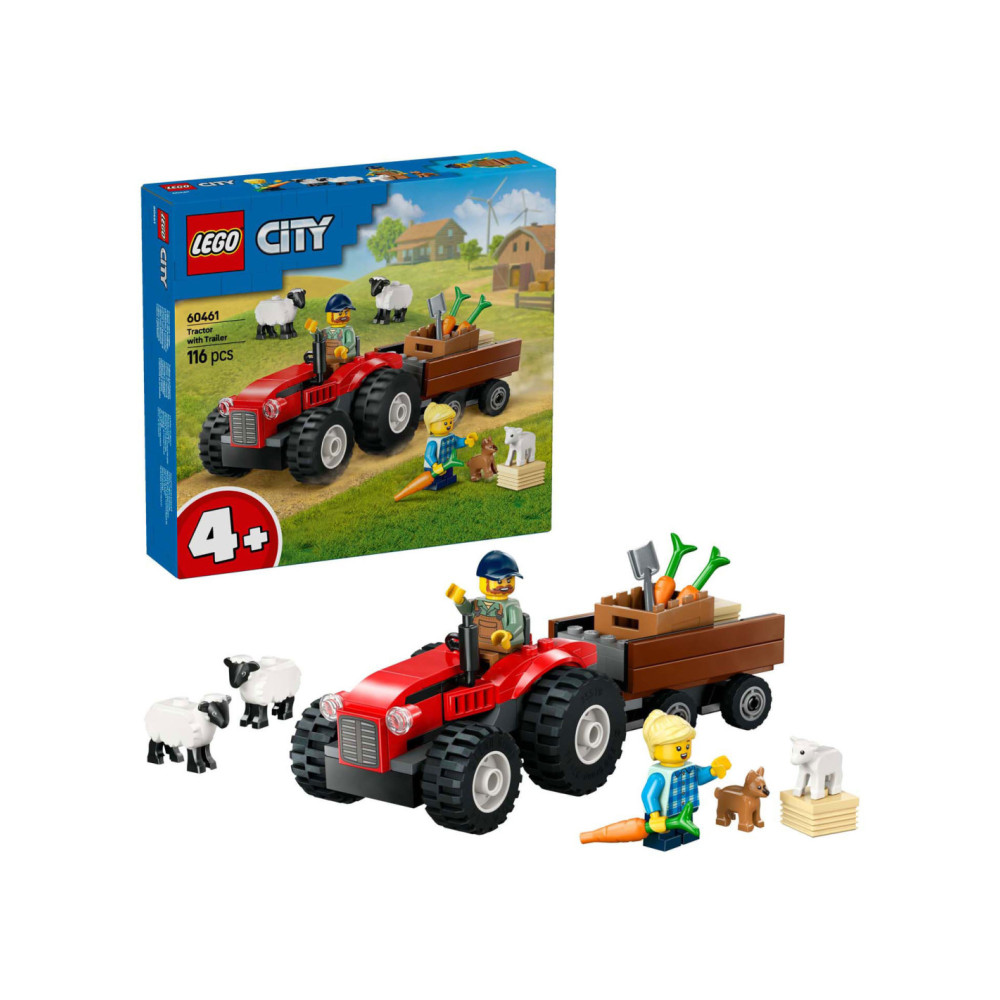 Haal de charme van het platteland in huis met de LEGO® City Rode tractor met aanhanger en schapen (60461) boerderijspeelset. Deze set is geschikt voor kinderen van 4 jaar en ouder en bevat een rode tractor met een afneembare aanhanger, een mand met wortels en 2 hooibalen. Voeg de minifiguren van een boer en dochter toe, samen met 2 schapen, een lammetje en een puppy voor leuke rollenspellen en verhalen.