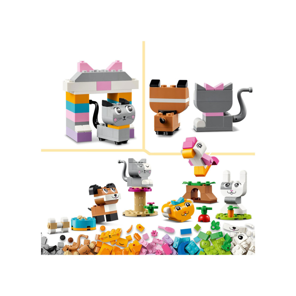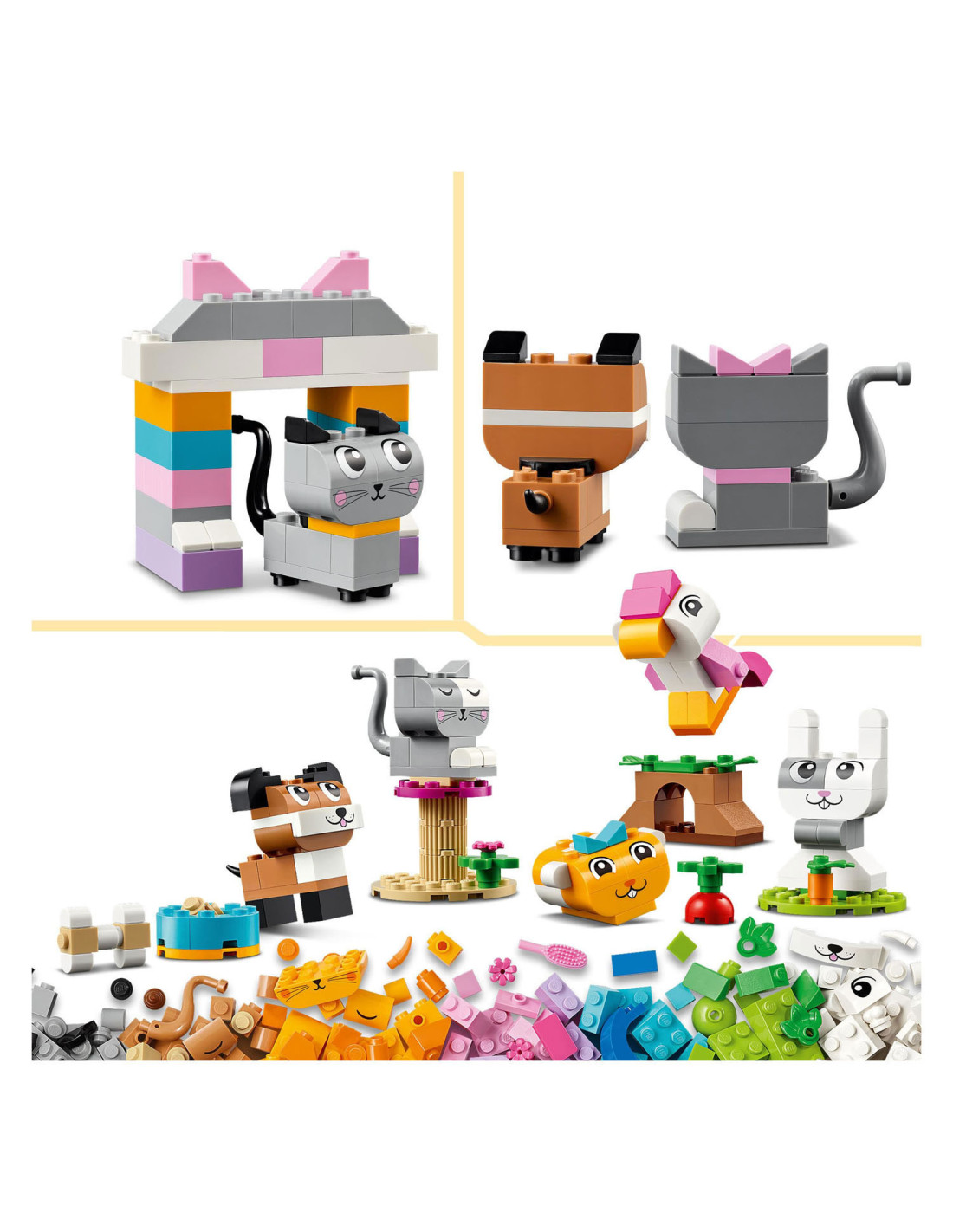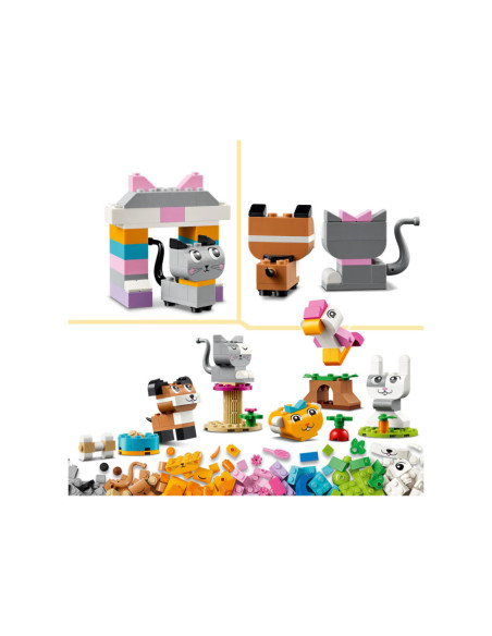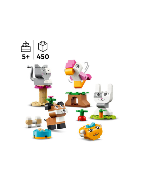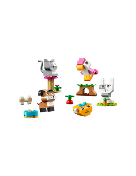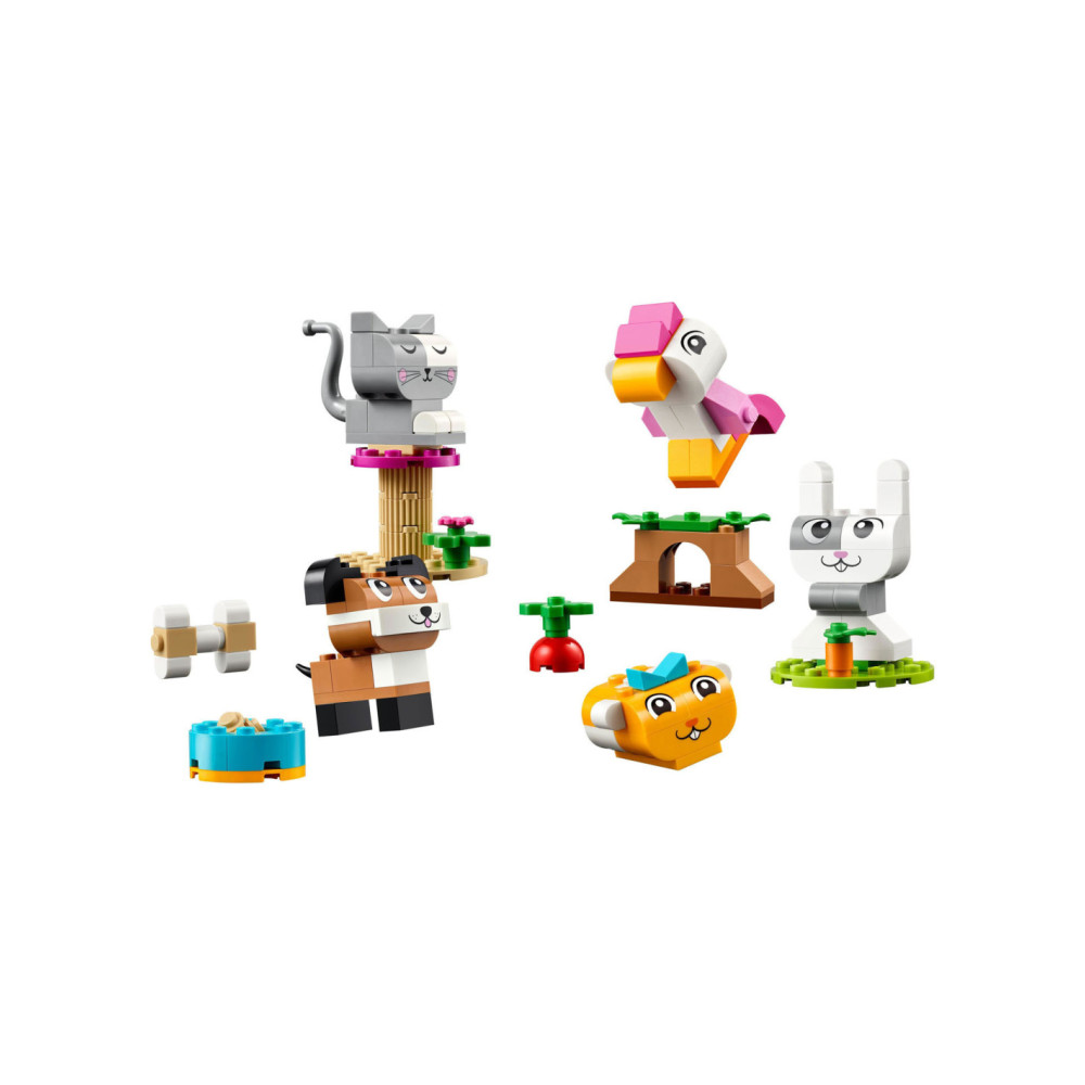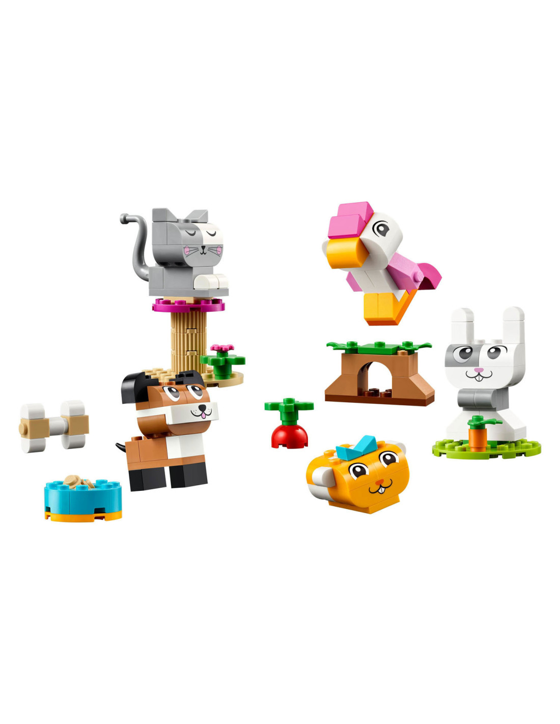 Dierenliefhebbers vanaf 5 jaar kunnen genieten met LEGO Classic Creatieve huisdieren (11034), een inspirerende combinatie van dierenstenen met eenvoudige handleidingen voor een kleurrijke reeks snel te bouwen dieren speelgoed. Het is een geweldige manier om de creatieve vaardigheden van kinderen te stimuleren.Met 450 LEGO bouwstenen, waaronder speciale onderdelen met ogen en monden, en eenvoudige stapsgewijze instructies kunnen kinderen een speelgoed hond bouwen met een voerbak en bot, een speelgoed kat op een krabpaal, een hamster met een appel, een konijn met een wortel en een LEGO vogel op een zitstok. Vervolgens kunnen ze met behulp van de suggesties voor alternatieve kleuren, vormen en functies hun huisdieren op een leuke, nieuwe manier herbouwen en hun eigen ideeën uitproberen. Er wordt een gids met 10 ideeën meegeleverd om het vrije bouwplezier een boost te geven. Kinderen die ervan houden om dieren te verzorgen, zullen dol zijn op deze LEGO dieren set.LEGO Classic speelgoed zit vol ideeën en inspiratie, waarmee ouders bouwplezier en mijlpalen in de ontwikkeling met hun kinderen kunnen delen. Leuk als cadeau voor meisjes en jongens vanaf 5 jaar die van dieren houden!Afmetingen: eenmaal gebouwd is het hondenmodel ca. 5 cm hoog en de kat op de krabpaal ca. 7 cm hoog.Bevat 450 onderdelen.