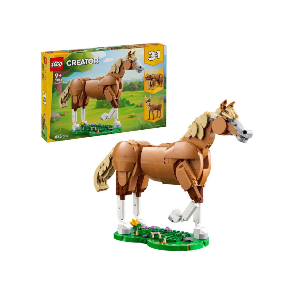 Jonge dierenliefhebbers vanaf 9 jaar kunnen leuke verhalen beleven met deze Prachtig paard (31166) bouwset. Het hoofd, de nek, heupen, enkels, staart en een van de knieën van het speelgoedpaard zijn verstelbaar. De set wordt bovendien geleverd met een basis met graseffect, zodat kinderen het paard in 3 verschillende houdingen kunnen neerzetten: staand op 3 of 4 benen of steigerend op zijn achterbenen.