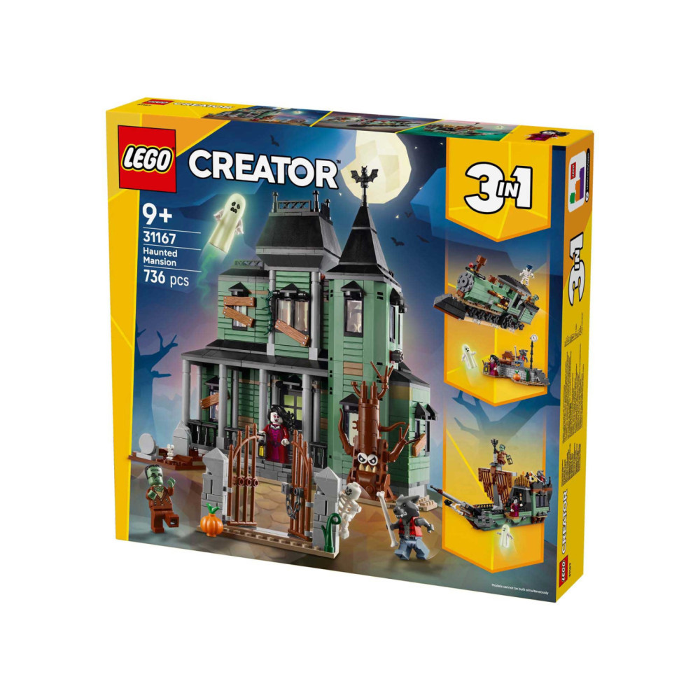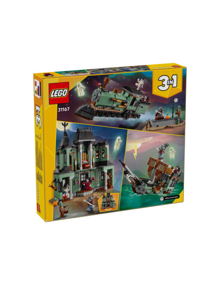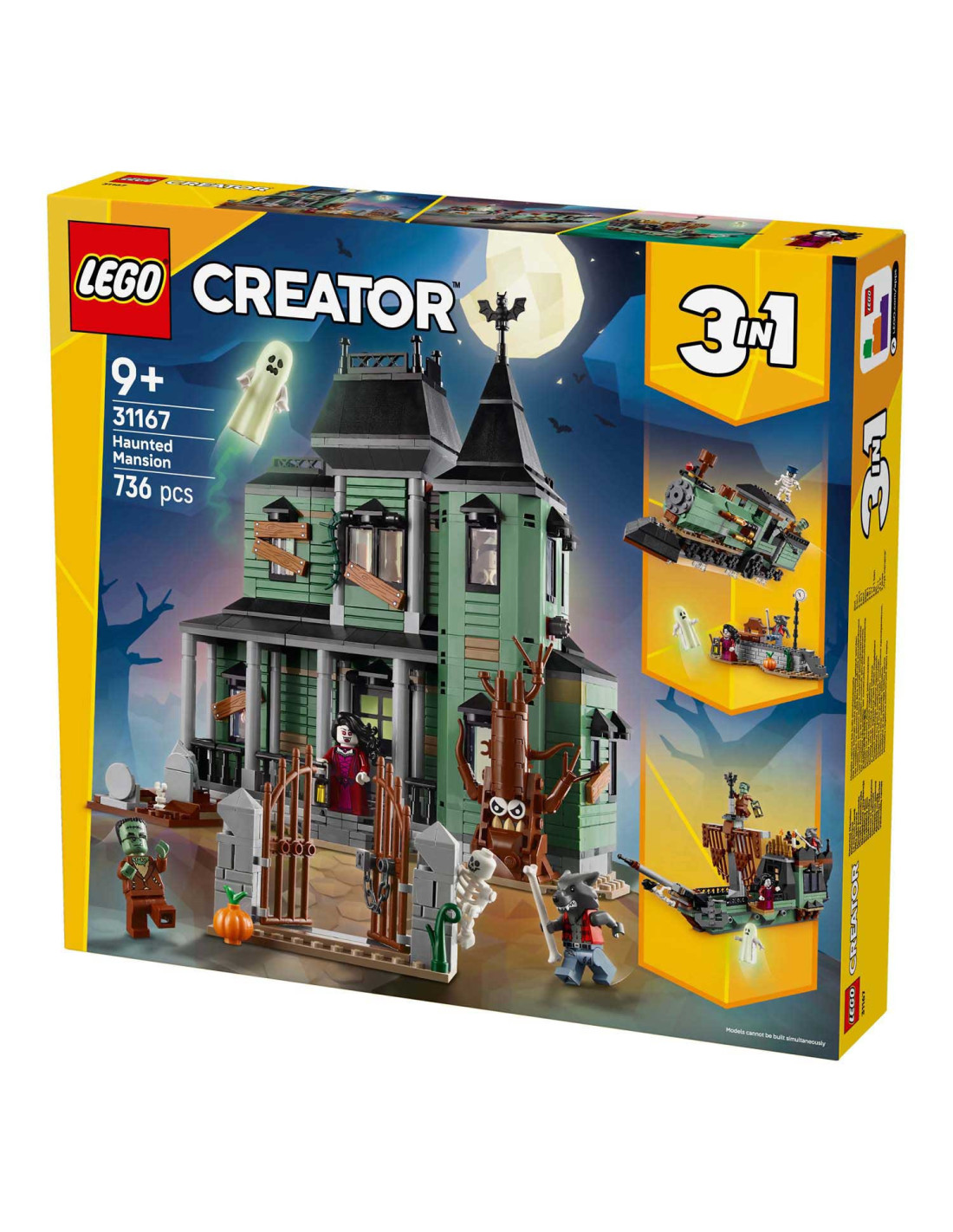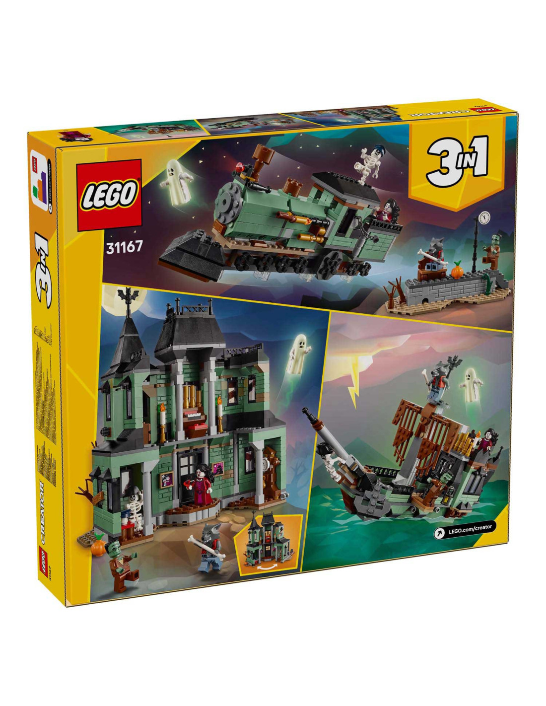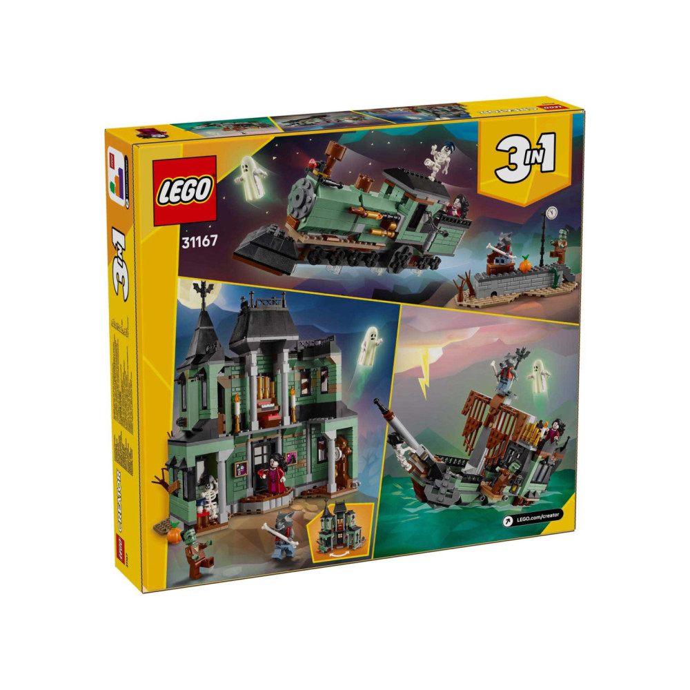 Speel griezelverhalen na met dit bouwbare LEGO® Creator 3in1 Spookhuis (31167). Het gebouw van 2 verdiepingen zit boordevol coole details en functies, waaronder een poort aan de voorkant die open kan, een kerkhof, een afneembare enge boom, een orgel en een spook dat verschijnt als je aan een wiel draait. Open het huis aan de achterkant voor nog meer speelplezier.