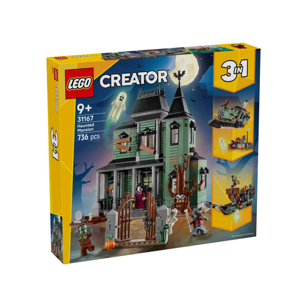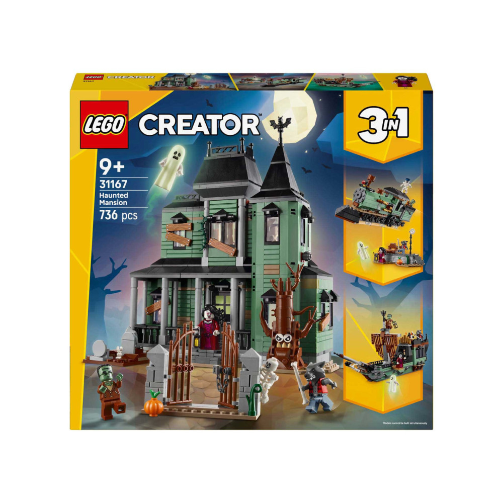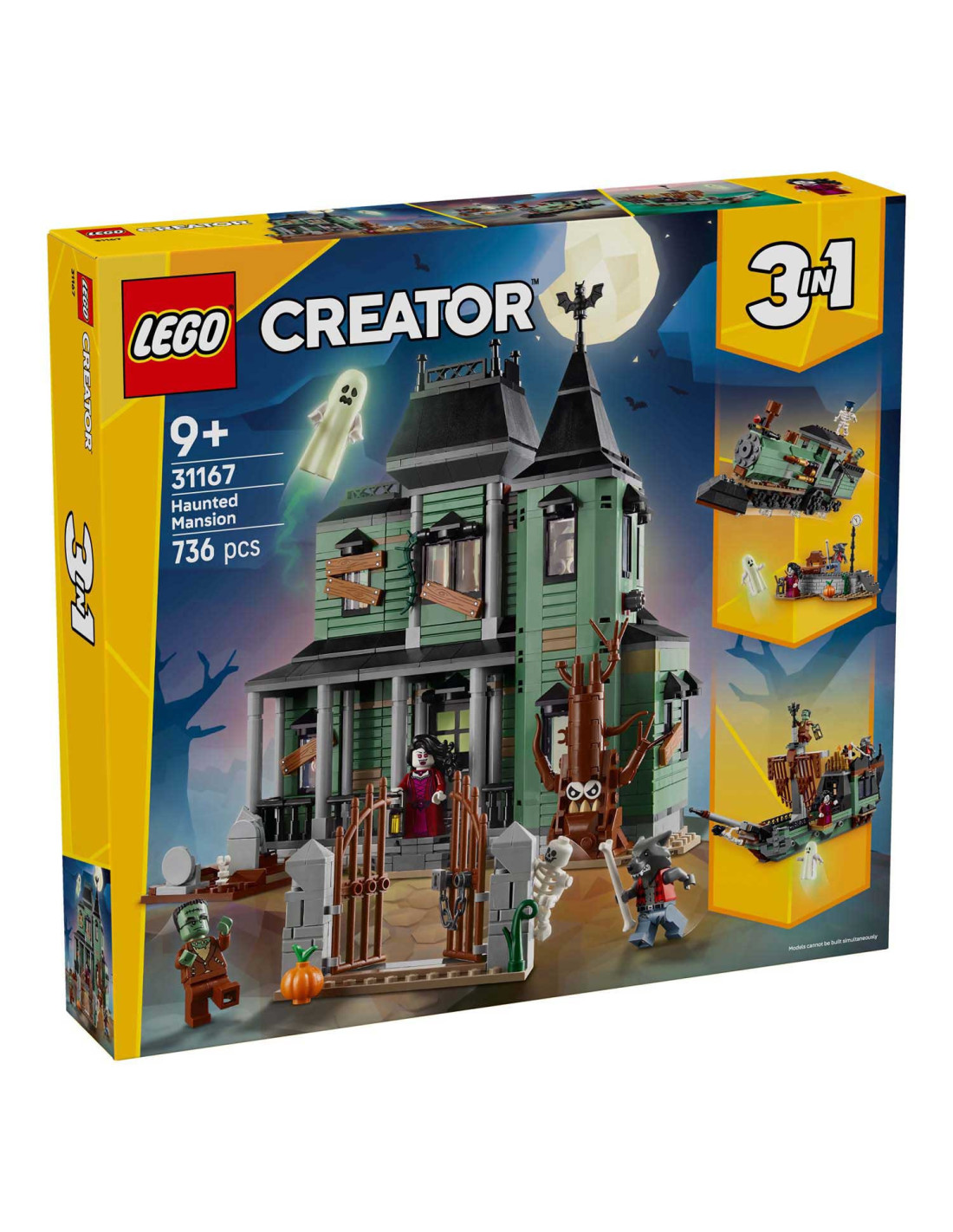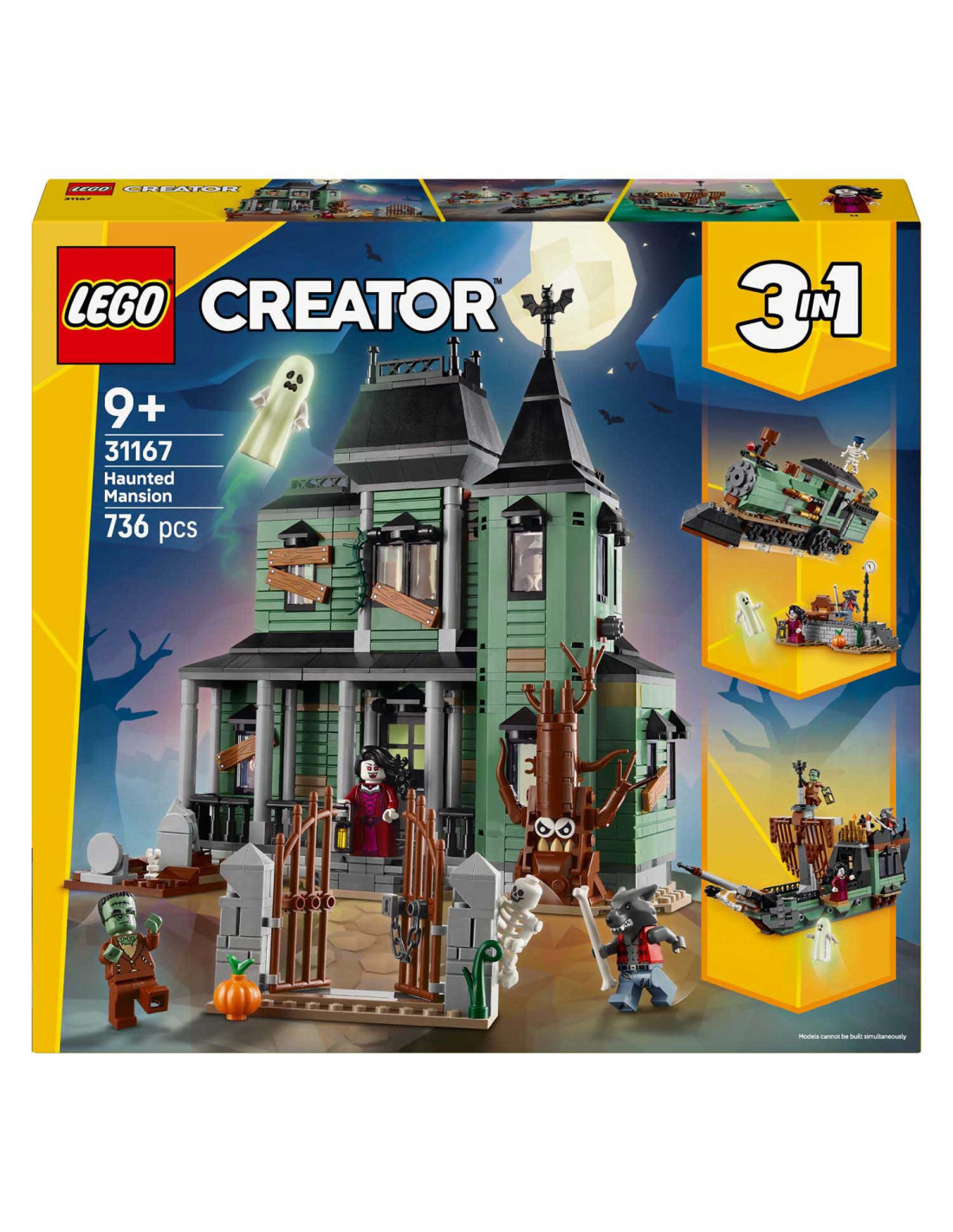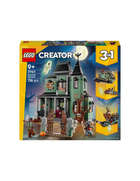 Speel griezelverhalen na met dit bouwbare LEGO® Creator 3in1 Spookhuis (31167). Het gebouw van 2 verdiepingen zit boordevol coole details en functies, waaronder een poort aan de voorkant die open kan, een kerkhof, een afneembare enge boom, een orgel en een spook dat verschijnt als je aan een wiel draait. Open het huis aan de achterkant voor nog meer speelplezier.