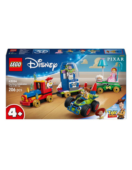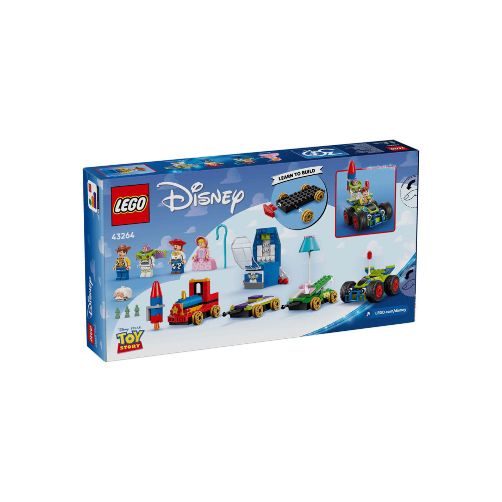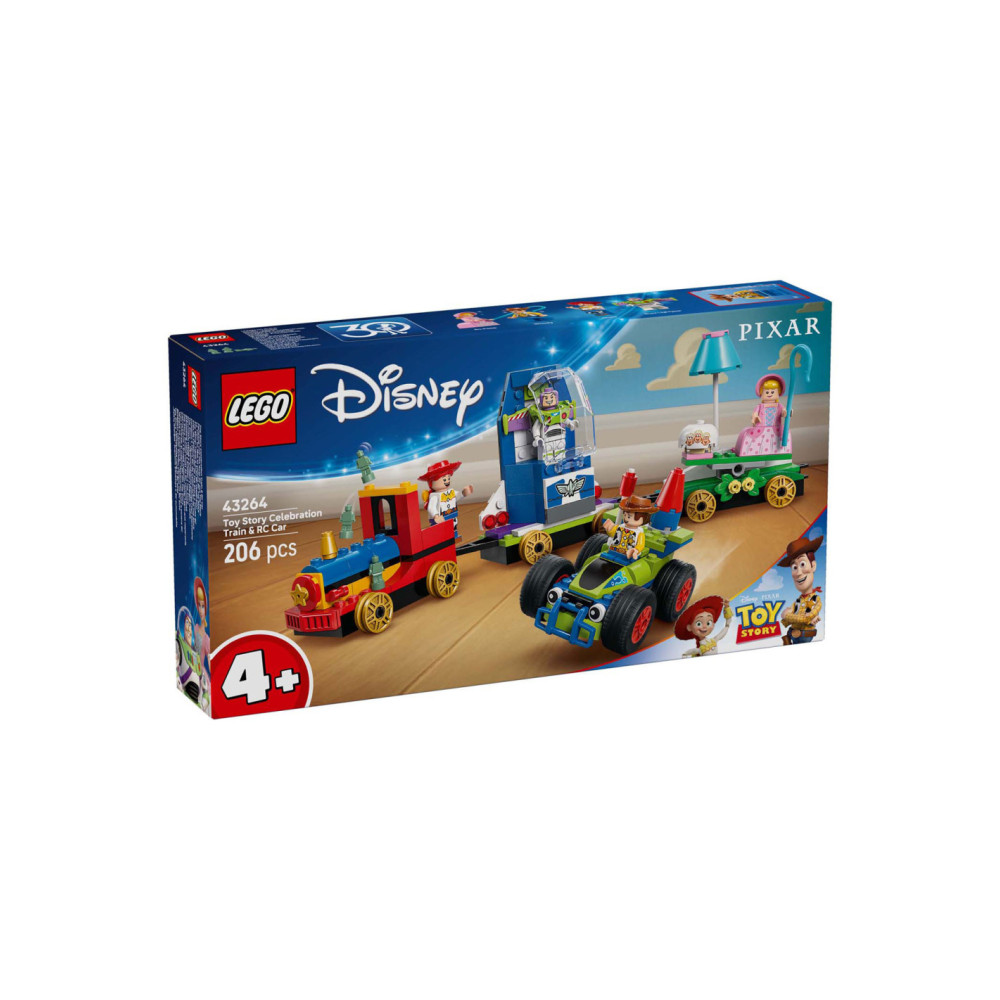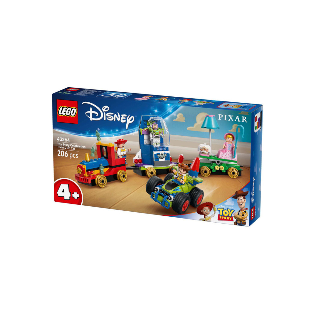 Kinderen vanaf 4 jaar die van voertuigen houden, zullen weg zijn van deze Toy Story feesttrein en RC auto (43264) LEGO® Disney bouwset. Jonge kinderen leren bouwen terwijl ze het 30-jarig bestaan van Disney en Pixar®Toy Story vieren met een locomotief in westernstijl, 2 wagons en een auto. De wagons hebben een wipwap en een ruimteschip. De bouwbare set bevat ook 4 LEGO® Disney en Pixar personages: Woody, Jessie, Bo Peep en Buzz Lightyear.