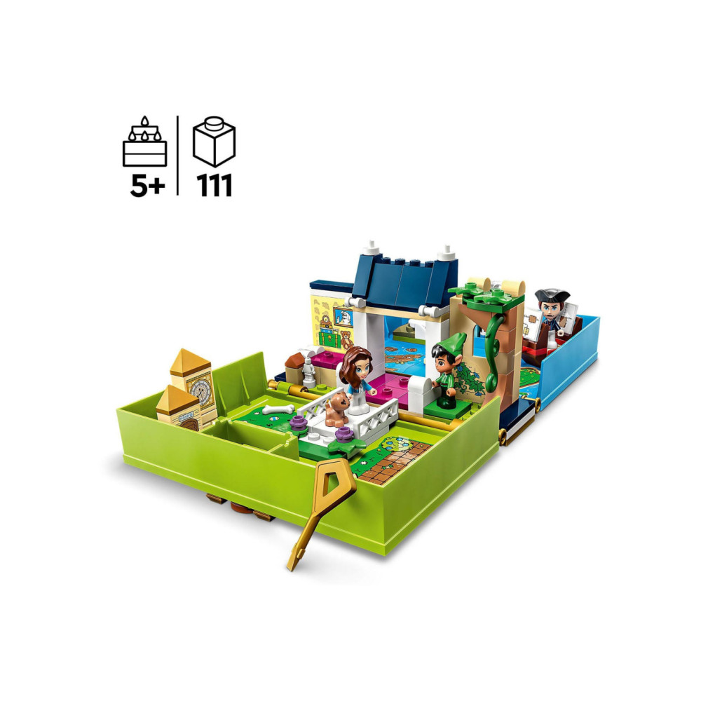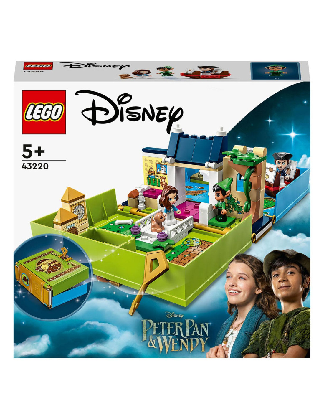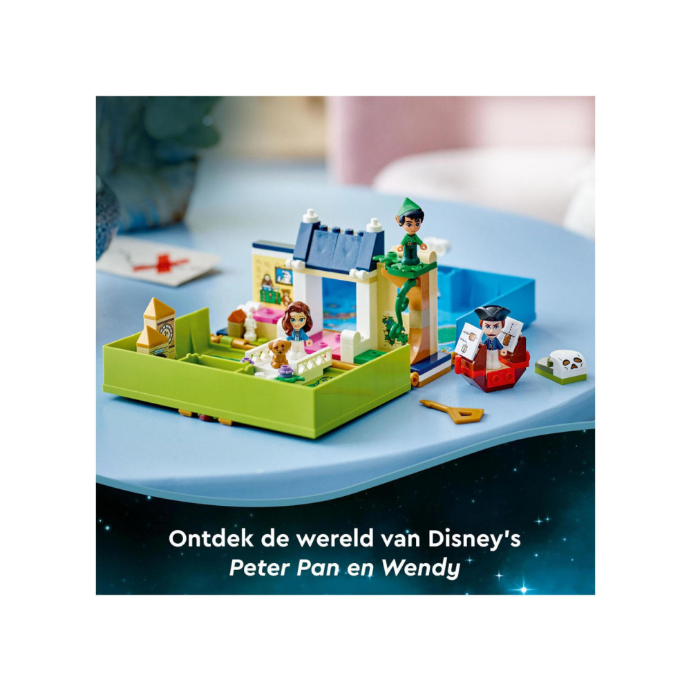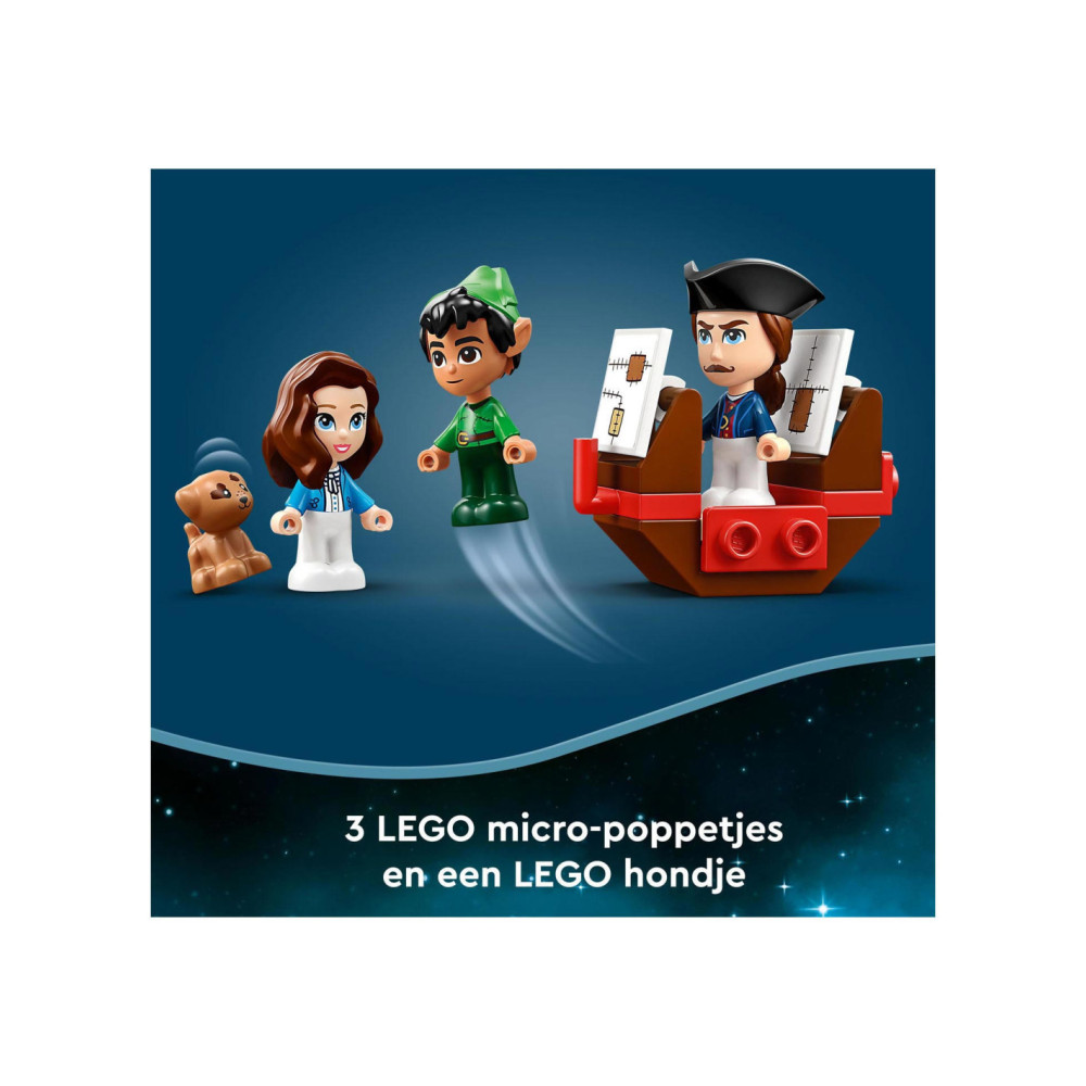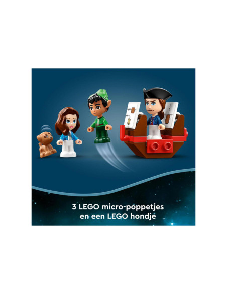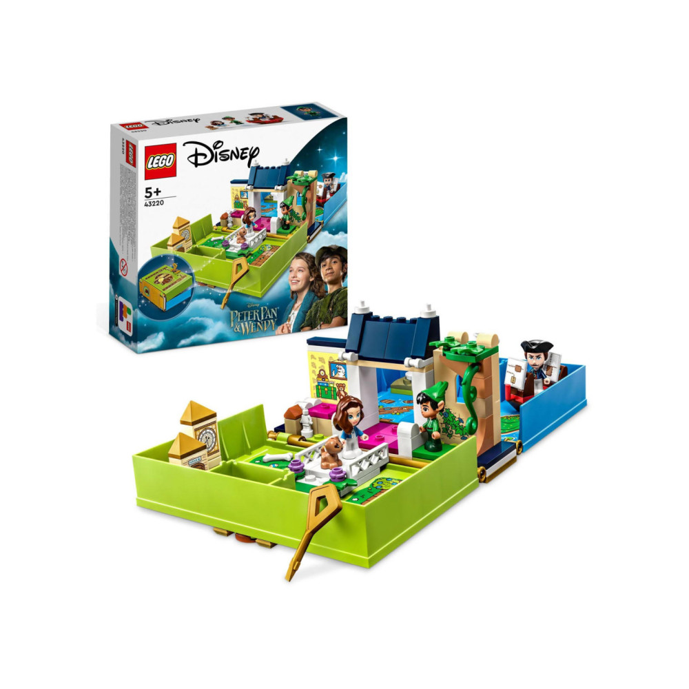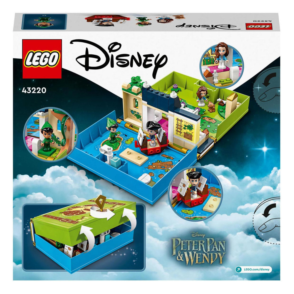 Eindeloze verhalen wachten op kleine Disney-fans in deze bouwbare LEGO Disney Peter Pan Verhalenboekavontuur (43220) speelset. Het boek is gebaseerd op de nieuwe Peter Pan & Wendy film en bevat het Darling huis met een slaapkamer, Big Ben, de schuilplaats van de Verloren Jongens, Skull Island, een piratenschip, 3 minipoppetjes, waaronder Kapitein Haak, een schattig Nana hondenfiguurtje en een sleutel voor eindeloos bouwplezier.