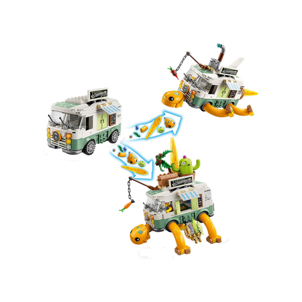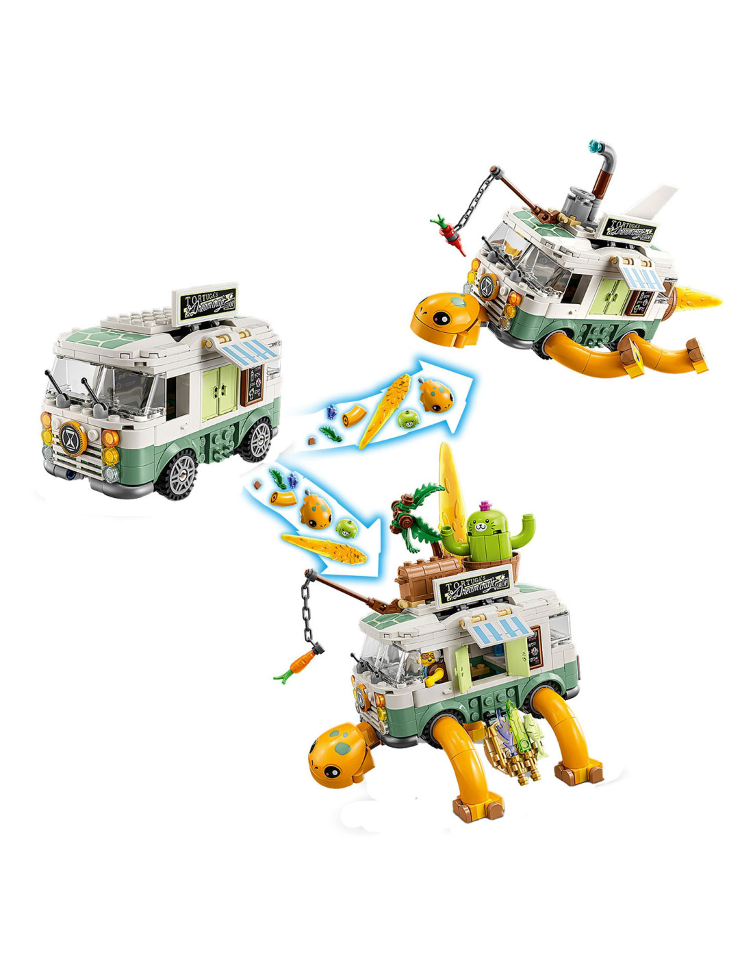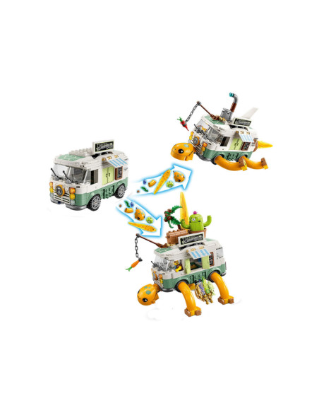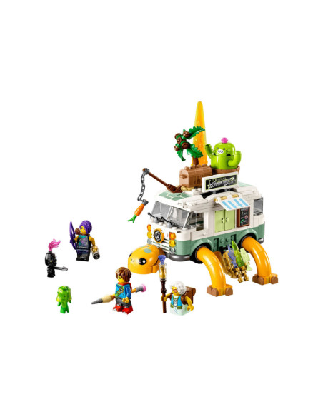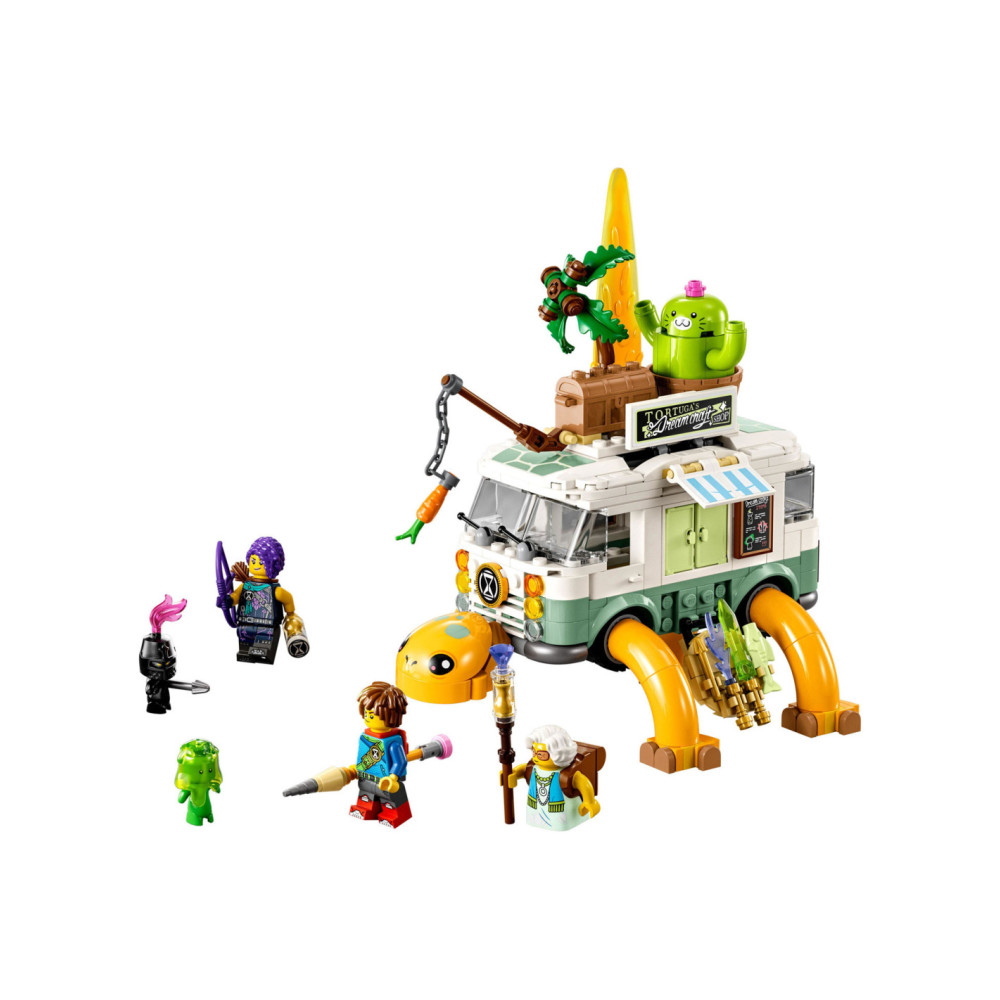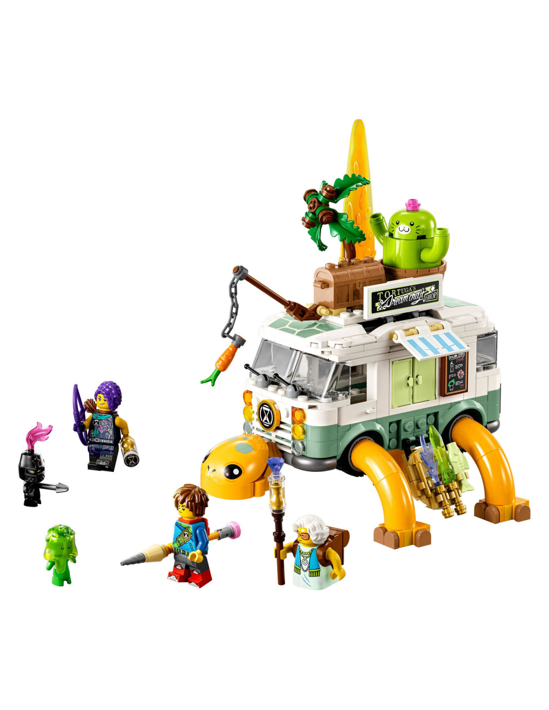 Laat kinderen van 7 jaar en ouder op avontuur gaan in de droomwereld met mevr. Castillo, Mateo en Zoey in deze LEGO DREAMZzz Mevr. Castillo's schildpadbusje (71456) bouwset. De set is gebaseerd op de spannende tv-serie DREAMZzz en biedt 2 manieren om een geweldig voertuig te bouwen.1 busje, 2 manieren om te bouwenDe wagen van mevrouw Castillo heeft beweegbare wielen en een afneembaar dak. Kinderen kunnen hem op 2 manieren aanpassen met behulp van de bouwinstructies op basis van verhalen. In de feestmodus kan het schildpadbusje worden uitgerust met een beweegbare boom, een draaiende cactus en een schatkist die open kan. In de vliegende onderzeeërmodus kunnen kinderen een raket en een bewegende periscoop toevoegen. Deze versie bevat ook een versie van de Cactuskat, die ernaast kan vliegen. Dubbel zo veel creativiteit en speelplezier dus!Fantastische minifigurenDe bouw- en speelset is inclusief minifiguren van mevrouw Castillo, Mateo en Zoey, die allemaal in het busje kunnen zitten.