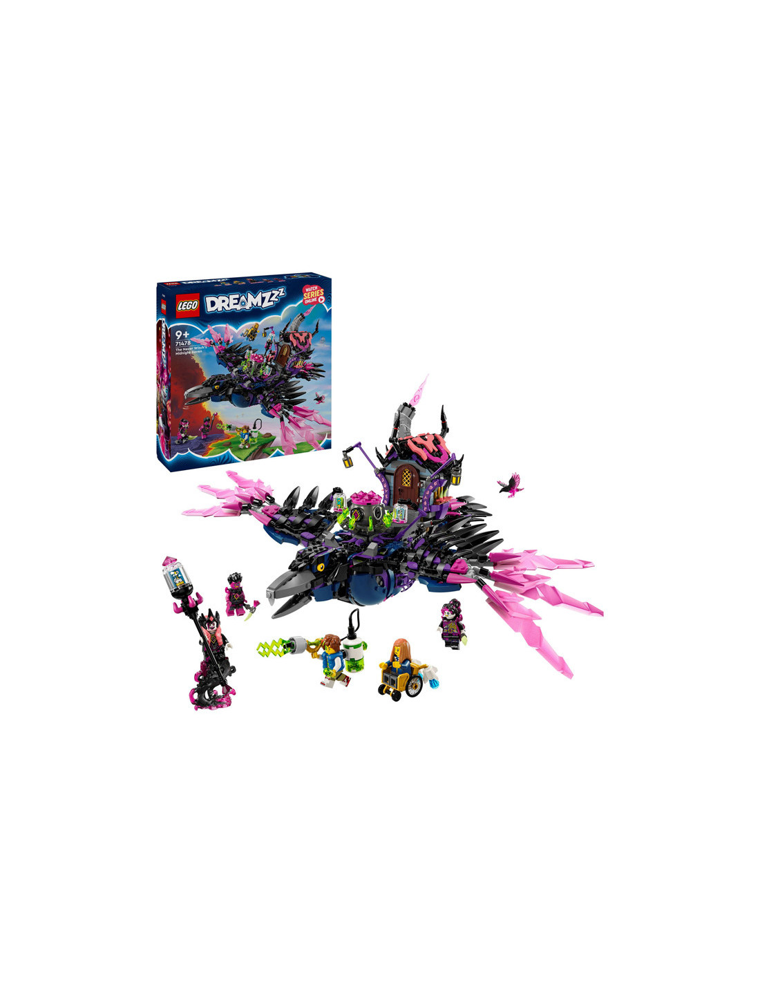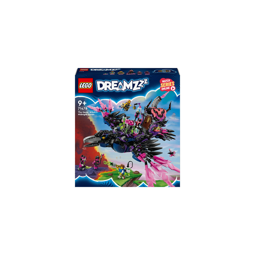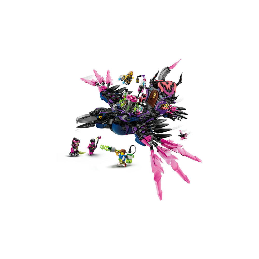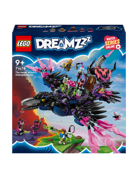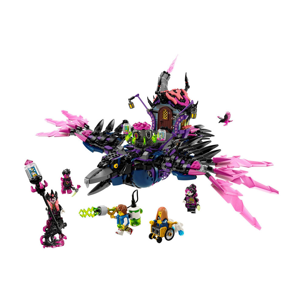 Jonge dromers zullen veel plezier beleven aan het bouwen van de Middernachtraaf van de Neder Heks voordat ze hem veranderen in een ravenhut of 3 nachtmerriewezens: een wandelend huis, een ketelspin en een gigantische raaf! Het speelgoed huis heeft een dak en deur die open kunnen, de spin heeft een beweegbare kooi en poten en de LEGO vogel heeft verstelbare vleugels en veren.