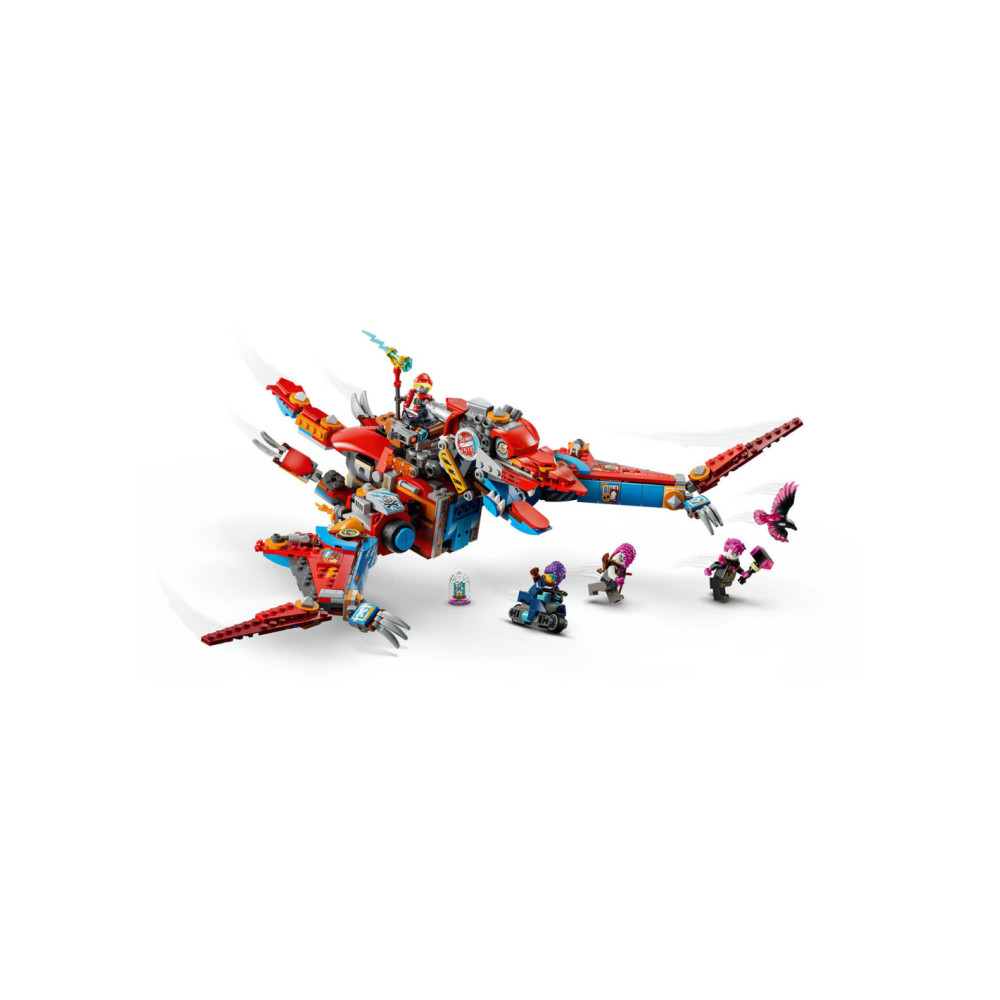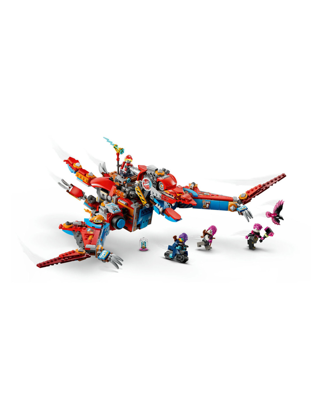 LEGO DREAMZzz personages Zoey en Cooper, hun duistere dubbelgangers Doey en Dooper en een figuur van Sneak brengen de set tot leven. Zoey heeft een boog en Cooper een hamer. Beide helden kunnen in een auto op de rug van het dinosaurusmodel zitten. Het creatieve fantasie speelgoed bevat bouwinstructies op basis van verhalen, die de fantasie van kinderen stimuleren en hen aanmoedigen om helemaal op te gaan in de actie. Een fantastisch cadeau voor kinderen die van speelgoed dieren, de LEGO DREAMZzz personages en rollenspellen houden.