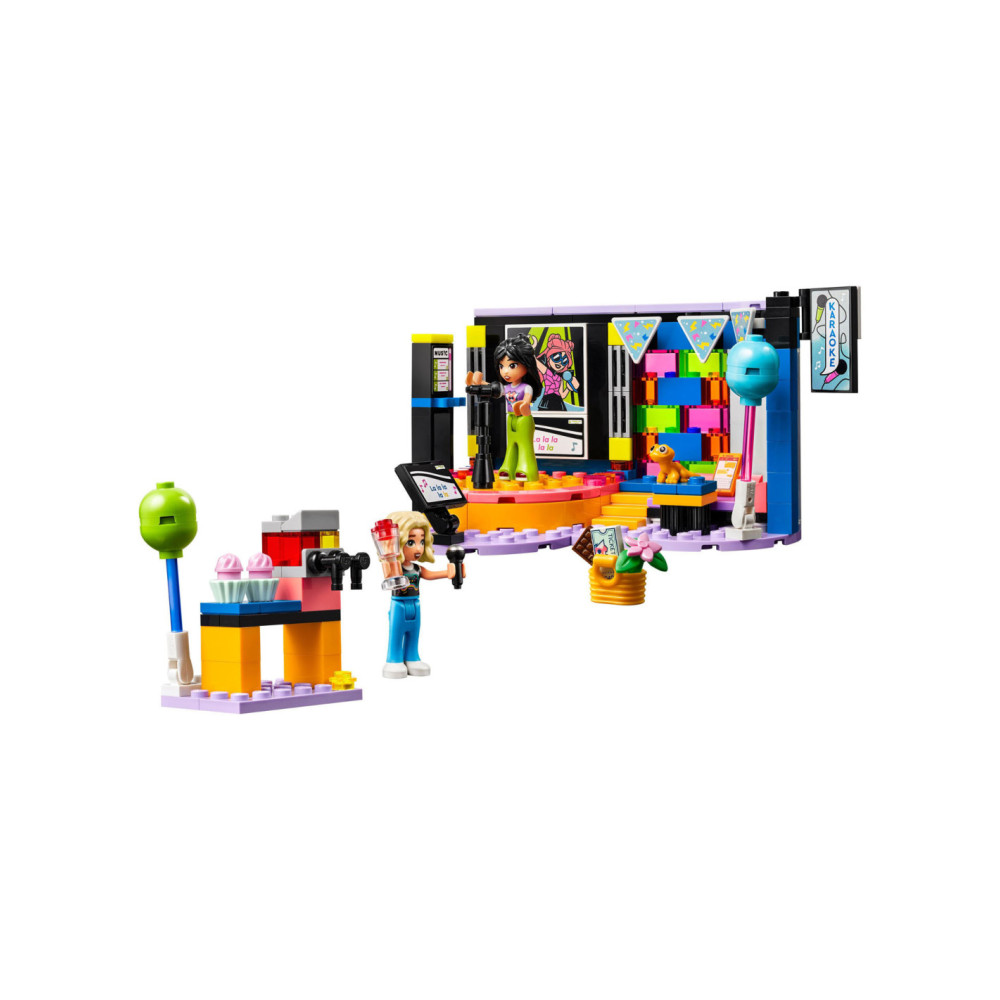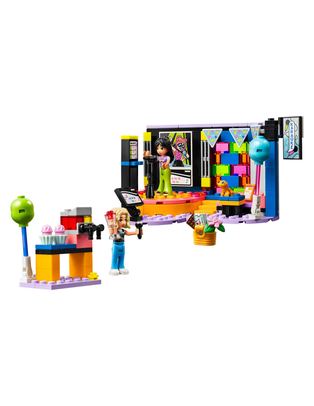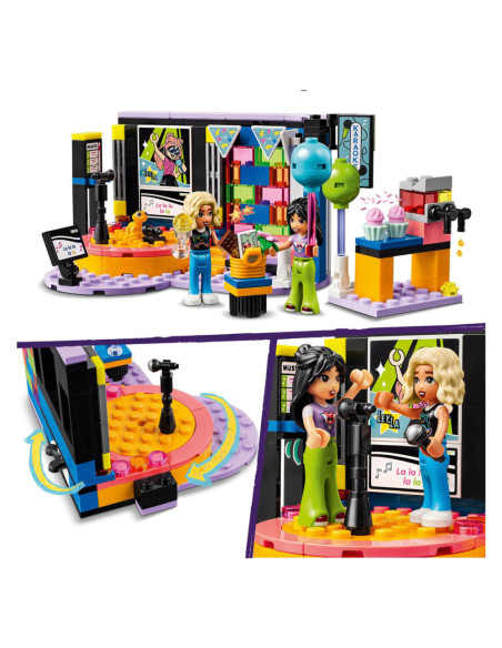 Dit is een leuk cadeau voor meisjes en jongens vanaf 6 jaar die van zingen en fantasiespel houden. De LEGO Friends Karaoke muziekfeestje (42610) set bevat een draaibaar podium, microfoons, een relaxruimte en een slushiemachine. Inclusief 2 LEGO Friends personages met extra gezichten om ze te laten zingen, een gekko en veel accessoires.Met deze bouwset voor kinderen kunnen kinderen het verhaal van Lianns karaoke-verjaardagsfeestje naspelen. Ze kunnen het podium laten draaien met behulp van het tandwiel en doen alsof de LEGO Friends mini poppetjes zingen met behulp van de microfoons en extra gezichten. Als het tijd is om pauze te nemen, genieten de vriendinnen van een slushie en cupcakes. Nova heeft zelfs een leuk verjaardagscadeau voor Liann meegenomen, dat kinderen kunnen gebruiken in het fantasierijke spel.Ontdek meer speelgoed voor kinderen in het LEGO Friends universum met veel mogelijkheden voor het vertellen van verhalen waarin kinderen avonturen uit het echte leven naspelen. Een leuk cadeau voor meisjes en jongens die van bouwen, kinderfeestjes en rollenspellen houden.Afmetingen: het karaoketafereel in deze set is ca. 8 cm hoog, 16 cm breed en 10 cm diep.Bevat 196 onderdelen.