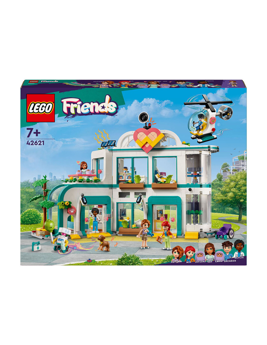 Kinderen die van medische rollenspellen houden, kunnen van alles ontdekken in deze LEGO Friends Heartlake City ziekenhuis (42621) speelset. Deze LEGO ziekenhuis set is een leuk cadeau voor meisjes en jongens vanaf 7 jaar. Het gebouw beschikt over verschillende ruimtes en afdelingen, waaronder een onderzoekskamer, kraamafdeling, röntgenkamer en kantine.Er zijn allerlei verhalen te bedenken nu LEGO Friends Autumn er is om een nieuwe armprothese aan te brengen. Kinderen zullen het geweldig vinden om bezoekers mee te nemen in de werkende lift en kennis te maken met de pasgeboren baby's op de kraamafdeling. Vervolgens kunnen ze de onderzoeksruimte en de kantine voor de medewerkers ontdekken. Accessoires zijn onder andere een röntgenscanner, medische apparatuur en cadeaus voor de patiënten. Er is ook een speelgoed helikopter en een helikopterplatform, plus een robot assistent en een therapiehond.Deze LEGO Friends set voor meisjes en jongens is een creatief cadeau voor kinderen en bevat diverse accessoires, 5 LEGO Friends mini poppetjes, 2 babyfiguren, een speelgoed robot en een speelgoed hond.Afmetingen: deze set is ca. 25 cm hoog, 35 cm breed en 18 cm diep.Bevat 1045 onderdelen.