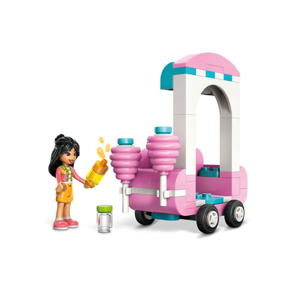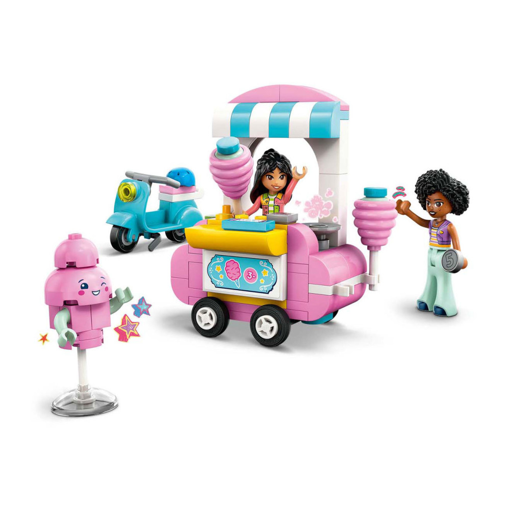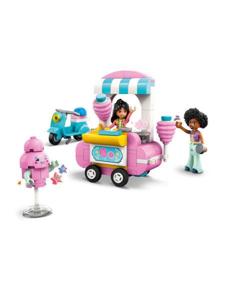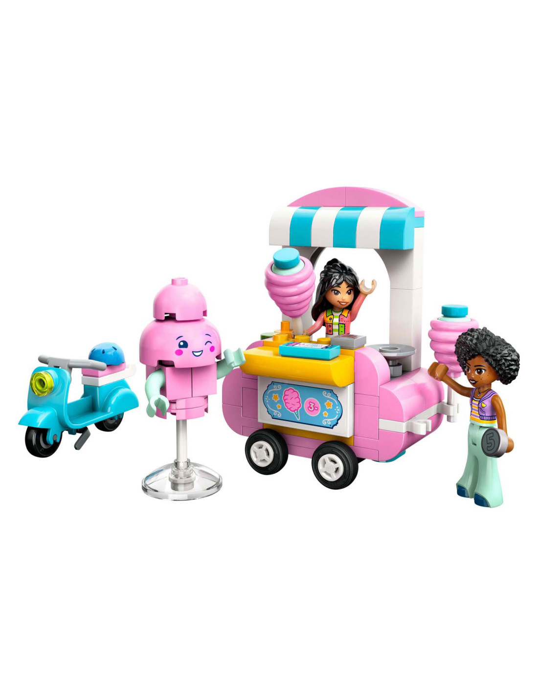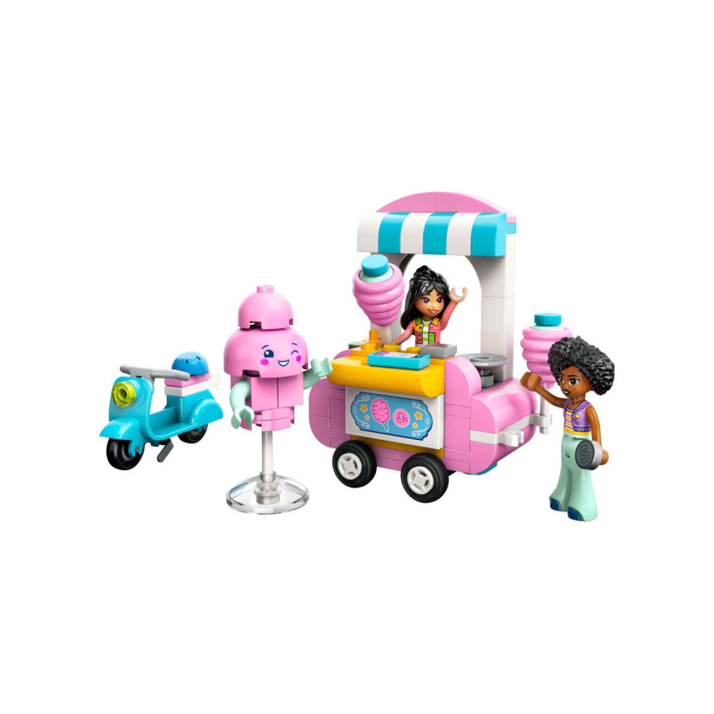 Meisjes, jongens en kleine bouwers die van creatief spelen houden, kunnen hun eigen verhalen verzinnen met deze set. Liann en Jamila brengen graag samen tijd door bij de suikerspinkraam. Het LEGO voertuig kan de kraam voorttrekken en er zijn een kom en toppings om de suikerspinnen te maken. Er is ook een kassa en geld, zodat kinderen verschillende interacties met klanten kunnen naspelen.