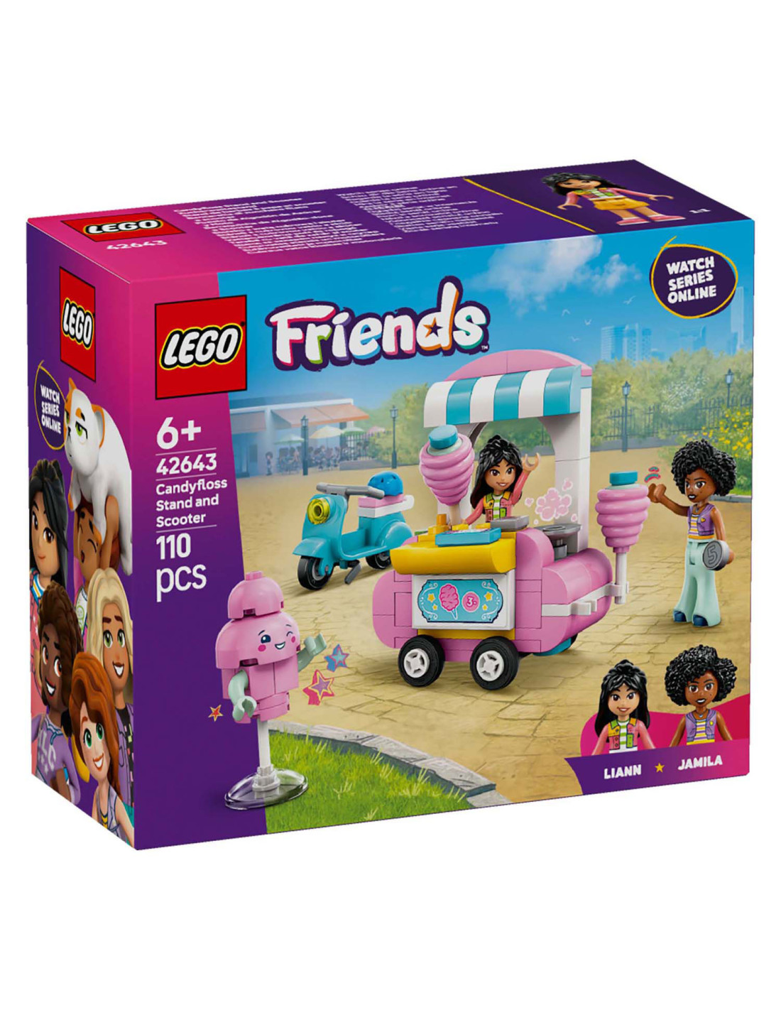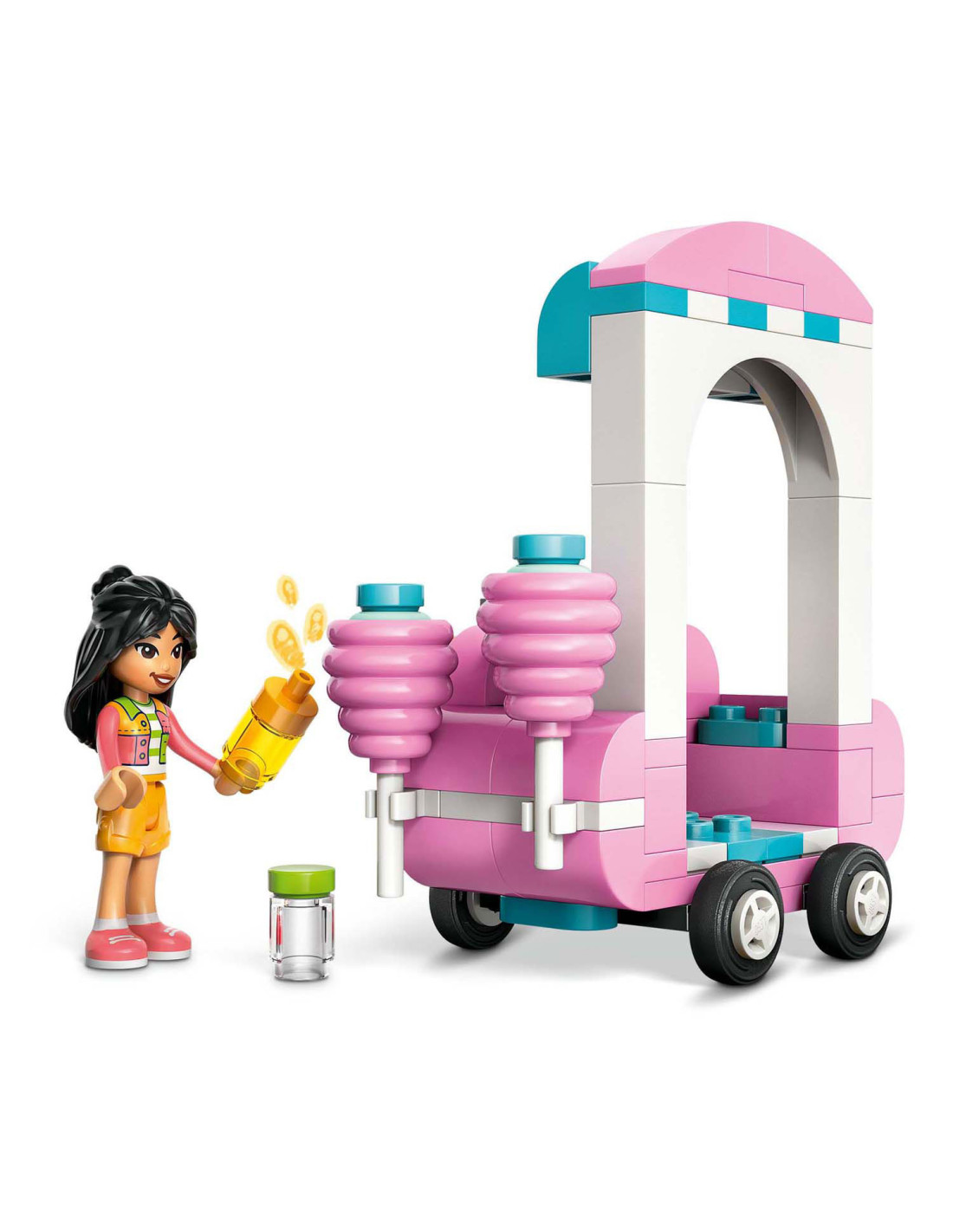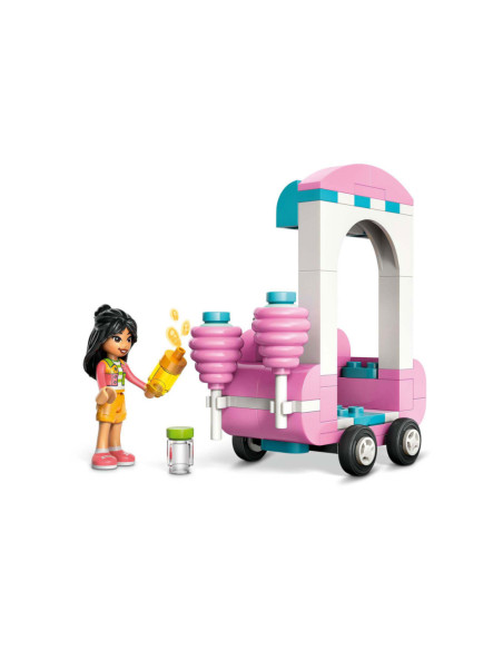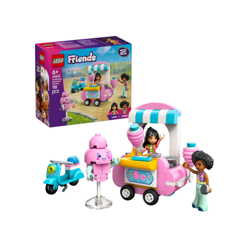 Meisjes, jongens en kleine bouwers die van creatief spelen houden, kunnen hun eigen verhalen verzinnen met deze set. Liann en Jamila brengen graag samen tijd door bij de suikerspinkraam. Het LEGO voertuig kan de kraam voorttrekken en er zijn een kom en toppings om de suikerspinnen te maken. Er is ook een kassa en geld, zodat kinderen verschillende interacties met klanten kunnen naspelen.