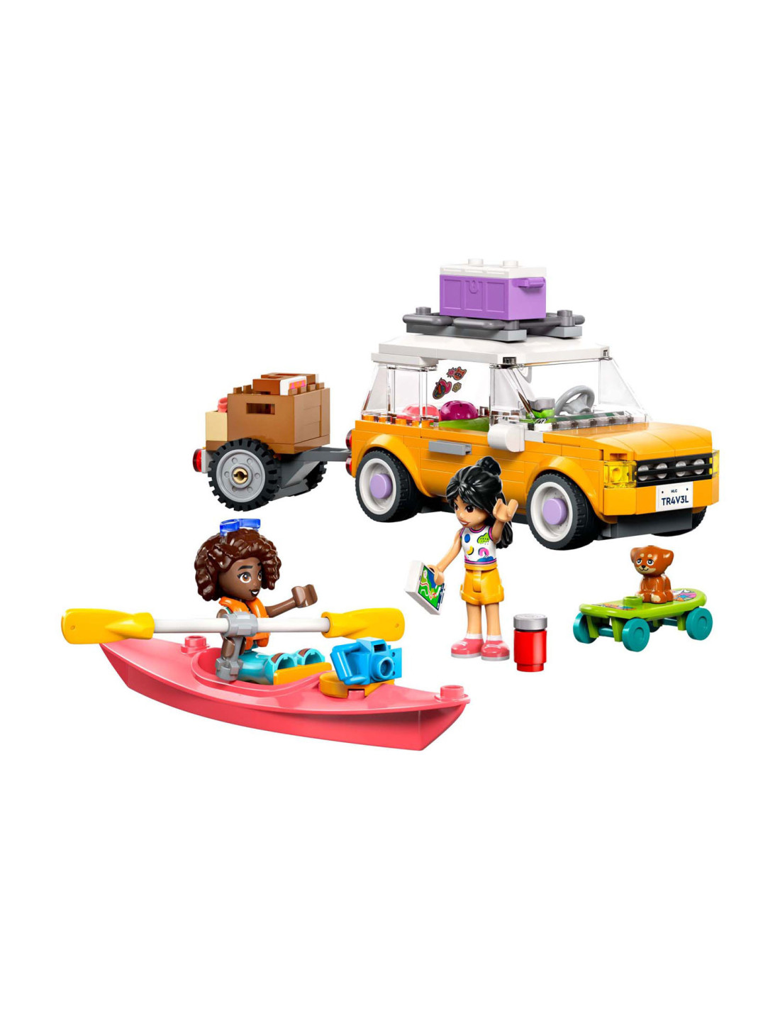 Neem kinderen mee op een creatieve reis waarin ze Liann en Aliya helpen de auto en aanhanger in te pakken met alles wat ze nodig hebben. De vrienden zitten voorin en er is een zitplaats voor Aira de hond achter in de auto. Inclusief accessoires waaronder een kajak, 2 helmen, een skateboard, skeelers, 2 stoelen en een koelbox met een broodje, donut, koekje, kersen en een traktatie voor de hond. De koelbox doet ook dienst als picknicktafel.