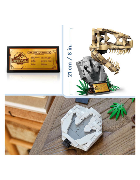 Inspireer kinderen of beginnende paleontologen vanaf 9 jaar met dit LEGO Jurassic World Dinosaurusfossielen: T. rex schedel (76964) speelgoed voor jongens en meisjes. Dit is de eerste Jurassic World set die is gemaakt om neer te zetten: een schedel met kaak die open en dicht kan, een standaard met informatiebordje, een verborgen stuk 'amber' aan de achterkant van het model en een 'fossiele' voetafdruk.De LEGO Builder app begeleidt jonge dinosaurusfans op een intuïtief bouwavontuur. Met de app kunnen ze inzoomen en modellen draaien in 3D, sets opslaan en hun voortgang bijhouden. Misschien zullen ze iets van de opwinding voelen die paleontologen ervaren terwijl ze de dinosaurus figuur bouwen.Er zijn diverse LEGO Jurassic World sets voor kinderen, of ze nu klassieke scènes uit de films en animatieserie willen naspelen of de indrukwekkende modellen willen bouwen en neerzetten om te laten zien waar ze zo dol op zijn. Deze speelgoed dinosaurus schedel set is een leuk cadeau voor jongens en meisjes vanaf 9 jaar.Afmetingen: deze set bevat een T. rex schedel met een standaard die ca. 21 cm hoog, 18 cm breed en 16 cm diep is.Bevat 577 onderdelen.