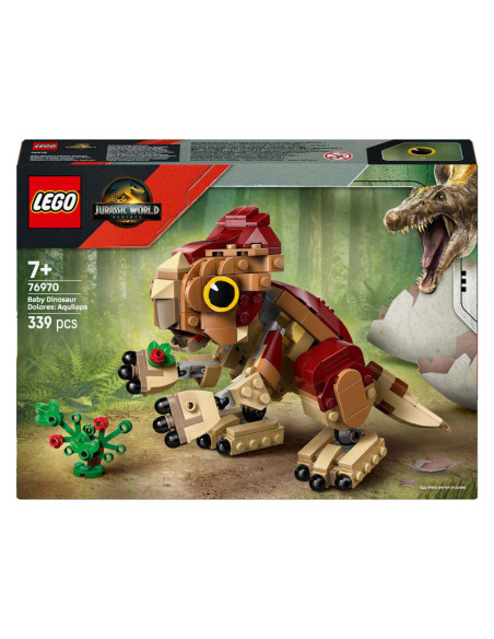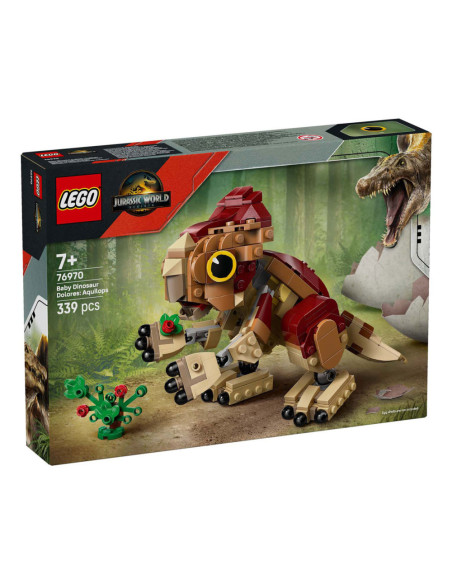 Kinderen en fans vanaf 7 jaar kunnen hun dinosaurusverzameling beginnen of aanvullen met deze leuke Babydinosaurus Dolores: Aquilops (76970) LEGO® Jurassic World speelgoedset. Deze bouwset om mee te spelen en neer te zetten bestaat uit een bouwbare babydinosaurus Aquilops figuur voor kinderen en een plant met bloemen. Het model van baby Dolores heeft een beweegbare kop en poten die in verschillende houdingen kunnen worden gezet, een beweegbare staart en een kaak die open kan om te doen alsof ze van de bloemen eet. Na het spelen ziet dit schattige dinosaurusmodel er ook mooi uit op een plank of bureau.