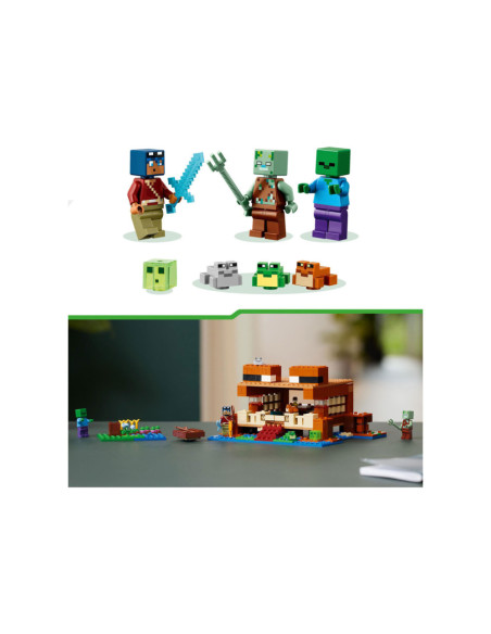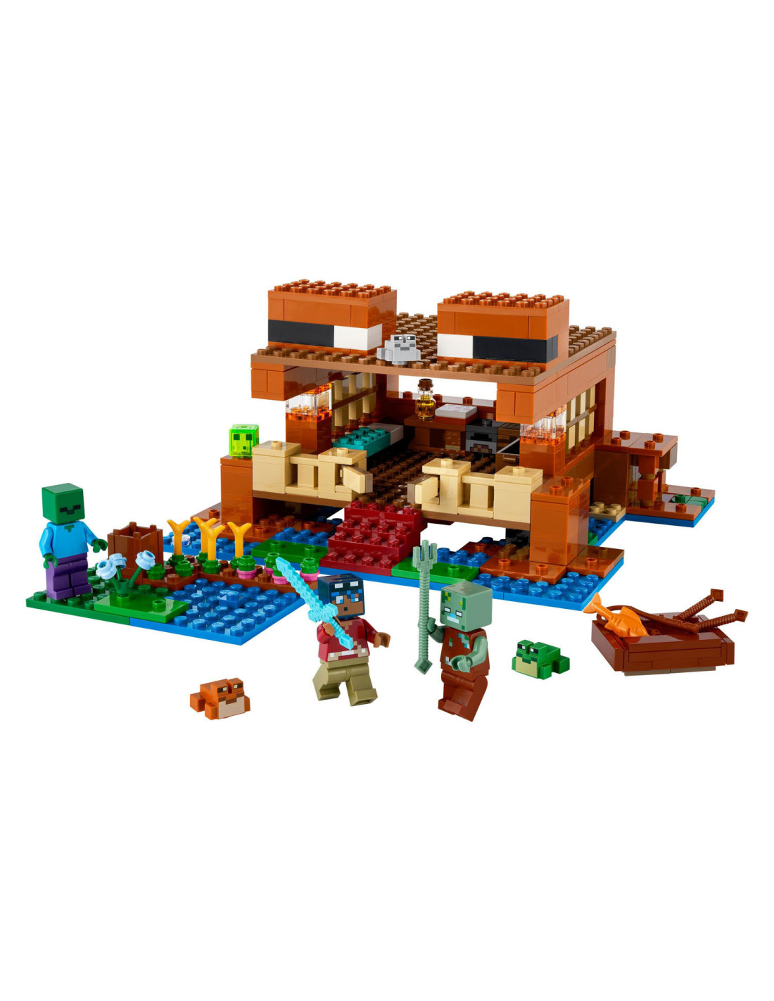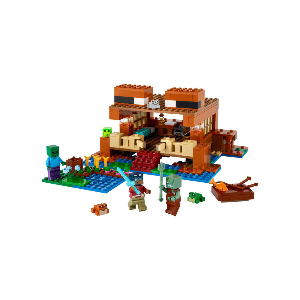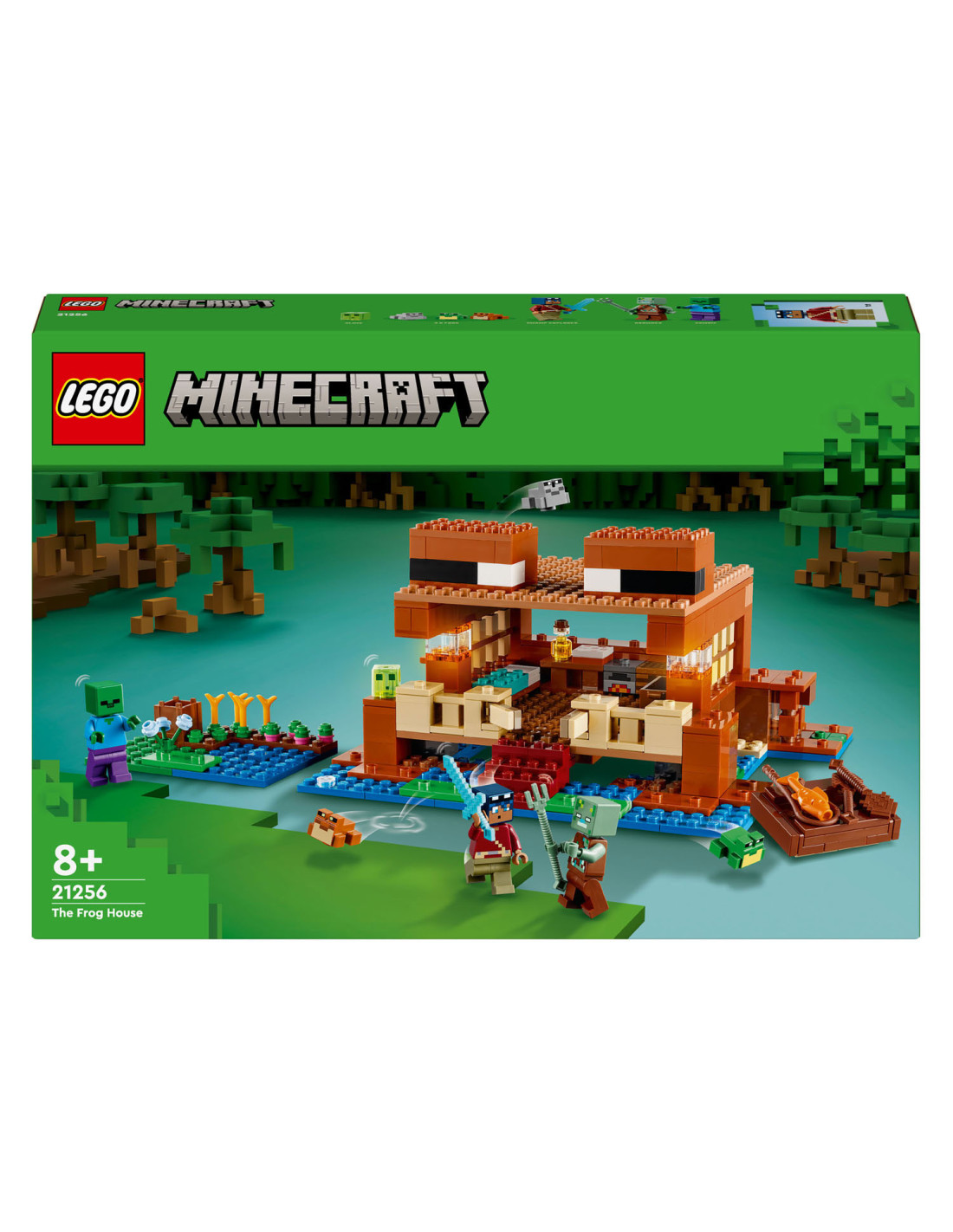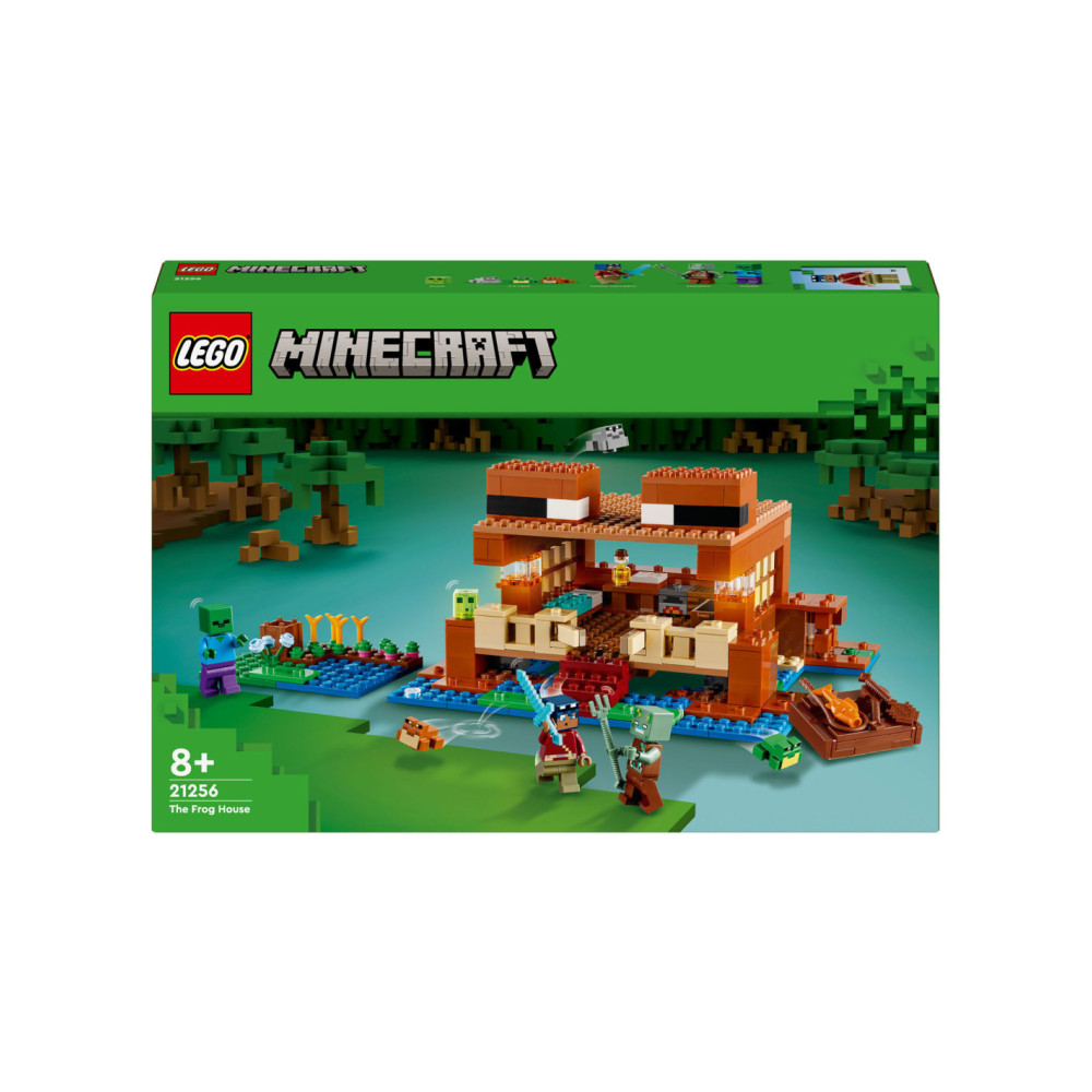 Dit LEGO Minecraft speelgoed huis heeft de vorm van een kikker en wordt geleverd met Minecraft figuren van populaire personages uit de game. LEGO Minecraft Het kikkerhuis (21256) is een leuke en praktische set voor kinderen!Het kikkerhuis zit vol authentieke Minecraft details: een bed, tafel, werkbank, oven, kist, taart en honing en een afneembaar dak voor gemakkelijke toegang. Buiten is een boerderij waar spelers bieten, tarwe en bloemen kunnen oogsten en een meer waar kinderen een hengel en een donker eikenhouten speelgoed boot met roeispanen kunnen gebruiken. Er zijn 3 soorten kikker dieren figuren (groen, grijs en bruin) en een slijm dat, zoals spelers zullen weten, een speciale interactie heeft met kikkers.Deze veelzijdige LEGO Minecraft set bevat een held, een zombie en een drenkeling met drietand voor urenlang plezier met rollenspellen. Jonge bouwers zullen ook dol zijn op de LEGO Builder app, waarmee ze kunnen inzoomen, modellen kunnen draaien in 3D en hun voortgang kunnen bijhouden. Een leuk cadeau voor kinderen van 8 jaar en ouder.Afmetingen: het huis is ca. 11 cm hoog, 22 cm breed en 17 cm diep.Bevat 400 onderdelen.