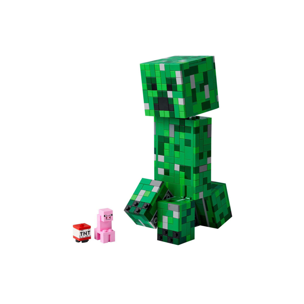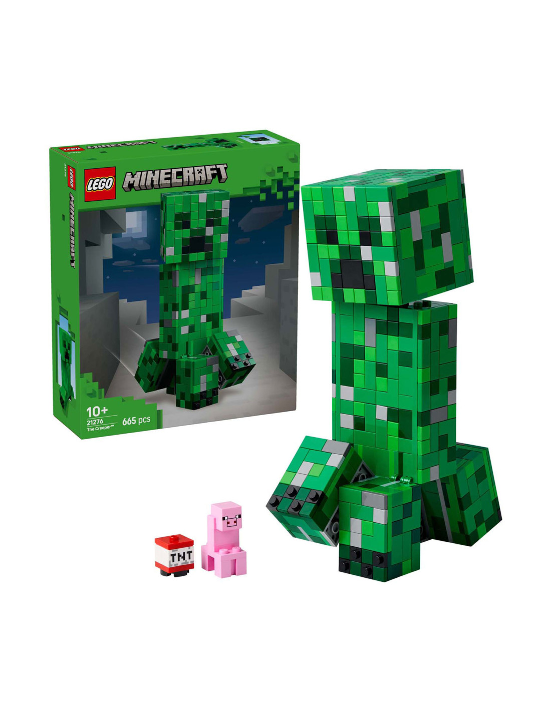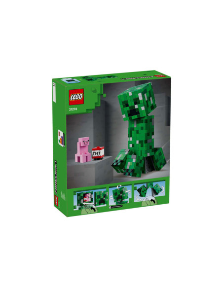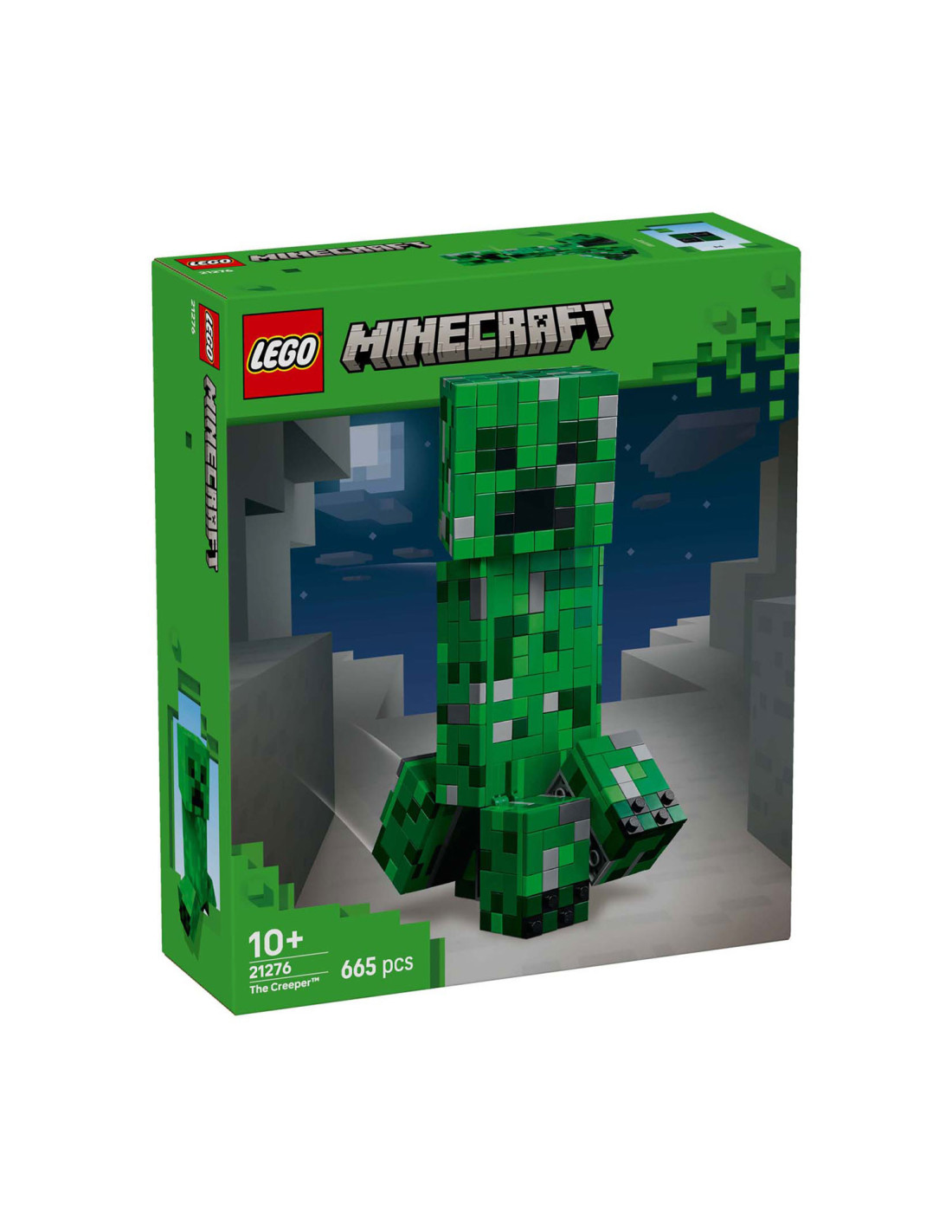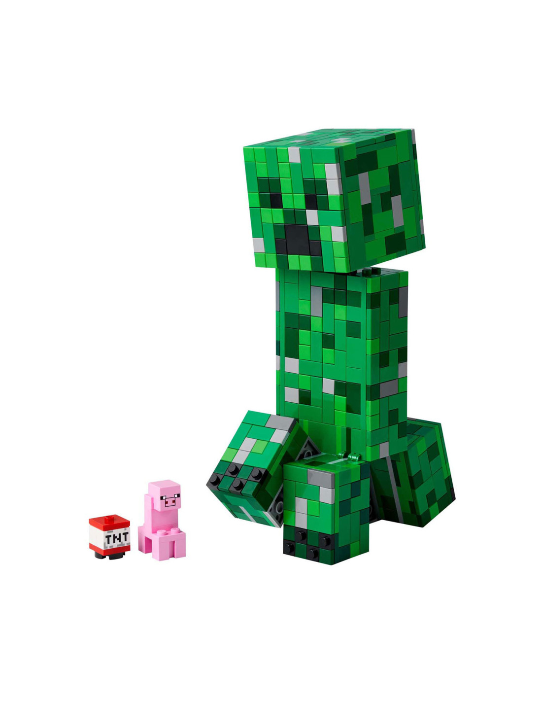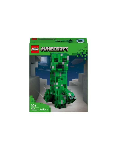 Deze bouwbare speelgoedversie van de bekende Creeper uit Minecraft is ca. 21 cm hoog. Het model heeft 4 beweegbare benen en een verstelbaar hoofd dat van links naar rechts kan bewegen en op en neer kan kantelen. De voorkant van het hoofd van de LEGO Minecraft Creeper figuur kan worden losgemaakt om een binnenruimte te onthullen met daarin een minimodel van de allereerste Creeper en een TNT-element. Voor digitaal plezier kunnen bouwers de intuïtieve LEGO Builder app gebruiken om in te zoomen, modellen in 3D te draaien en hun voortgang bij te houden. Bevat 665 onderdelen.
