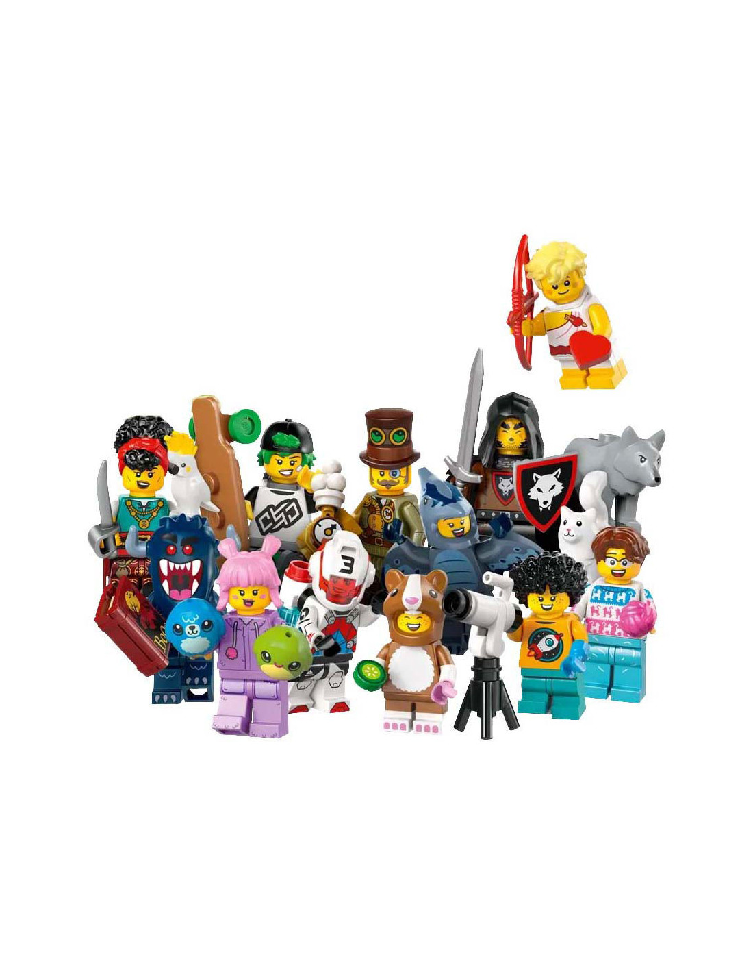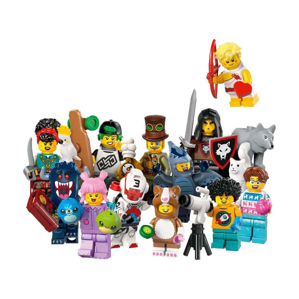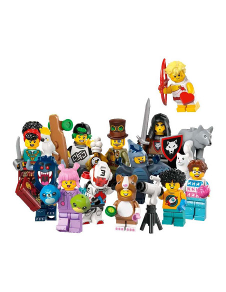 In elk doosje vind je 1 willekeurige LEGO minifiguur van de in totaal 12 personages om te verzamelen: wolventemmer, piratenkwartiermeester, steampunkuitvinder, fan in pterodactyluskostuum, boeman, jetpackracer, kattenliefhebber, longboarder, astronomiekind, cupido, fan in hamsterkostuum en knuffelverzamelaar.