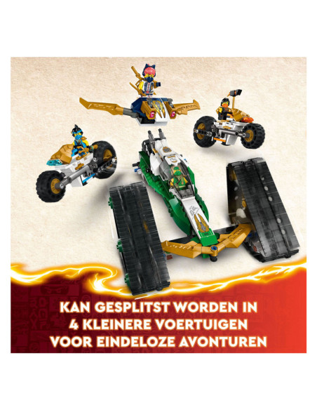 4-in-1 speelgoedvoertuig voor kinderen - jongens en meisjes vanaf 9 jaar kunnen confrontaties uit seizoen 2 van de tv-serie NINJAGO® Dragons Rising naspelen met het Ninjateam combivoertuig avonturenspeelgoed