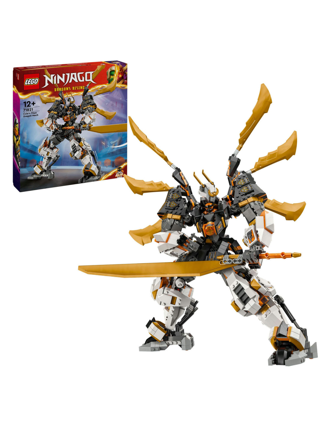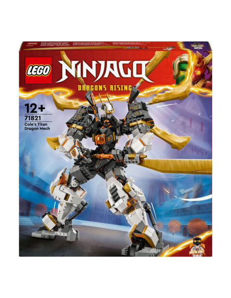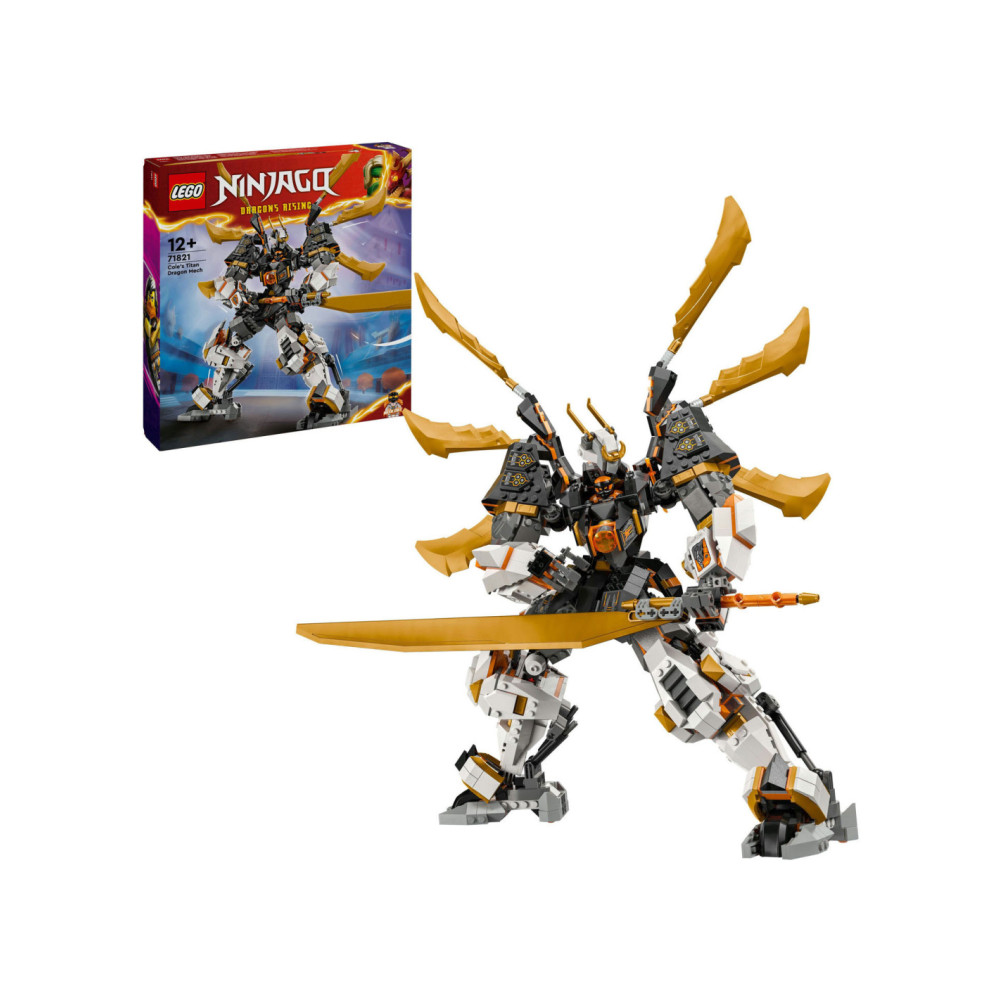 Met Cole's reusachtige drakenmecha (71821) kunnen jongens en meisjes vanaf 12 jaar actiescènes naspelen uit seizoen 2 van de tv-serie NINJAGO® Dragons Rising. Dit is de grootste NINJAGO mecha ooit! Het model heeft verstelbare armen, benen, hoofd, lichaam, draaipunten en gewrichten zodat kinderen hem in allerlei houdingen kunnen plaatsen, plus verstelbare vleugels en een groot zwaard.