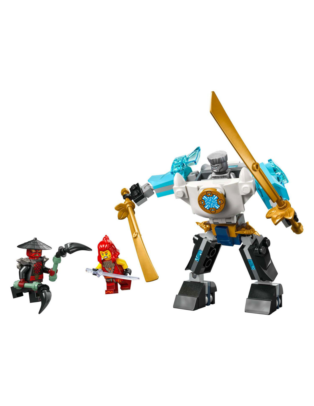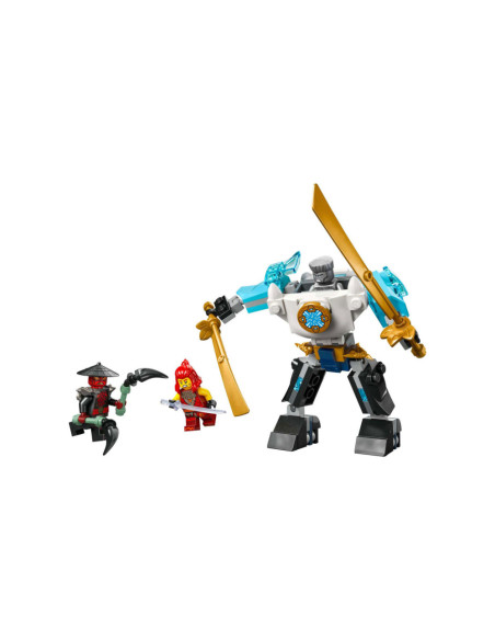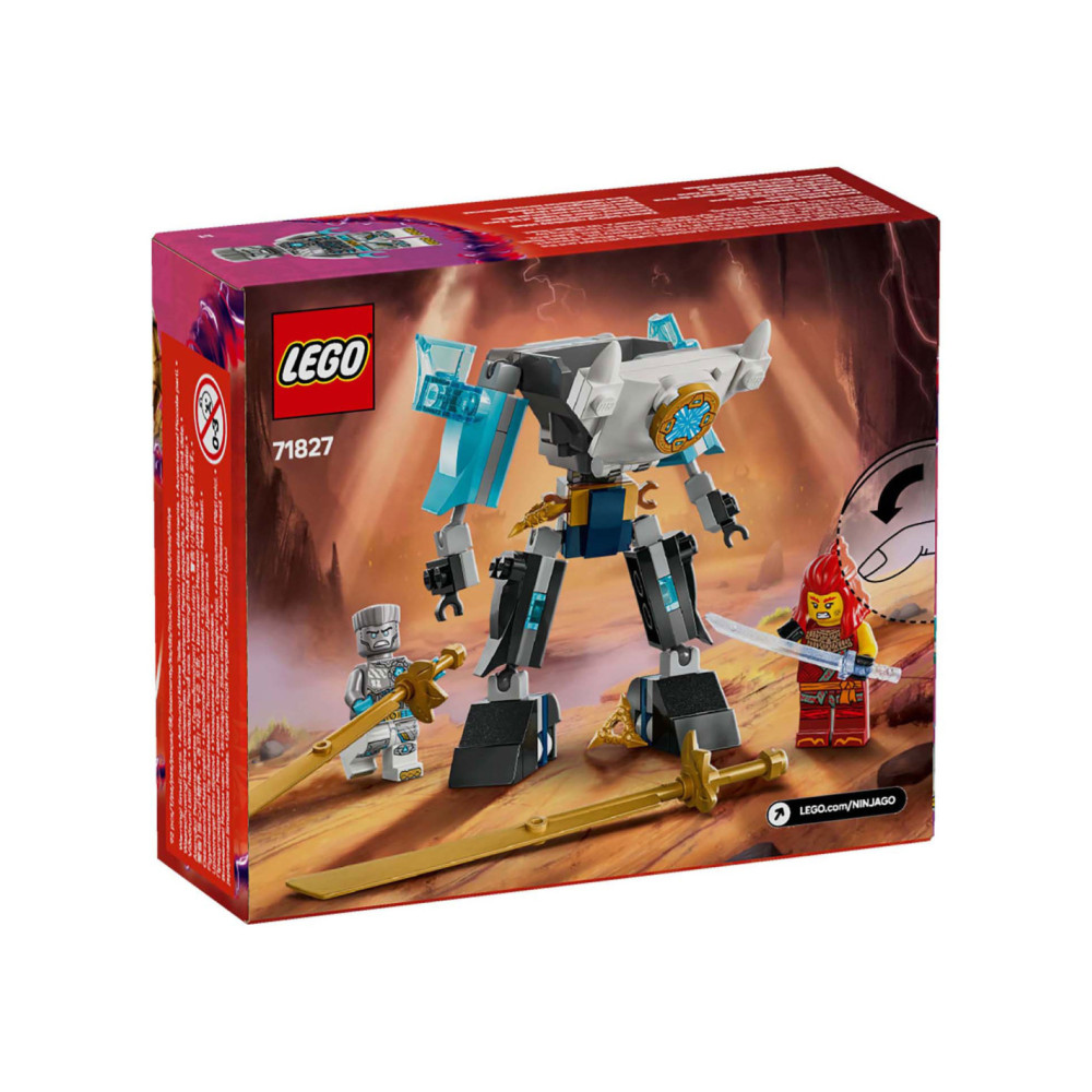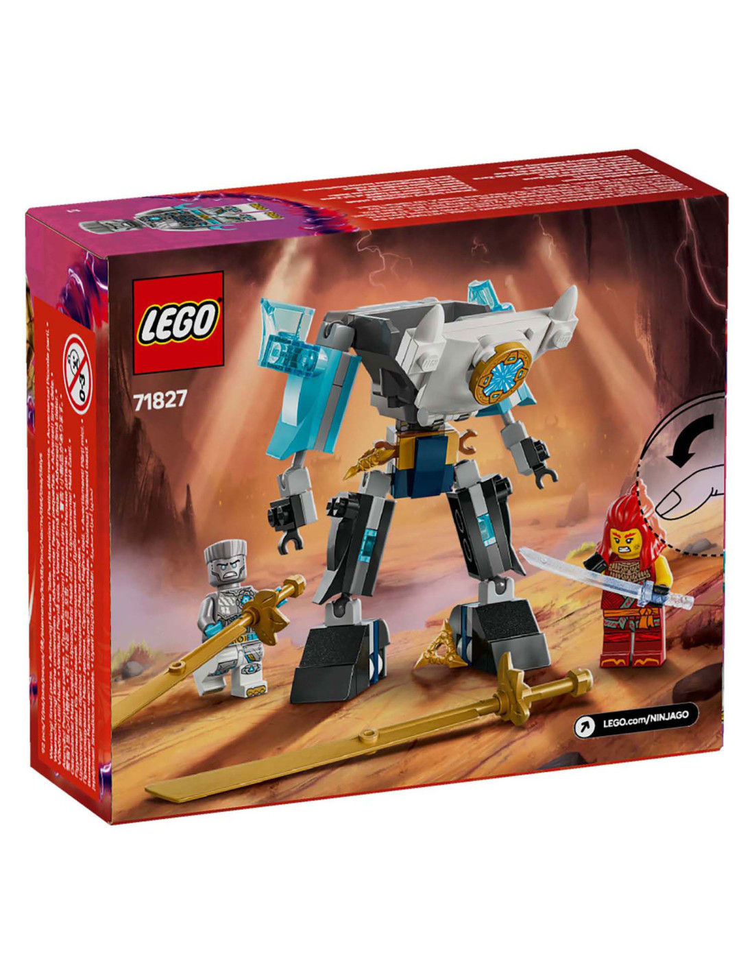 Met de speelgoedset LEGO® NINJAGO® Zane's strijdmecha (71827) kunnen jongens en meisjes vanaf 6 jaar spannende actie naspelen uit seizoen 3 van de tv-serie NINJAGO De Drakenstrijd. Deze bouwset voor kinderen bestaat uit een NINJAGO mecha met verstelbare armen, benen en handen, een bovenlichaam dat 360 graden kan draaien, een borstkas die open kan om een minifiguur in te plaatsen en 2 grote zwaarden.Deze LEGO speelset bevat 3 minifiguren van NINJAGO personages: Zane met 2 shuriken, Wyldfyre met een kristallen katana en Drix, de Meester van Zwermen van de Verboden Vijf, met 2 sikkels zodat kinderen kunnen genieten van urenlange rollenspelavonturen in de NINJAGO wereld.Het LEGO NINJAGO assortiment met bouwbaar actiespeelgoed omvat mecha, draken en tempels waarmee fans de actie kunnen naspelen. Elke ninjaspeelset kan in elkaar worden gezet met behulp van de LEGO Builder app, die jou en je kind begeleidt op een eenvoudig en intuïtief bouwavontuur.