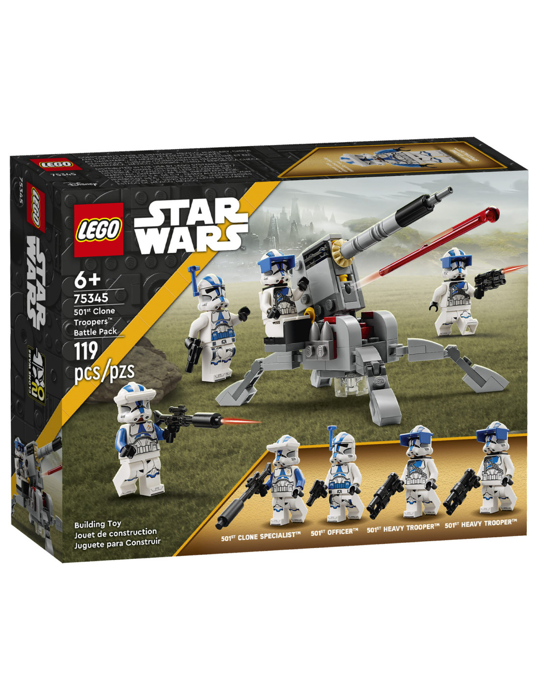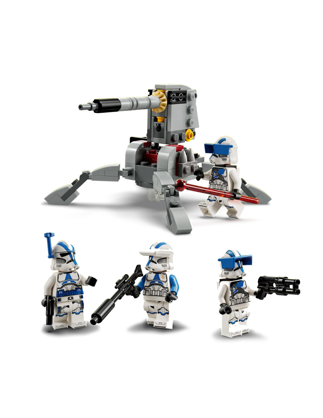 Bij de set zijn 4 LEGO Star Wars minifiguren inbegrepen die nieuw zijn voor 2023: een 501st Officer, 501st Clone Specialist en 2 501st Heavy Troopers. De Star Wars personages hebben elk een eigen wapen. De set bevat ook een bouwbaar AV-7 anti-vehicle kanon met een schieter met veermechanisme en een zitplaats voor een LEGO minifiguur. Een cool cadeau waarmee kinderen actiescènes uit Star Wars: The Clone Wars kunnen naspelen en extra speelmogelijkheden kunnen toevoegen aan hun LEGO Star Wars sets.