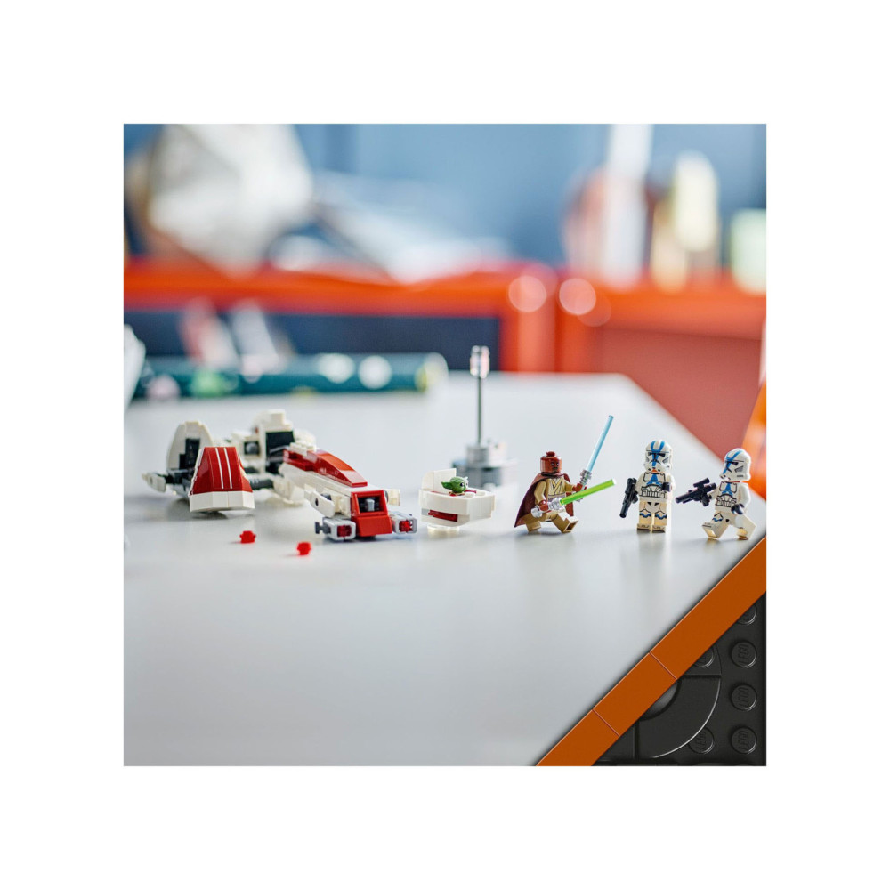- Gedetailleerd bouwspeelgoed van Star Wars BARC speederbike - het model beschikt over een cockpit voor een minifiguur, 2 noppenschieters en een afneembaar zijspan met ruimte voor Grogu's bouwbare zweefkinderwagen