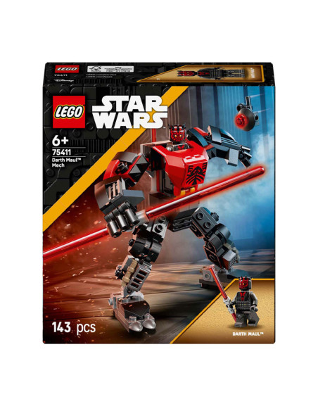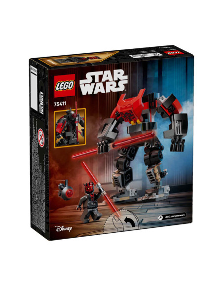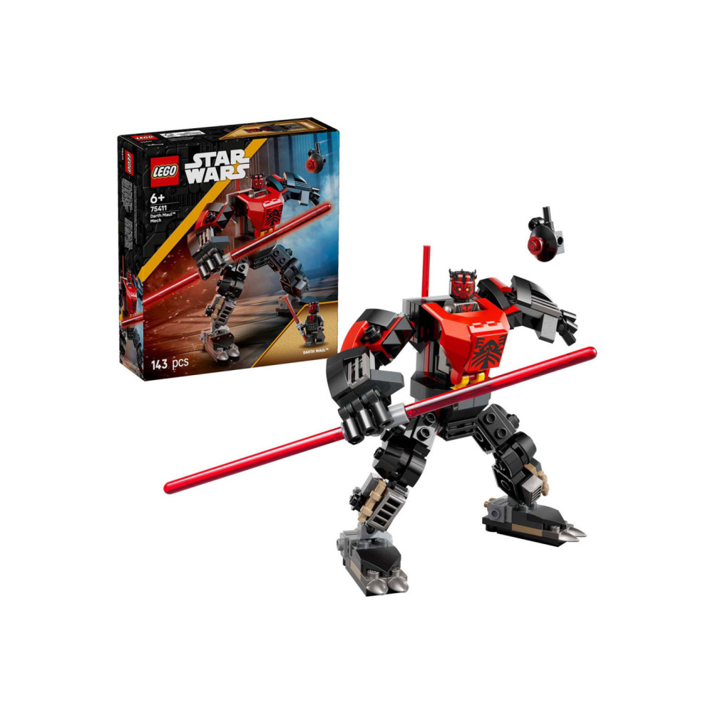 Laat kinderen de duistere kant van de Kracht ontdekken met het LEGO® Star Wars™ Darth Maul mecha (75411) bouwspeelgoed voor jongens, meisjes en fans van 6 jaar en ouder. Deze snel te bouwen mecha is verstelbaar en ziet er net zo uit als Darth Maul in Star Wars: The Clone Wars™, waarin hij streed om Mandalore over te nemen. De mecha heeft een cockpit voor de Darth Maul LEGO Star Wars minifiguur, een clip voor zijn dubbelzijdige rode lichtzwaard en grijphanden om het grote lichtzwaard mee vast te houden. Een LEGO Star Wars Probe Droid kan aan de achterkant van de mecha worden bevestigd voor nog meer speelmogelijkheden.