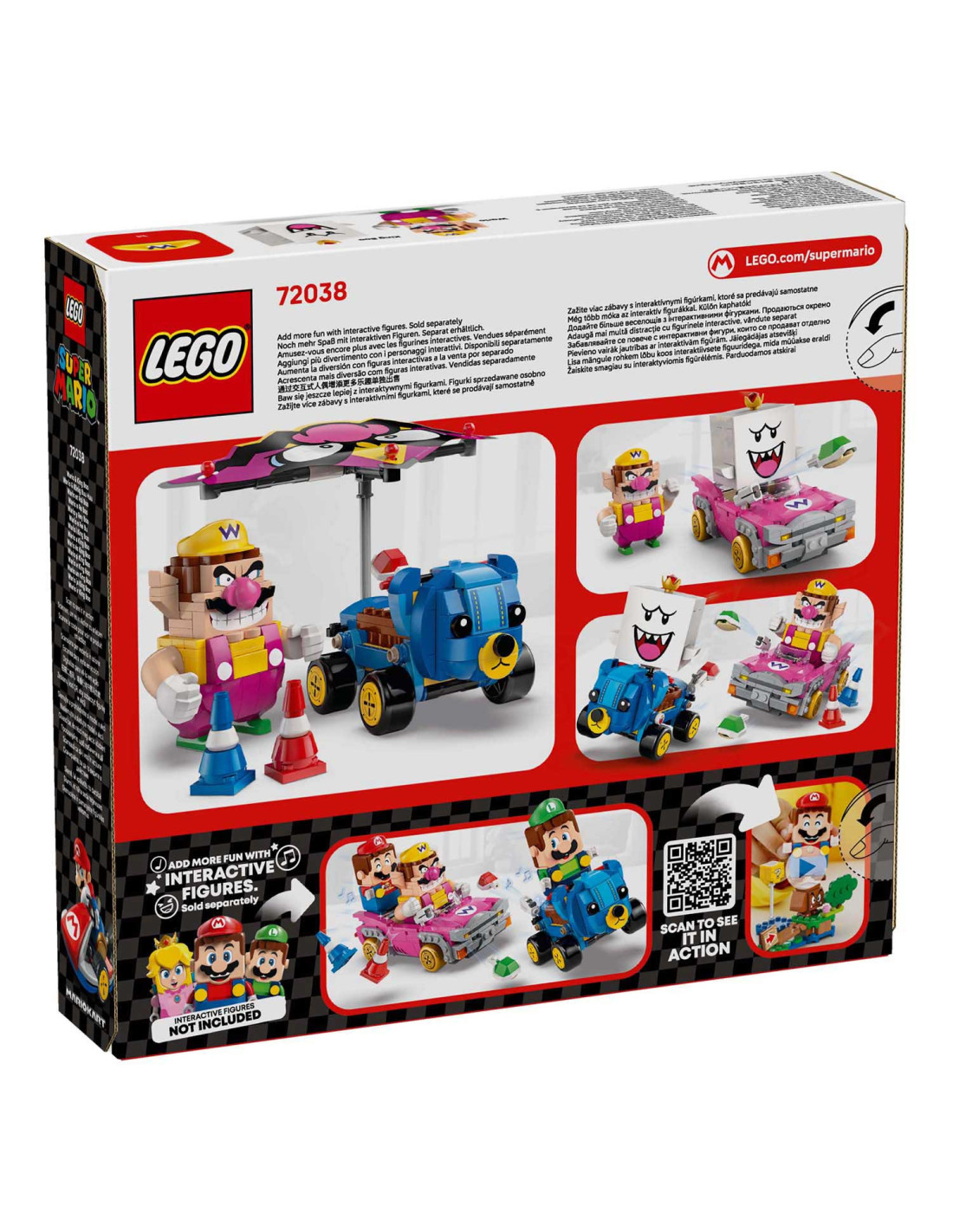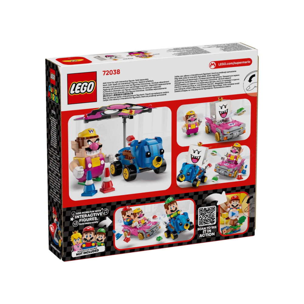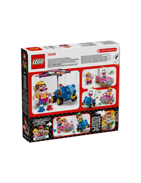 Plaats een LEGO® Mario™, LEGO® Luigi™ of LEGO® Peach™ figuur (uit set 71439, 71440, 71441 of 72043 – apart verkrijgbaar) in een van de karts voor interactief speelplezier en activeer Mario Kart geluiden en visuele effecten voor toeteren, driften en zweven.