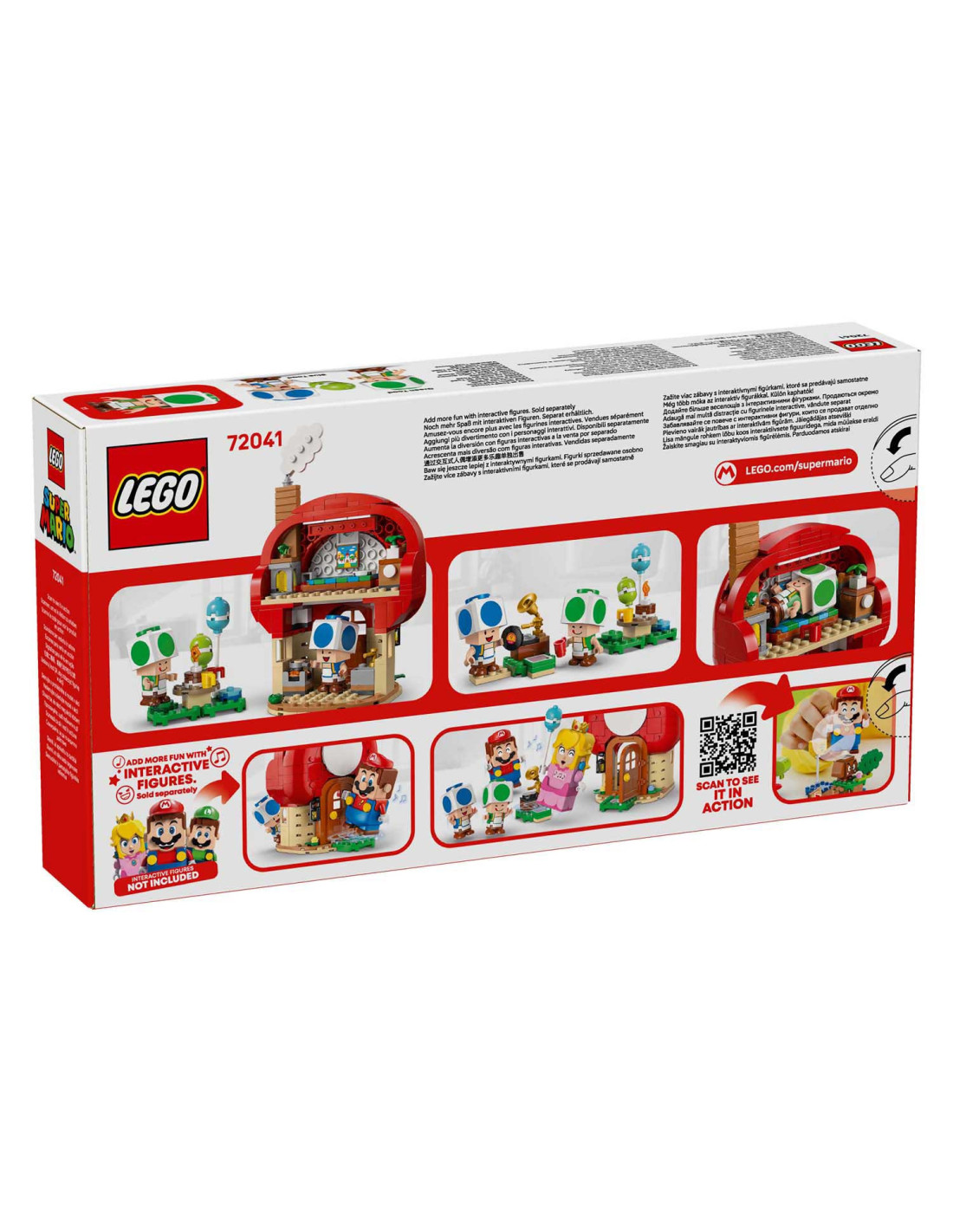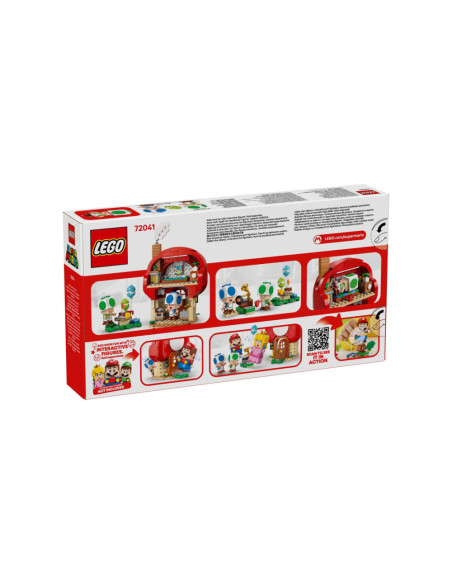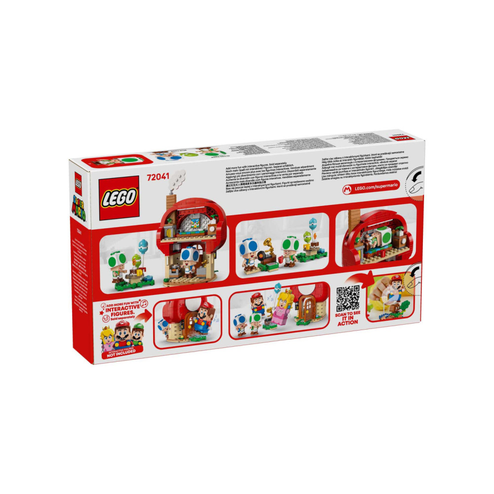 Vier feest in het huisje van Toad met deze leuke LEGO® Super Mario™ speelset voor kinderen (72041). De set is een ideaal cadeautje voor kinderen en fans vanaf 7 jaar en bevat een gedetailleerd Toad-huisje met een keuken en slaapkamer (met een schilderij van Peach' kasteel aan de muur) en uitneembare meubels om er gemakkelijk mee te kunnen spelen. Buiten staat een picknicktafel met plek voor de blauwe en groene Toad, plus een bouwbare grammofoon en feestaccessoires.