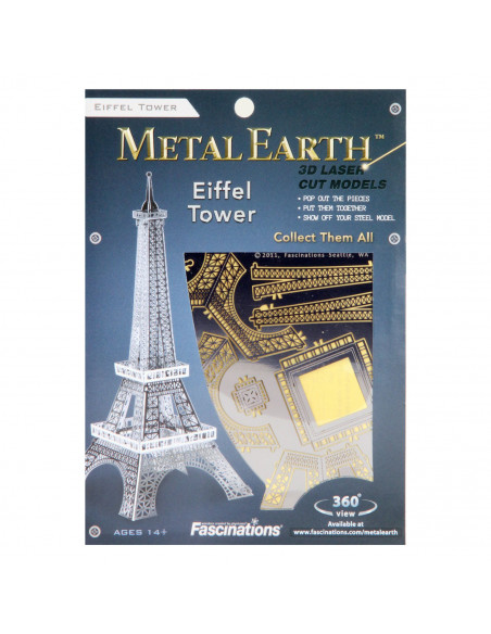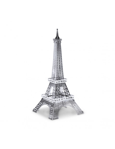 Dit model van de Eiffel Toren bestaat uit één metalen vel met onderdeeltjes en een gedetailleerde bouwtekening.