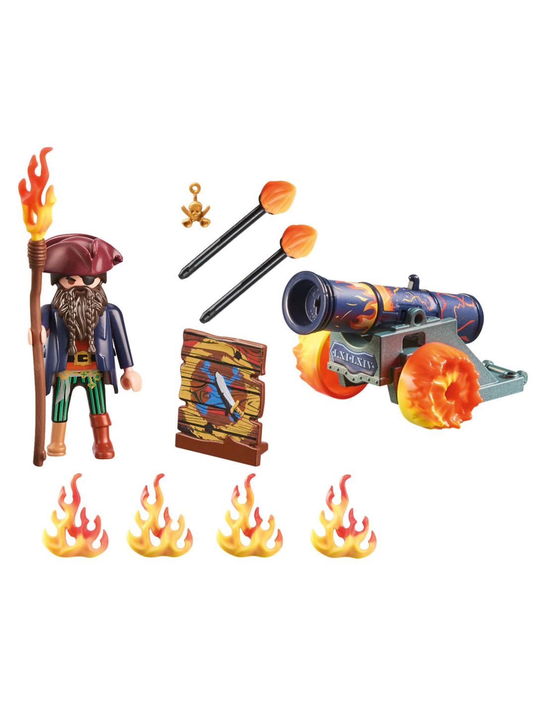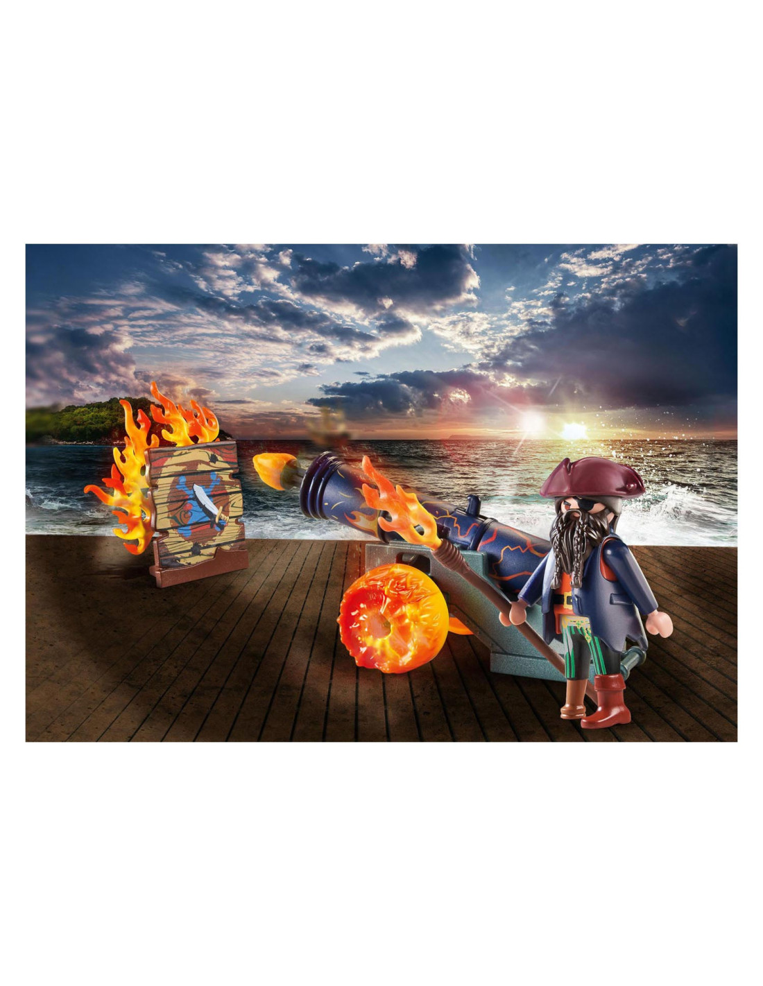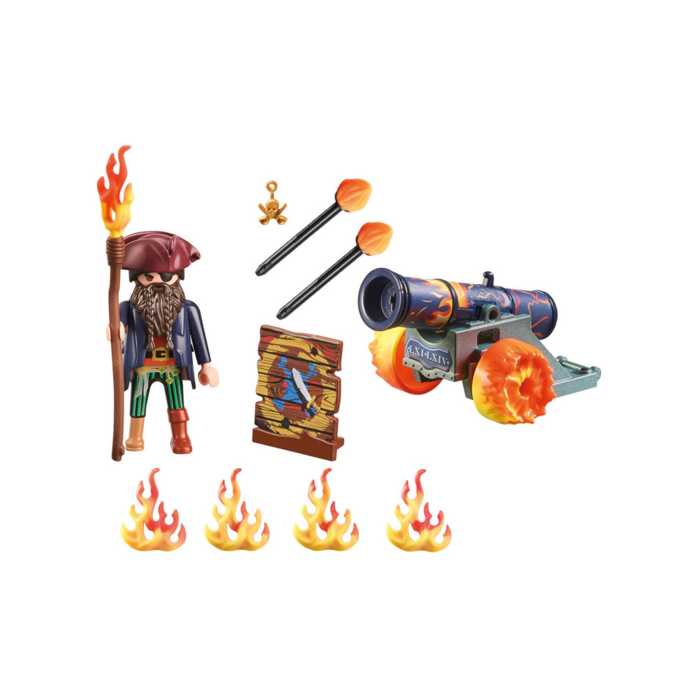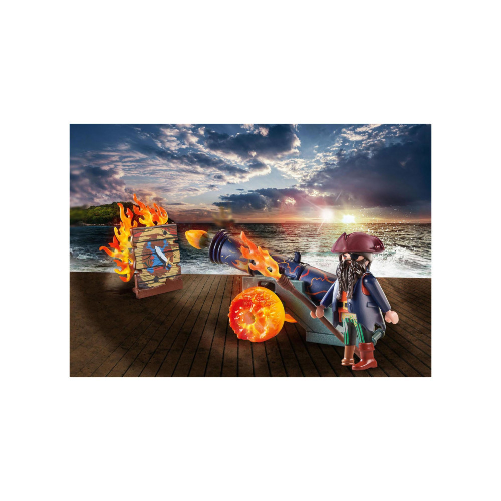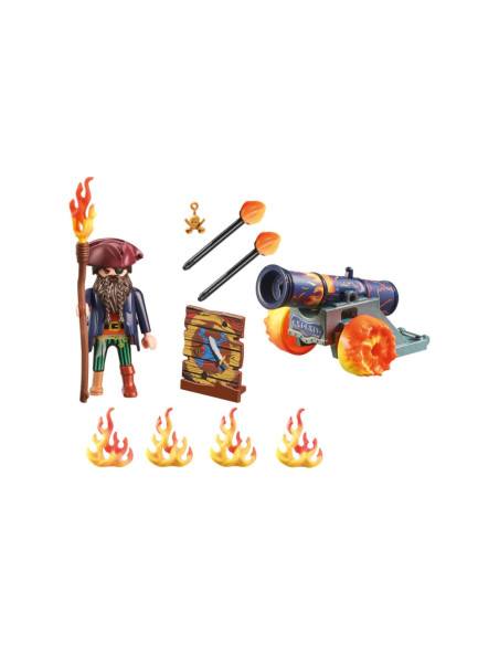 De PLAYMOBIL-cadeauset piraat met kanon is het ideale cadeau voor het volgende piratenfeest. Avontuurlijke kinderen vanaf 4 jaar zullen dol zijn op deze piratenspeelset. Met het werkende kanon verdedigt de piraat zich tegen elke aanvaller. Als hij van positie wil veranderen, pakt hij het handgreep en trekt het achter zich aan. De speelset bevat een PLAYMOBIL piratenfiguur, een kanon met twee vuurpijlen, een doelbord en andere accessoires. Dankzij de decoratieve doos en het naamplaatje om op te schrijven, besparen PLAYMOBIL-cadeausets op inpakpapier en beschermen ze zo het milieu. Een geweldige speelgoedset om mee naar huis te nemen of om weg te geven.