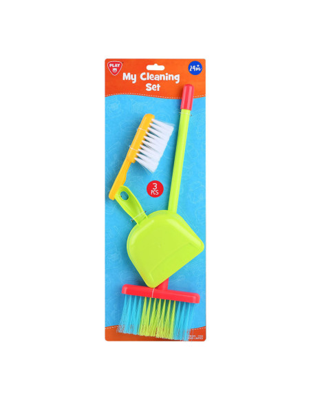 Leuk schoonmaaksetje voor kinderen, bestaande uit een kunststof stoffer en blik en een bezem. De 3-delige set is geschikt voor kinderen vanaf 24 maanden oud.