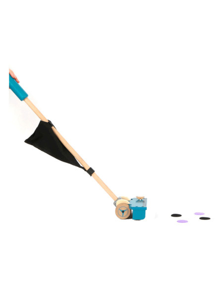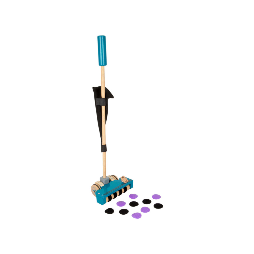 Deze gekleurde klittenbandstukken worden vervolgens veilig opgeborgen in de vacuümzak met klittenbandsluiting. De met rubber afgewerkte wielen rollen stil en voorkomen wegglijden. Na het spelen kan dit speelgoedhuishoudapparaat staand worden opgeborgen. De gekleurde stukken klittenband zijn goed zichtbaar. Met deze speelgoedstofzuiger zijn kinderen goed uitgerust om het huis eens goed schoon te maken!