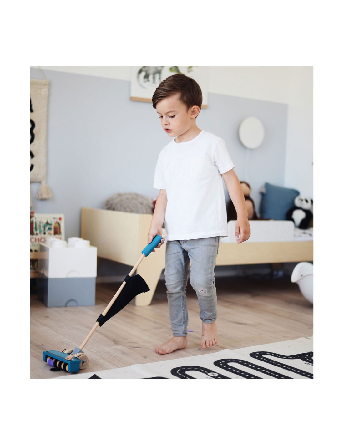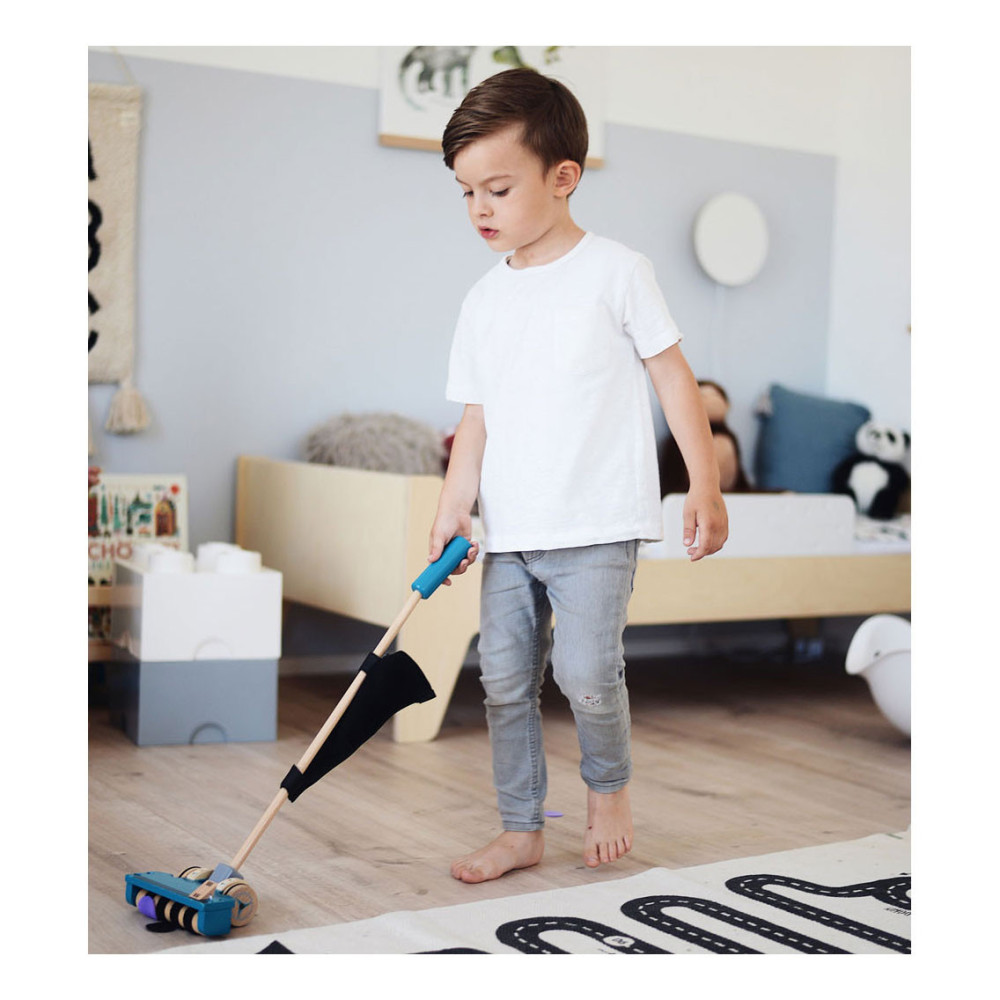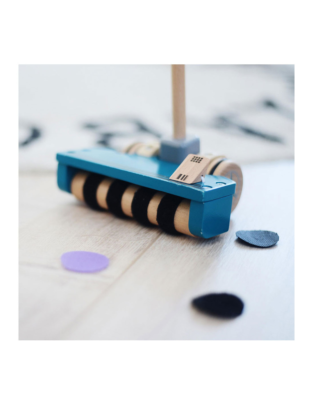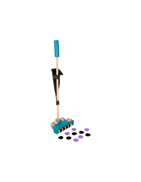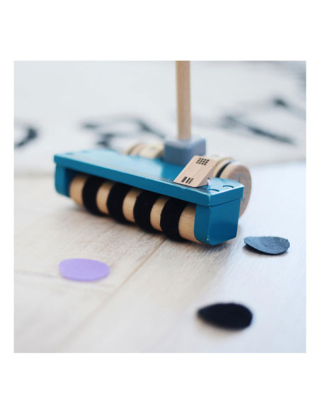 Voor jonge en drukke aspirant-huisvrouwen en -mannen! Deze multifunctionele houten speelgoedstofzuiger voor kinderen is duwspeelgoed en rollenspelspeelgoed in één. Het is aantrekkelijk voor alle leeftijden, inspireert de kinderfantasie tijdens actief rollenspel en motiveert kinderen om hun eerste stappen te zetten als loophulpmiddel. Voor een realistische speelervaring zijn er de fleecestrepen die het vuil in de vorm van klittenband kunnen "opzuigen".