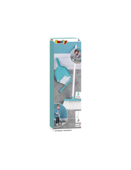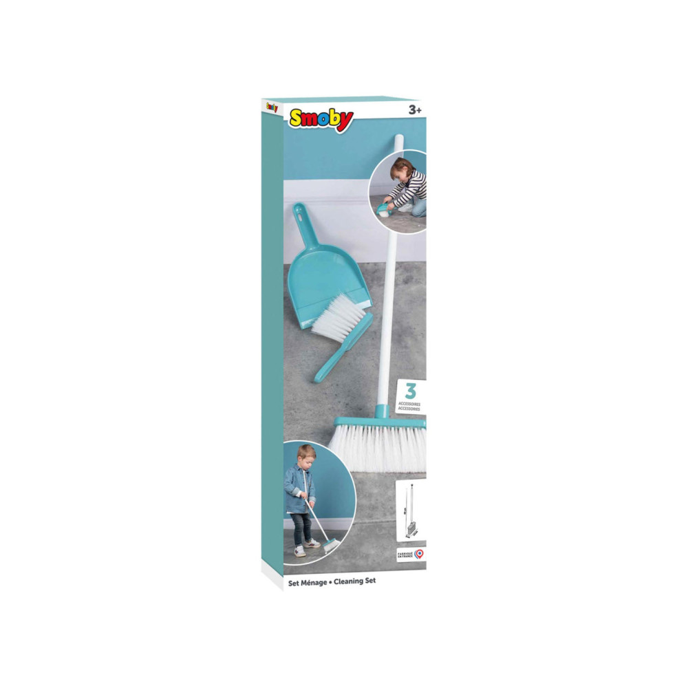 3-delige speelgoed schoonmaakset van Smoby, met een bezem, stoffer en blik. Gemaakt van kunststof en geschikt voor kinderen vanaf 3 jaar oud.